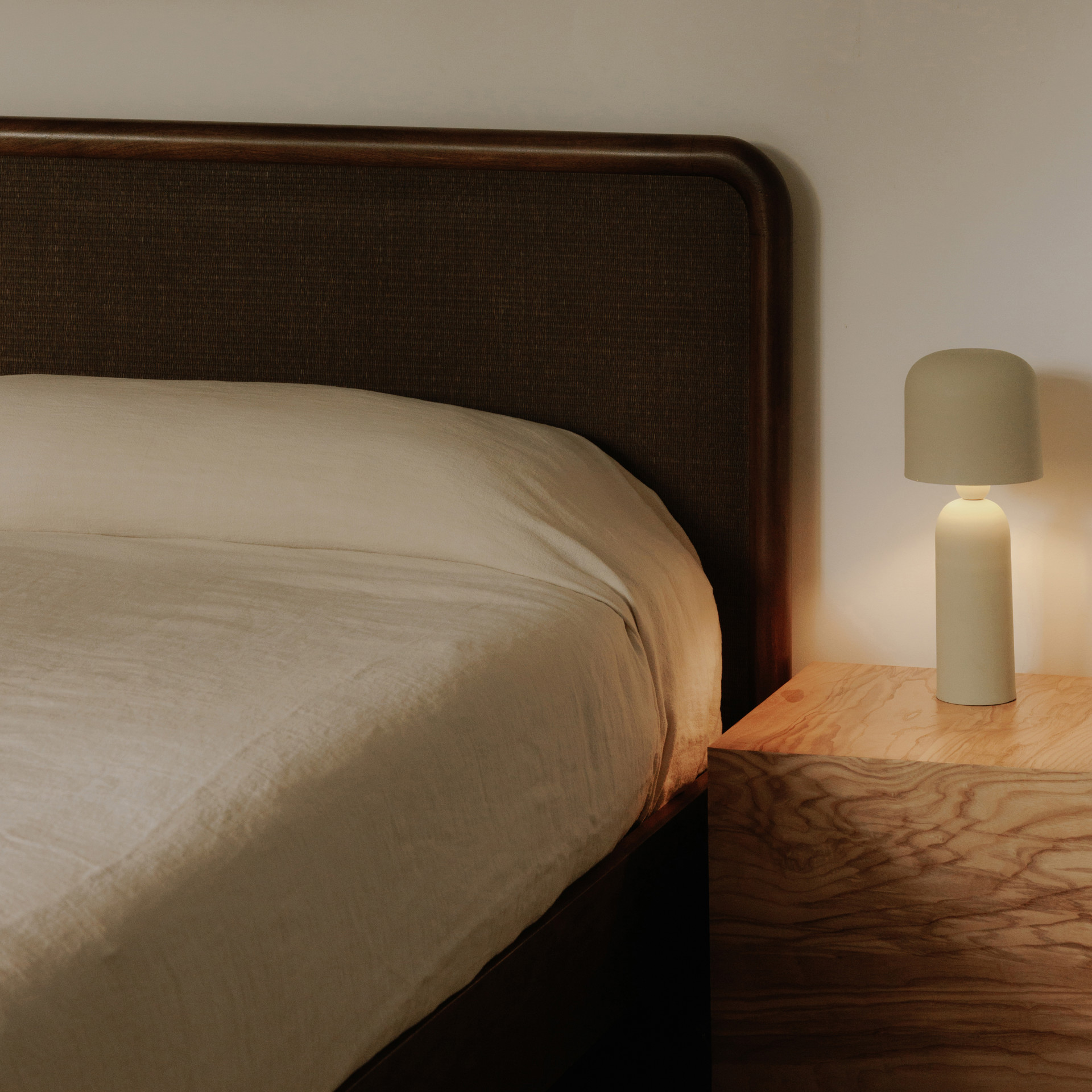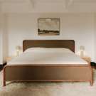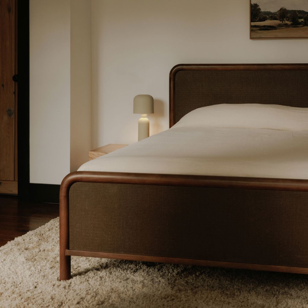 An inventive translation of piping detailing on traditional upholstery, the tonal woven soft rush headboard and footboard add texture while complementing the solid mango wood construction of the Rye collection.