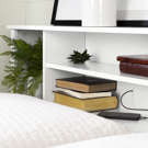 This modern library headboard features practical open storage spaces separated by sturdy, reliable fixed shelves. A side storage section will also come in handy. A grommet hole in the back panel allows wires to pass through without tangling. The bookcase is easy to clean with a soft, dry cloth.