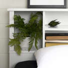 This trendy headboard will help create a soothing atmosphere after a long day. With its many easy-to-access open storage compartments, this bookcase headboard is perfect for meeting storage needs close to the bed. Keep your reading material and personal items organized and within easy reach when you need them. Storage space accessible from the side of the headboard can be placed to the right or left of the bed, as you prefer.