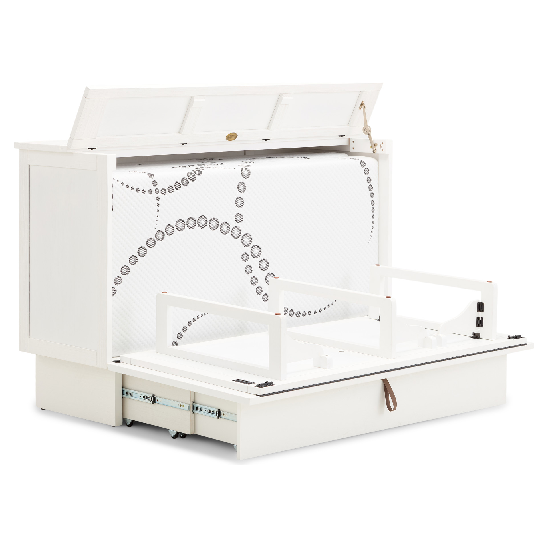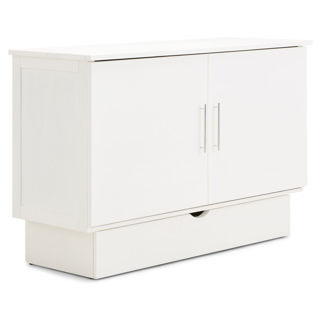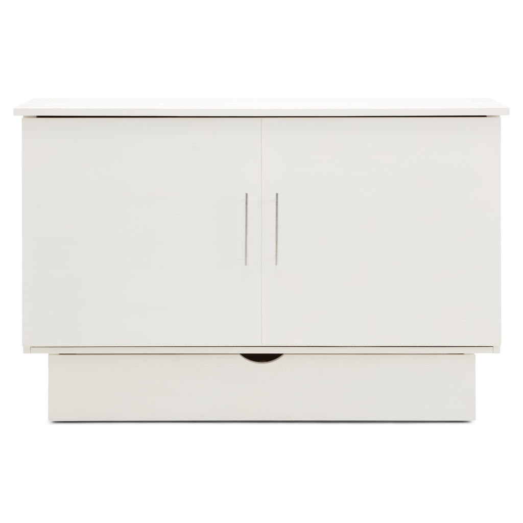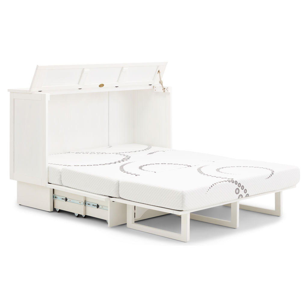 • Cabinet with queen-size mattress and storage drawer included