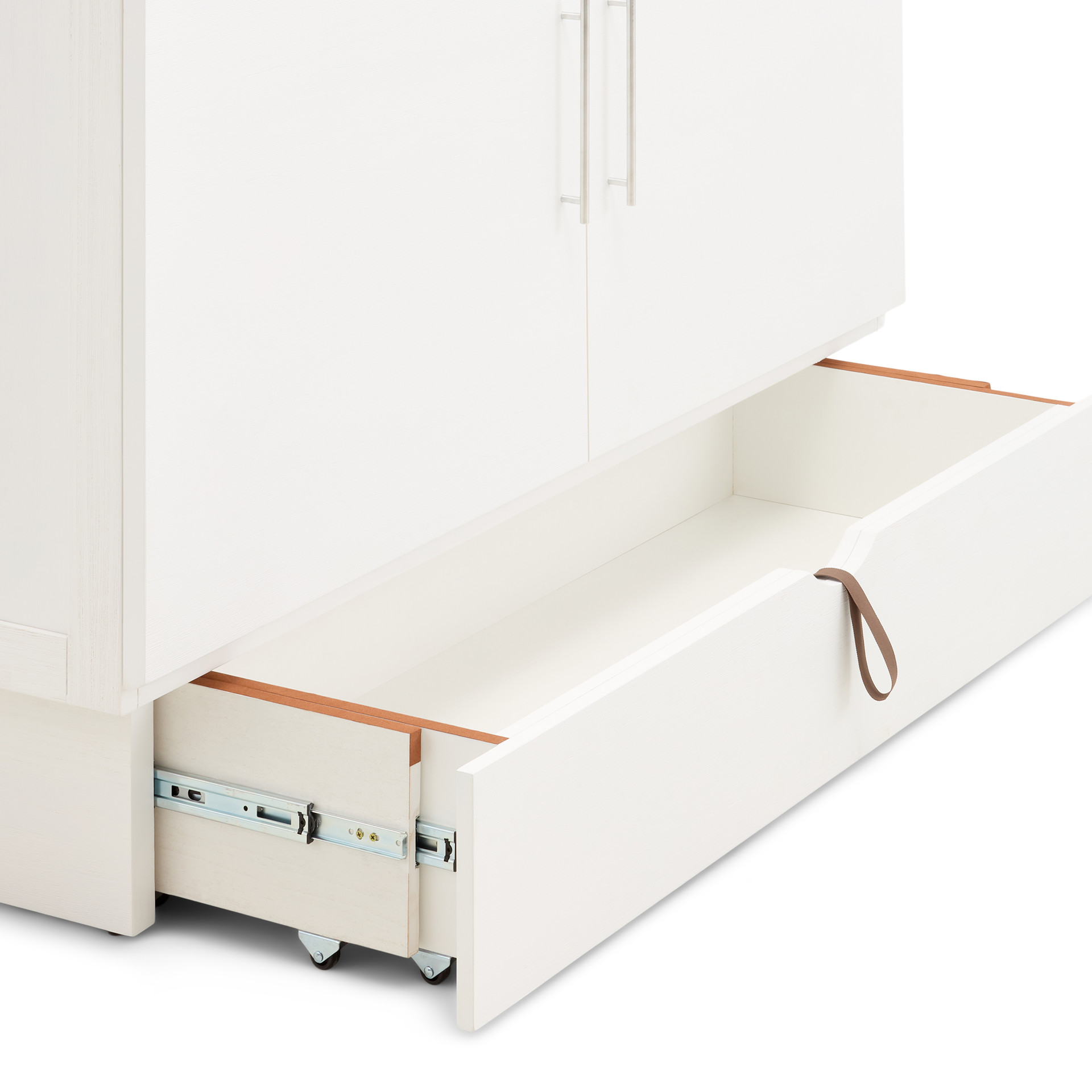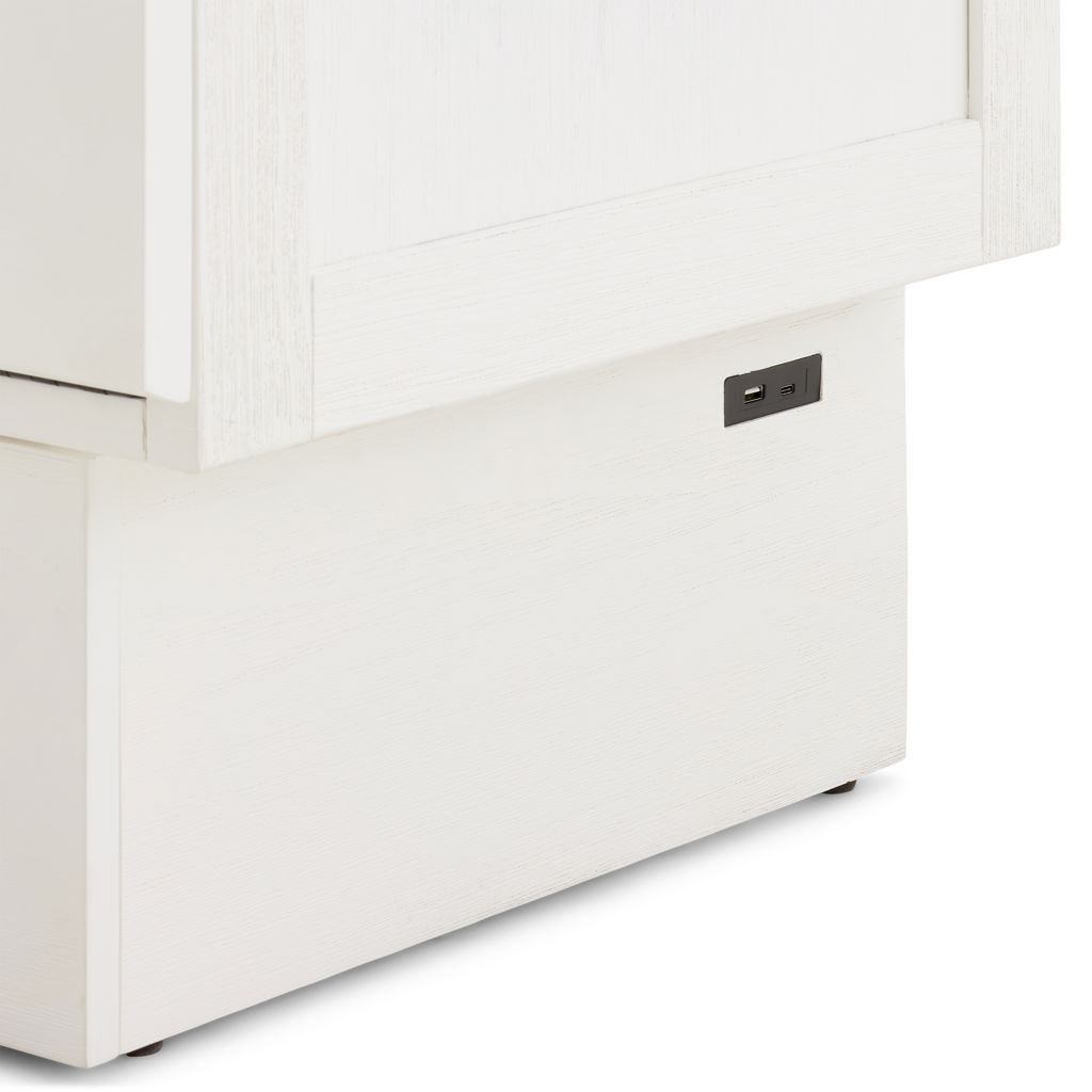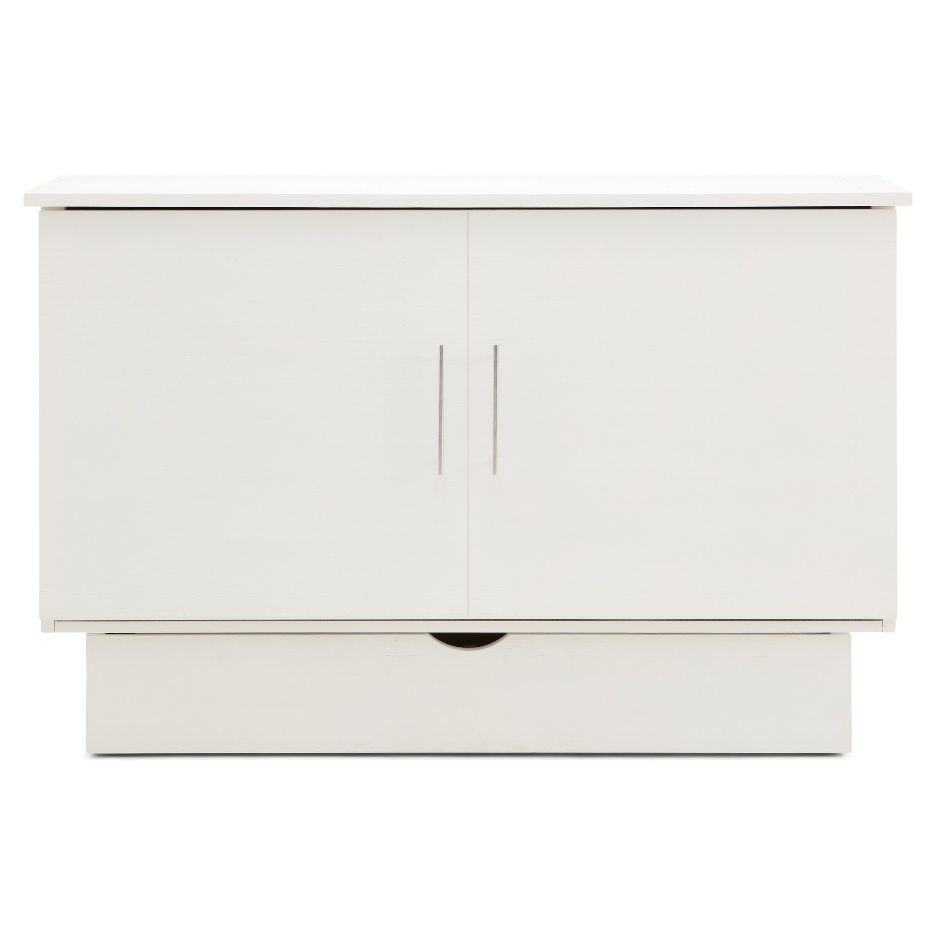 • Cabinet with queen-size mattress and storage drawer included