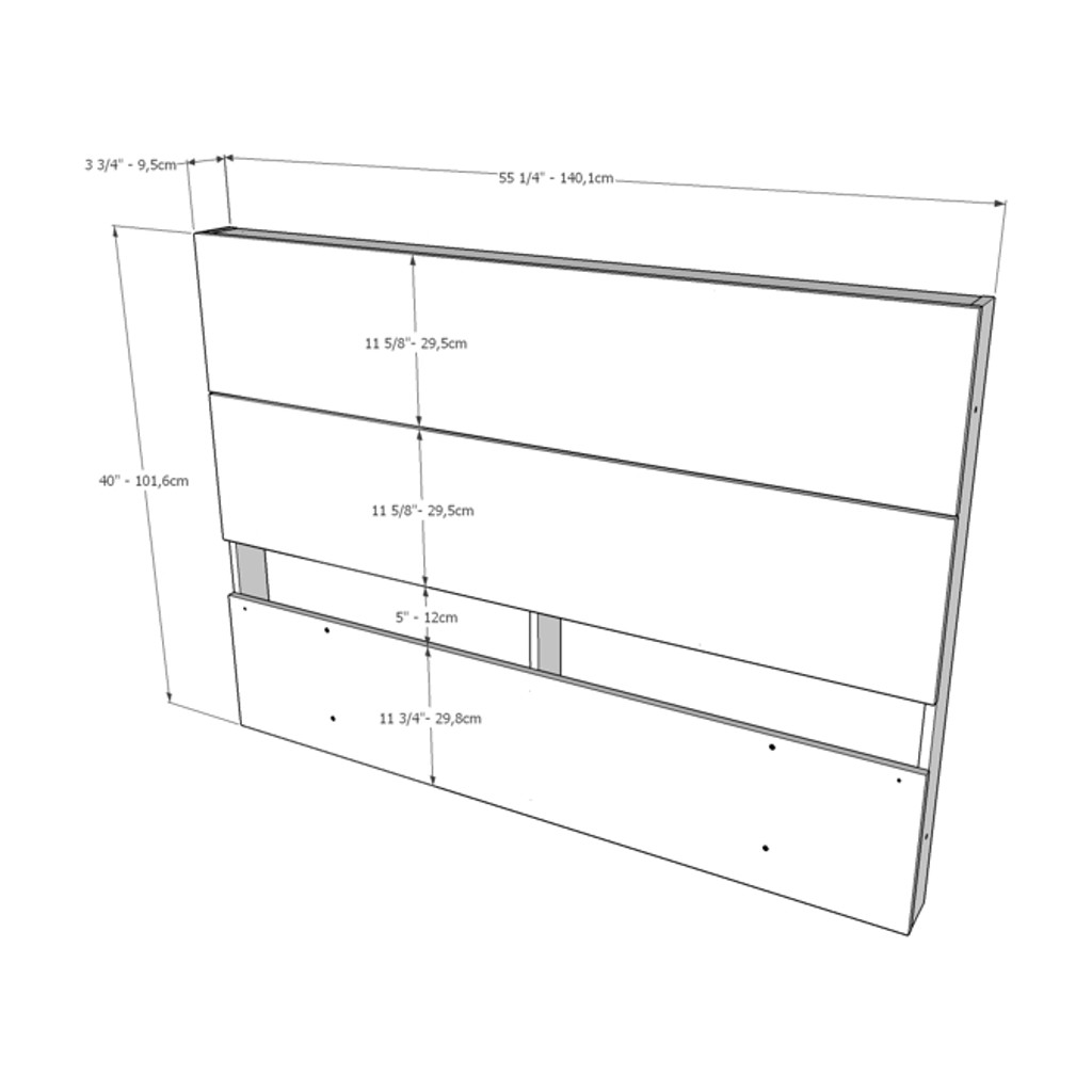 • Headboard (Double/Full) : 55 1/4 X 3 3/4 X 40