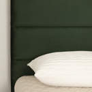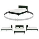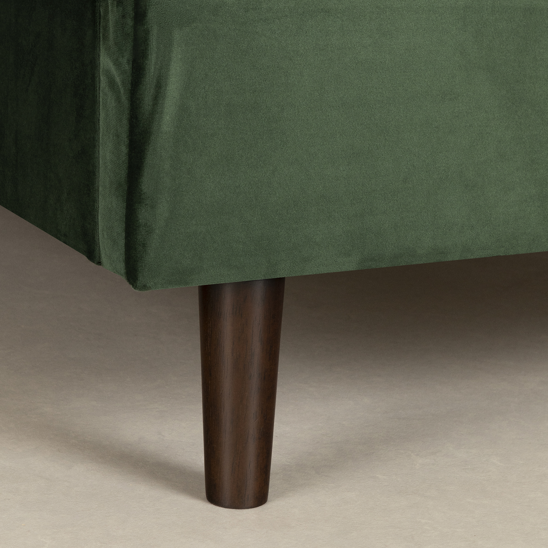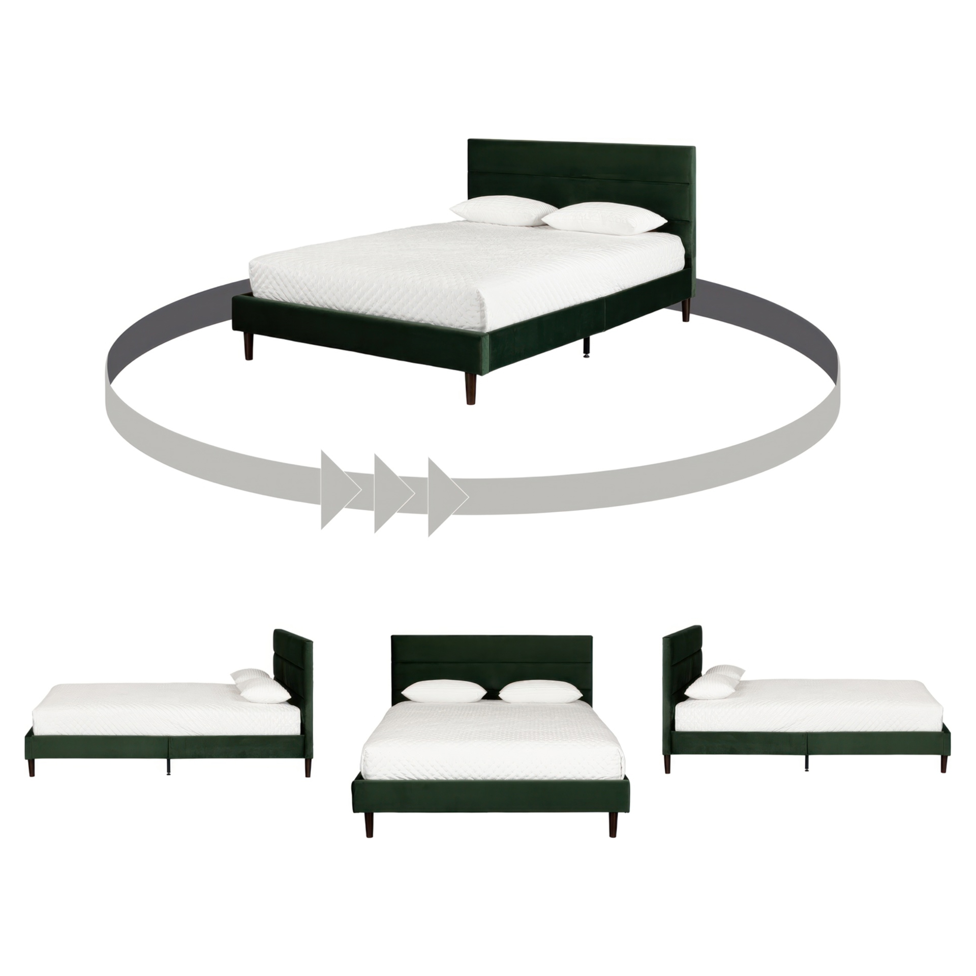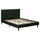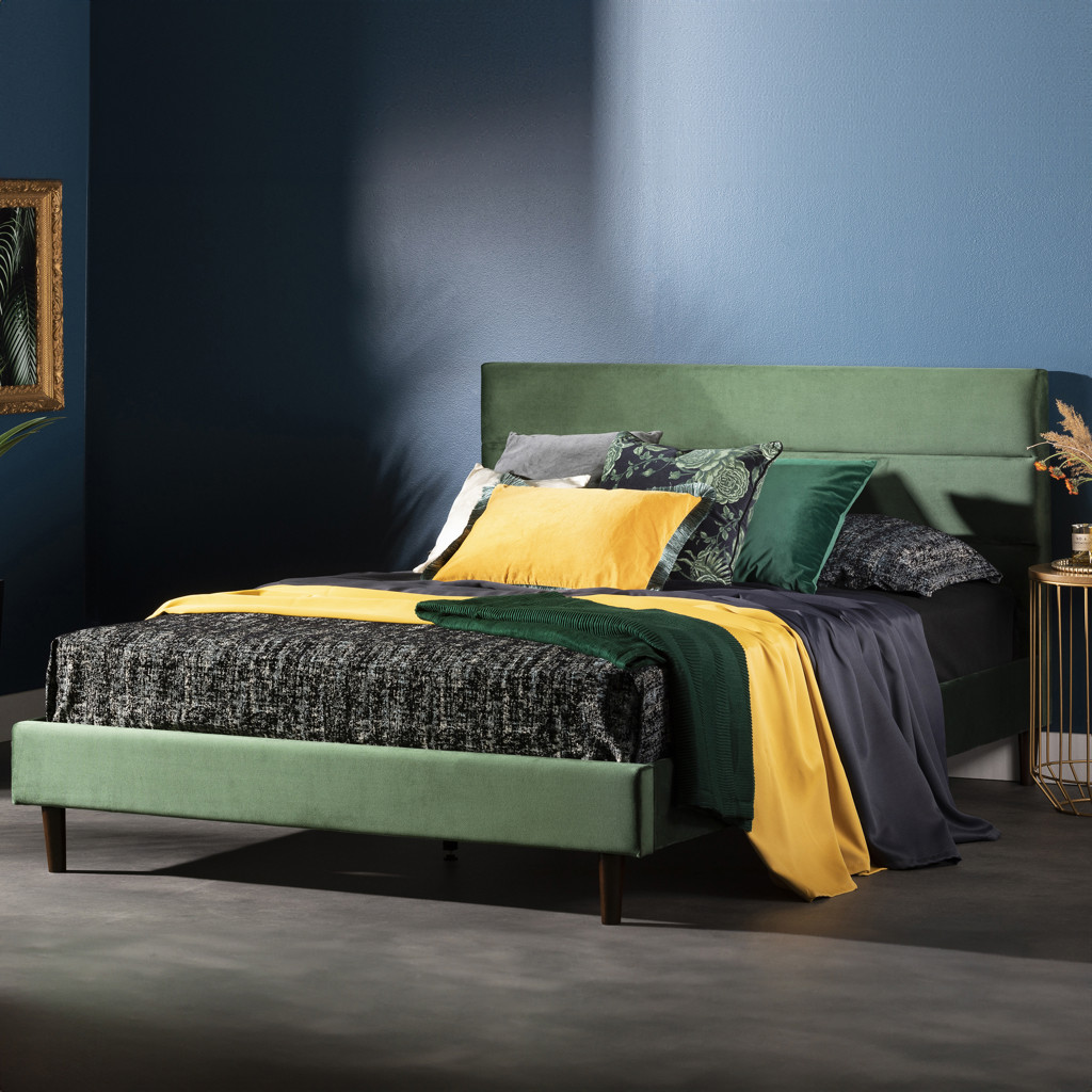A TRENDY BED FRAME: The Mid-century look of this upholstered bed frame will add an original touch to your bedroom decor. The three decorative sections in the headboard highlight the beautiful velvet cover.