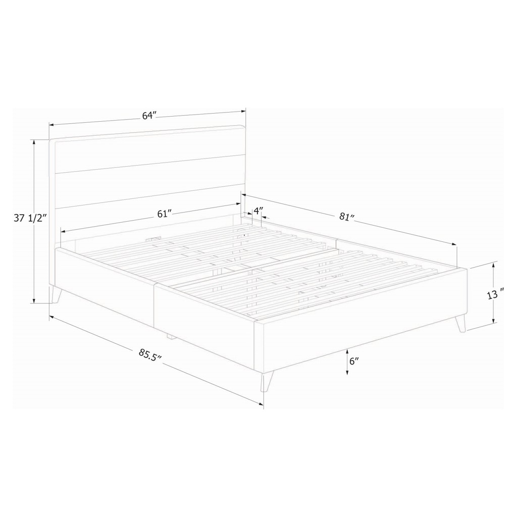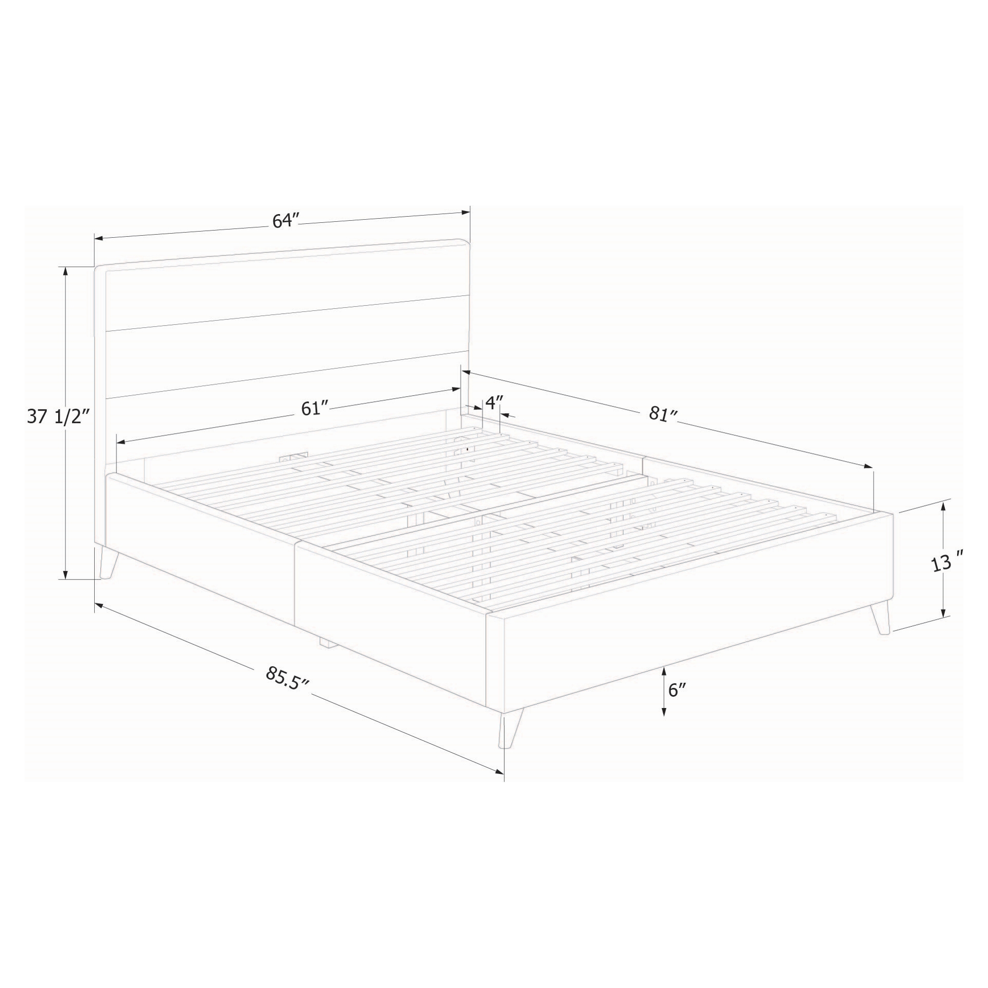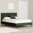 This upholstered, velvet-covered bed frame has an oh-so-fashionable look. The three sections of the headboard give it a unique style and highlight the flawless finish. This raised platform will sit above your bedroom floor, giving it a more spacious feel. Choose bedding in neutral colors, along with some cozy throw pillows, to create the inviting bed you deserve!
