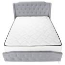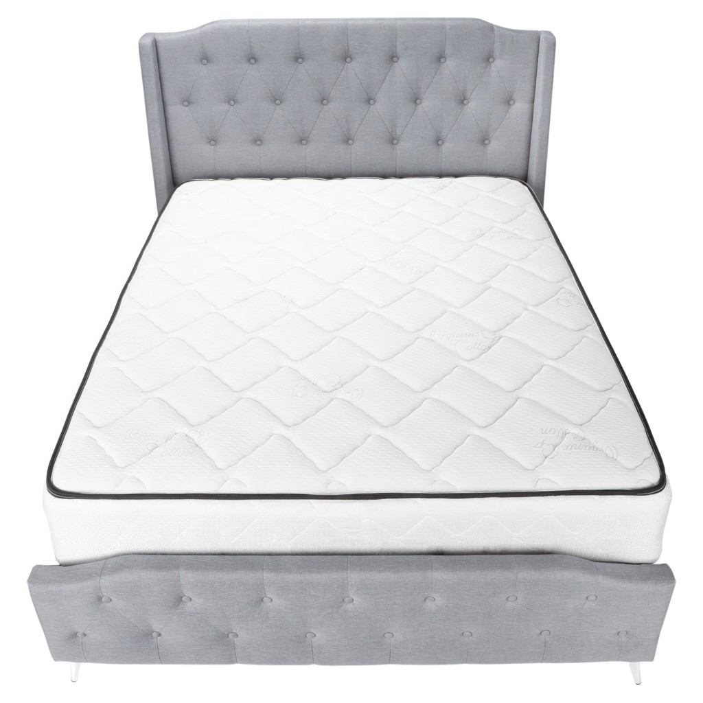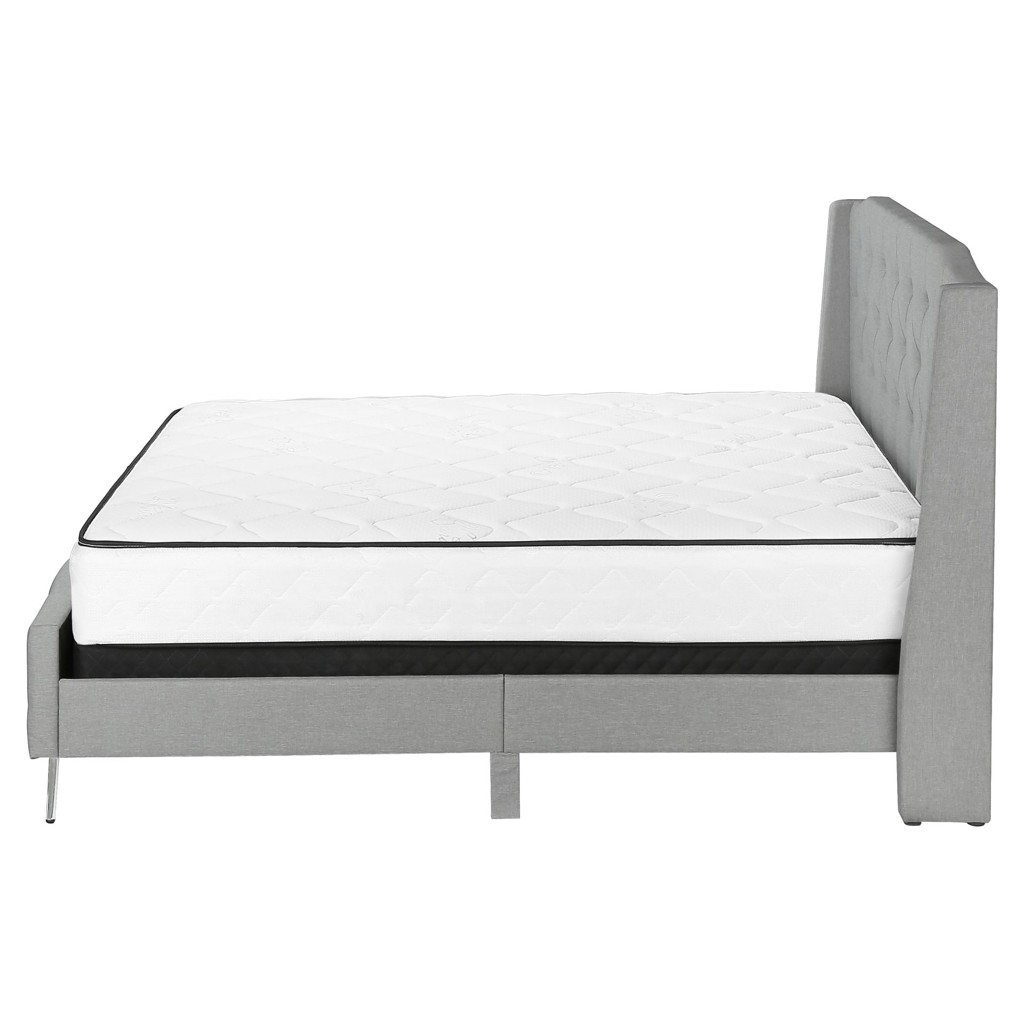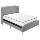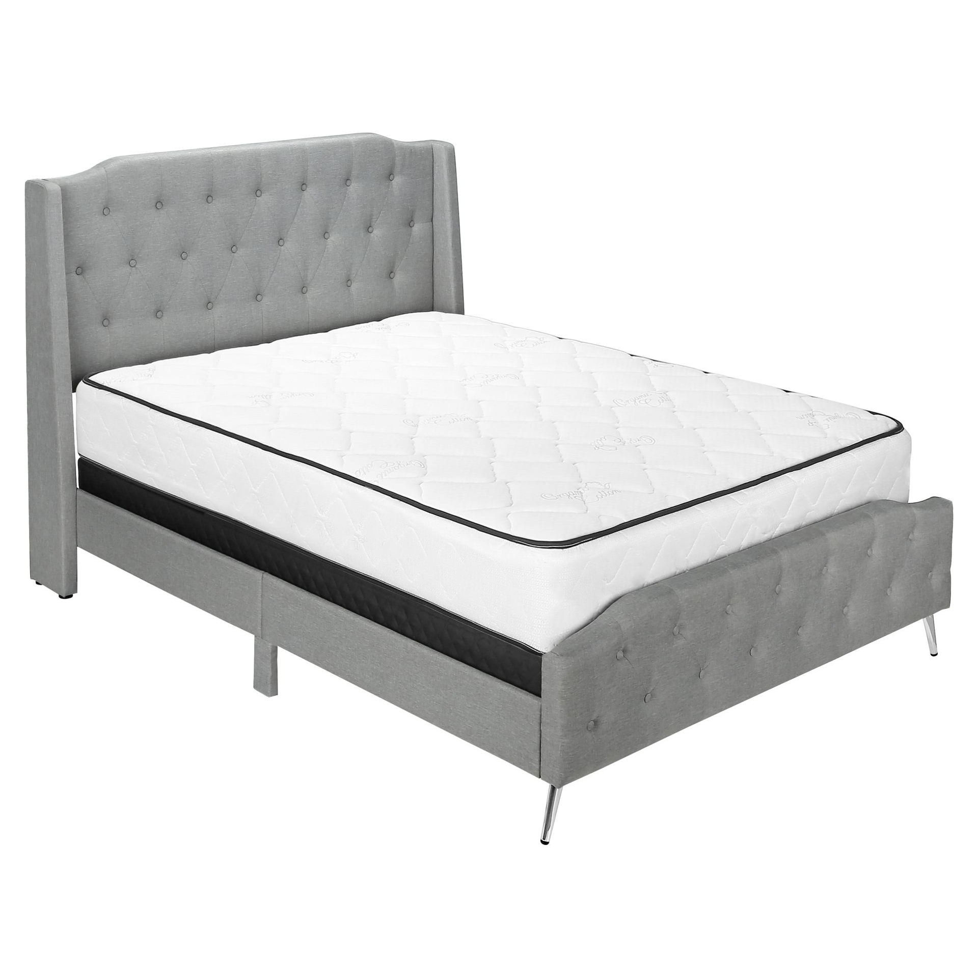 Bring a luxurious feel to your bedroom with the updated classic styling of this queen-size, upholstered bedframe with a wingback headboard. Covered in an elegant grey linen-look fabric over foam cushioning on all sides, this bed is embellished with button tufting on both the gently arched headboard and footboard for an opulent appeal.