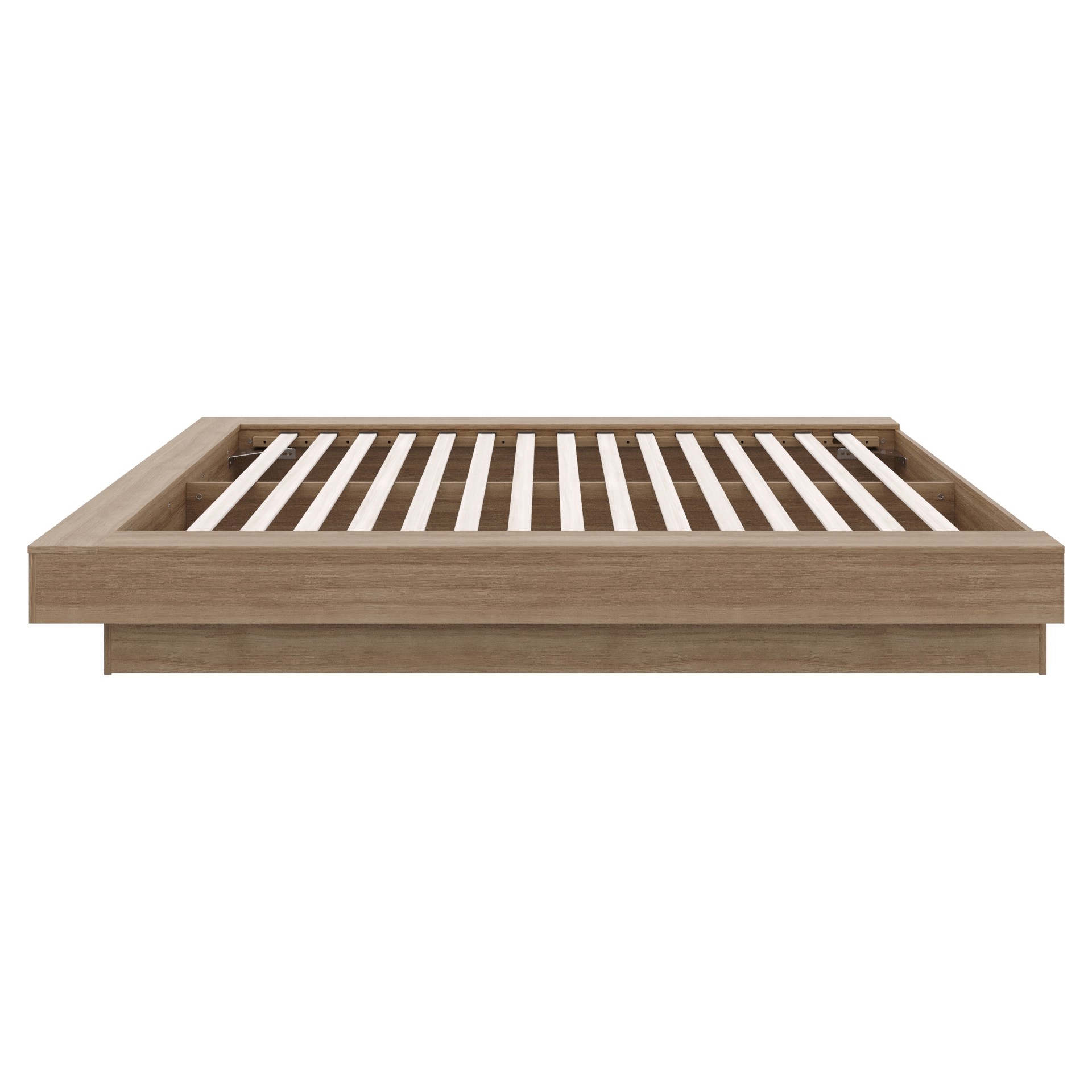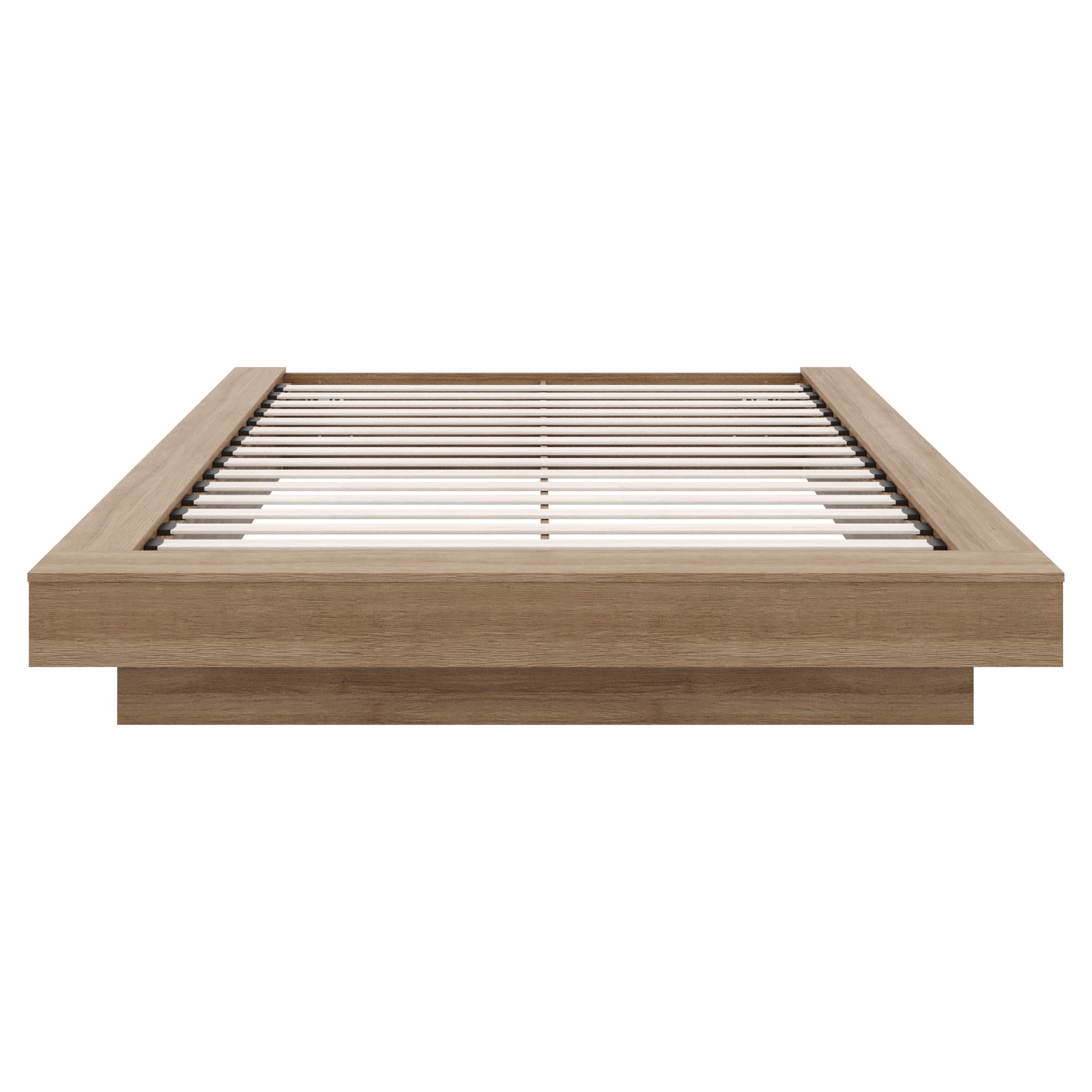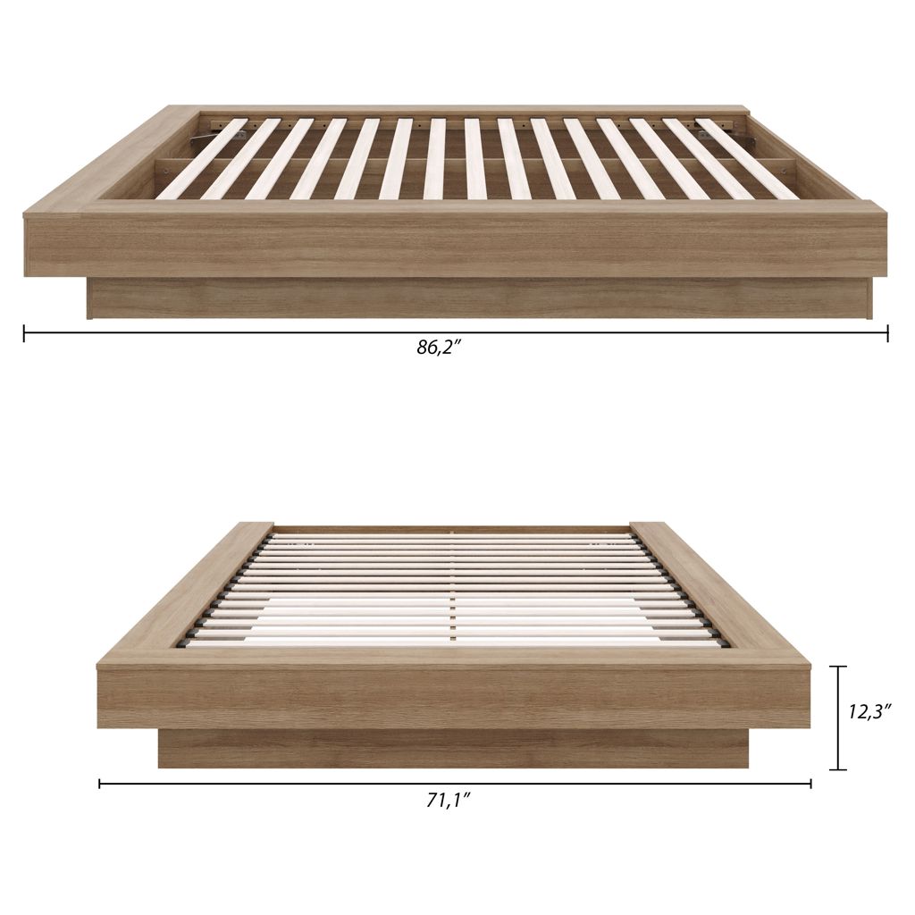 Enhance your bedroom with this sleek and elegant Natural Oak platform bed, expertly crafted from high-quality engineered wood. Its minimalist design brings a touch of modern and contemporary sophistication to your space.