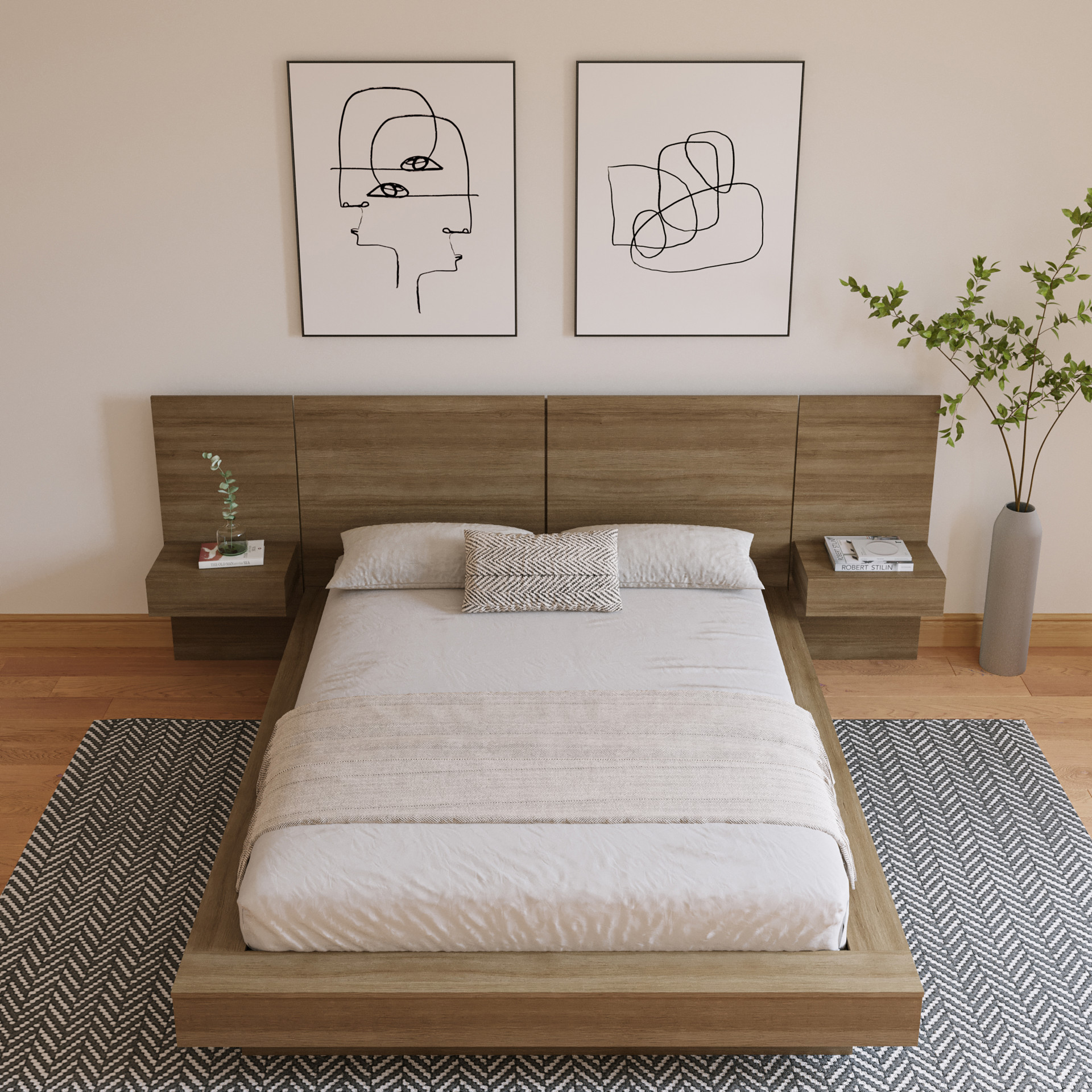 Napa Platform Bed with Headboard and Integrated Nightstands (Queen)