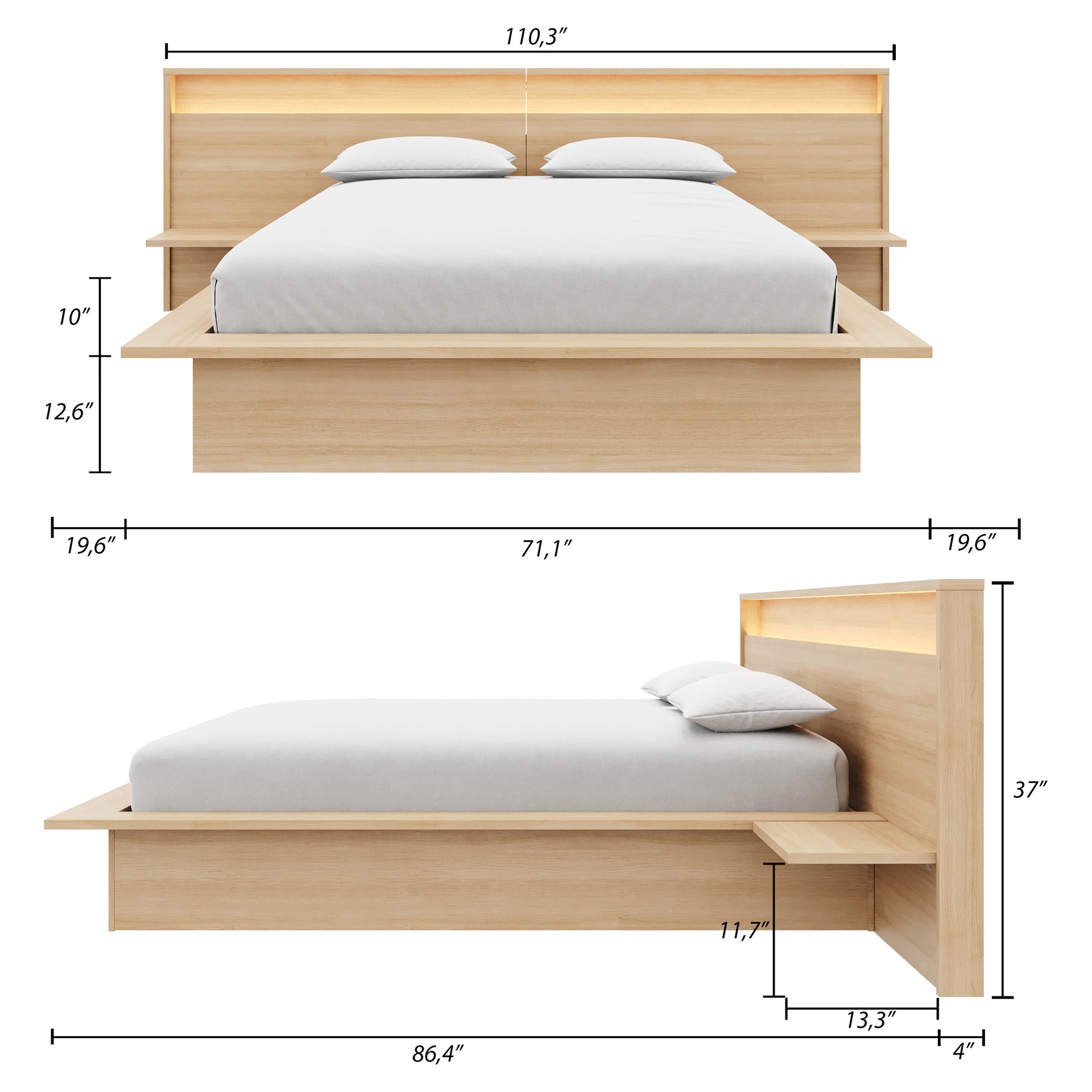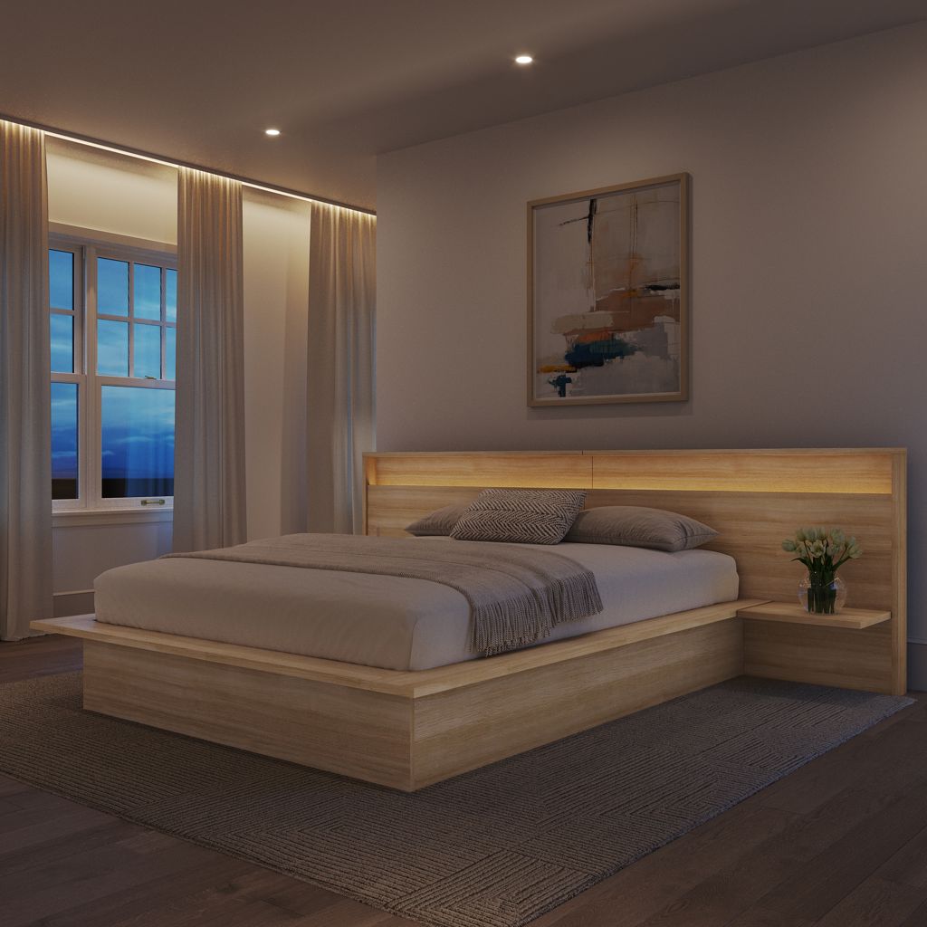 - 1x Headboard with integrated shelves and lighting (Queen)