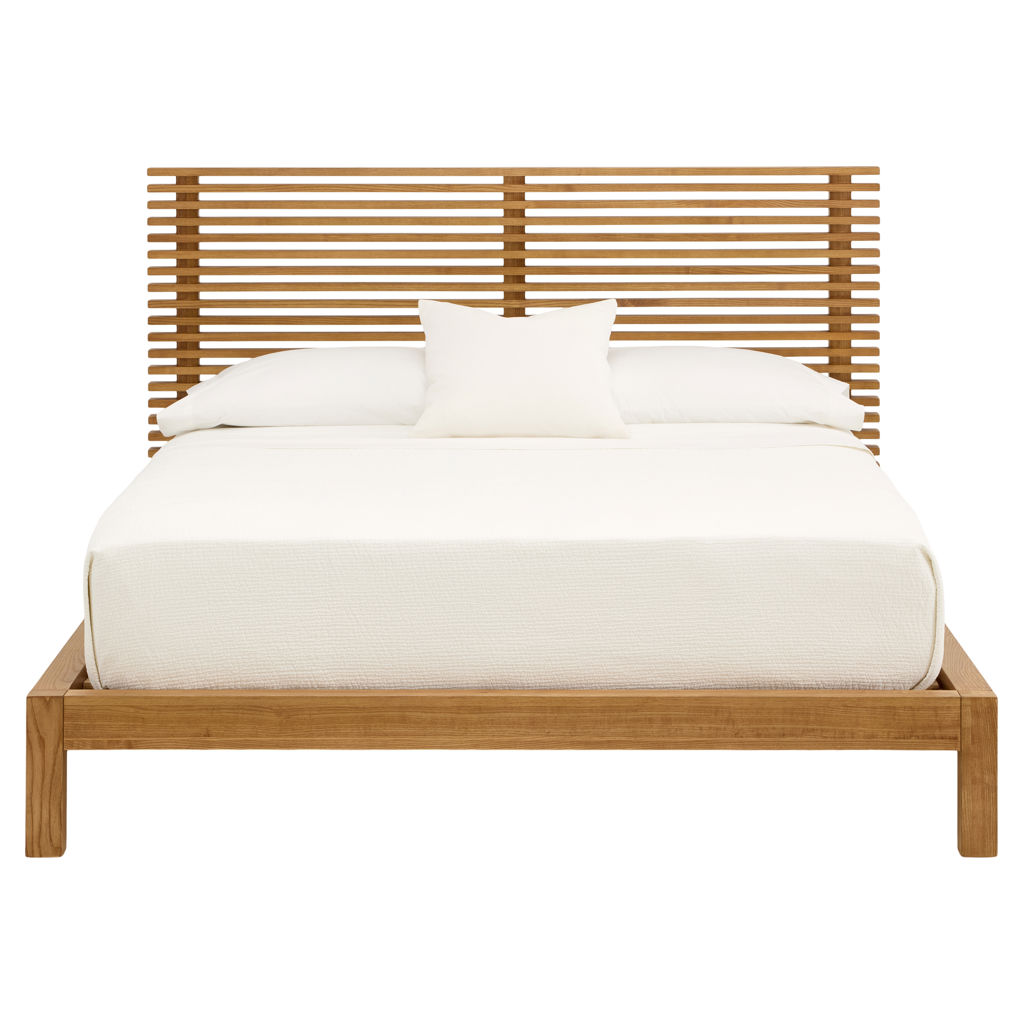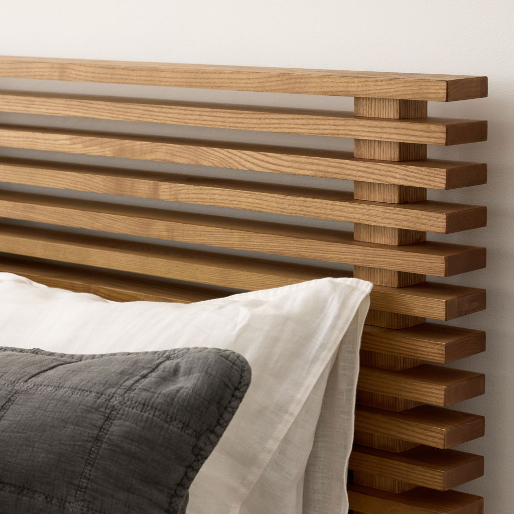 The Tanner collection is the perfect embodiment of the Japandi design aesthetic, a beautiful blend of Scandinavian minimalism and Japanese warmth. Featuring solid ash fronts and frames, this slatted bedroom collection exudes a calming and inviting atmosphere. Available in modern earthy brown Roux and natural-tone Flaxen finishes.