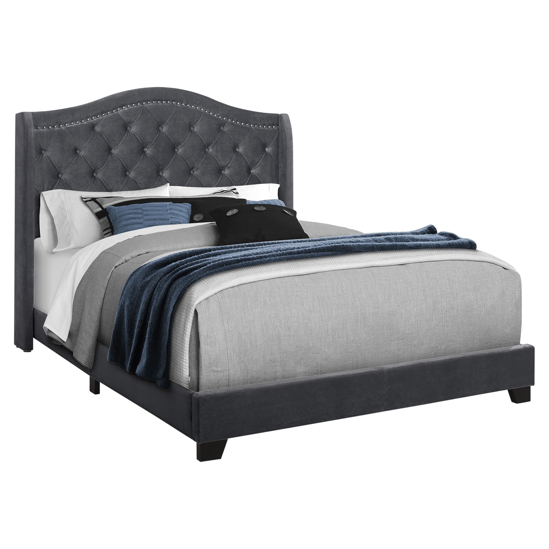 Collection 596 Velvet Upholstered Bed and Headboard (Queen) Monarch Specialties I 5968Q