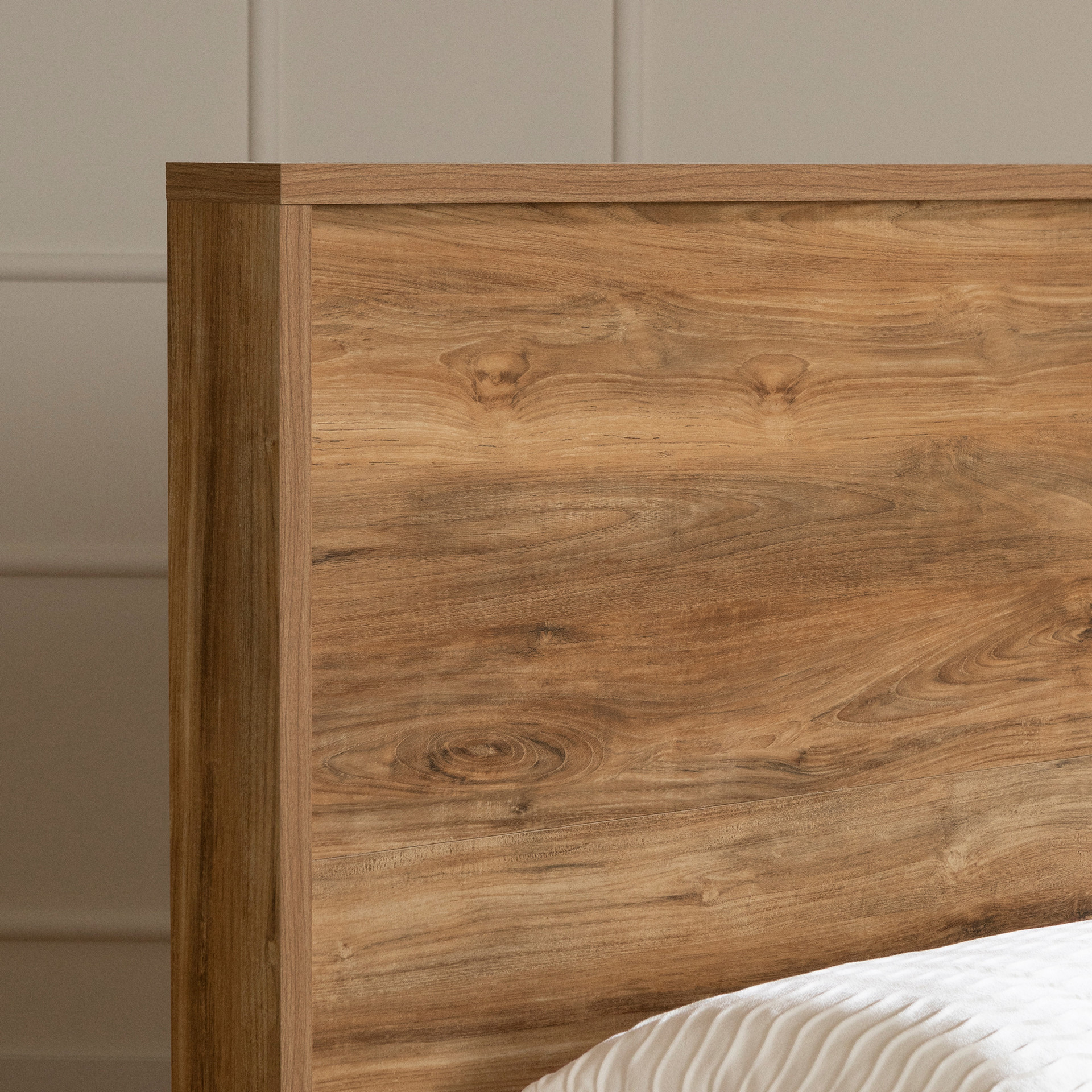 Transform your bedroom with this bed from the Oxford collection. It stands out with its simple and clean design, perfect for those looking to create a contemporary ambiance in their bedroom. The headboard adds a touch of natural elegance, harmonizing with the bed frame for a cohesive and complete look.
