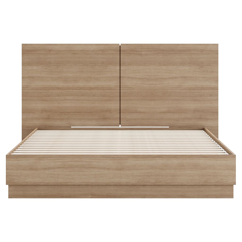 Immerse yourself in the essence of comfortable minimalism with our elegant platform bed, an ideal refreshment for any bedroom style. Inspired by Zen aesthetics, this bed boasts a smooth brown oak finish that gracefully envelops your mattress. The platform design offers a sleek, modern look, creating a feeling of openness and simplicity in your bedroom. Its clean lines and minimalist frame blend perfectly with a variety of decorating styles.