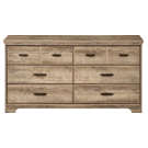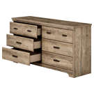 This traditionally styled dresser features six practical drawers with metal handles in an antique pewter finish. The top drawers are separated by a decorative groove that creates the illusion of double drawers. The whole is enhanced by a rich finish that creates an enveloping ambience in the room.