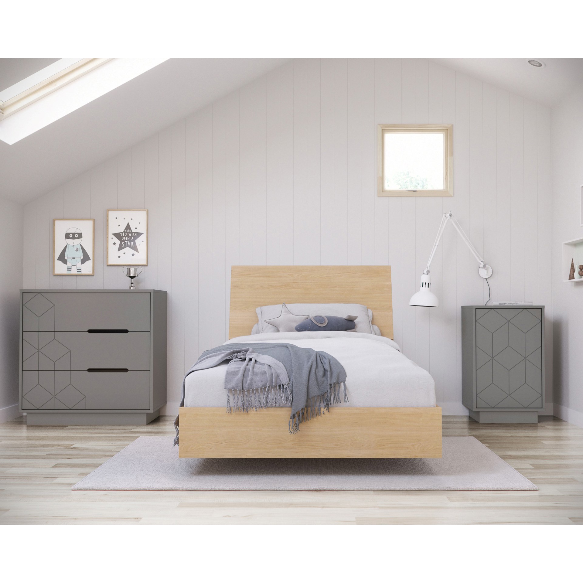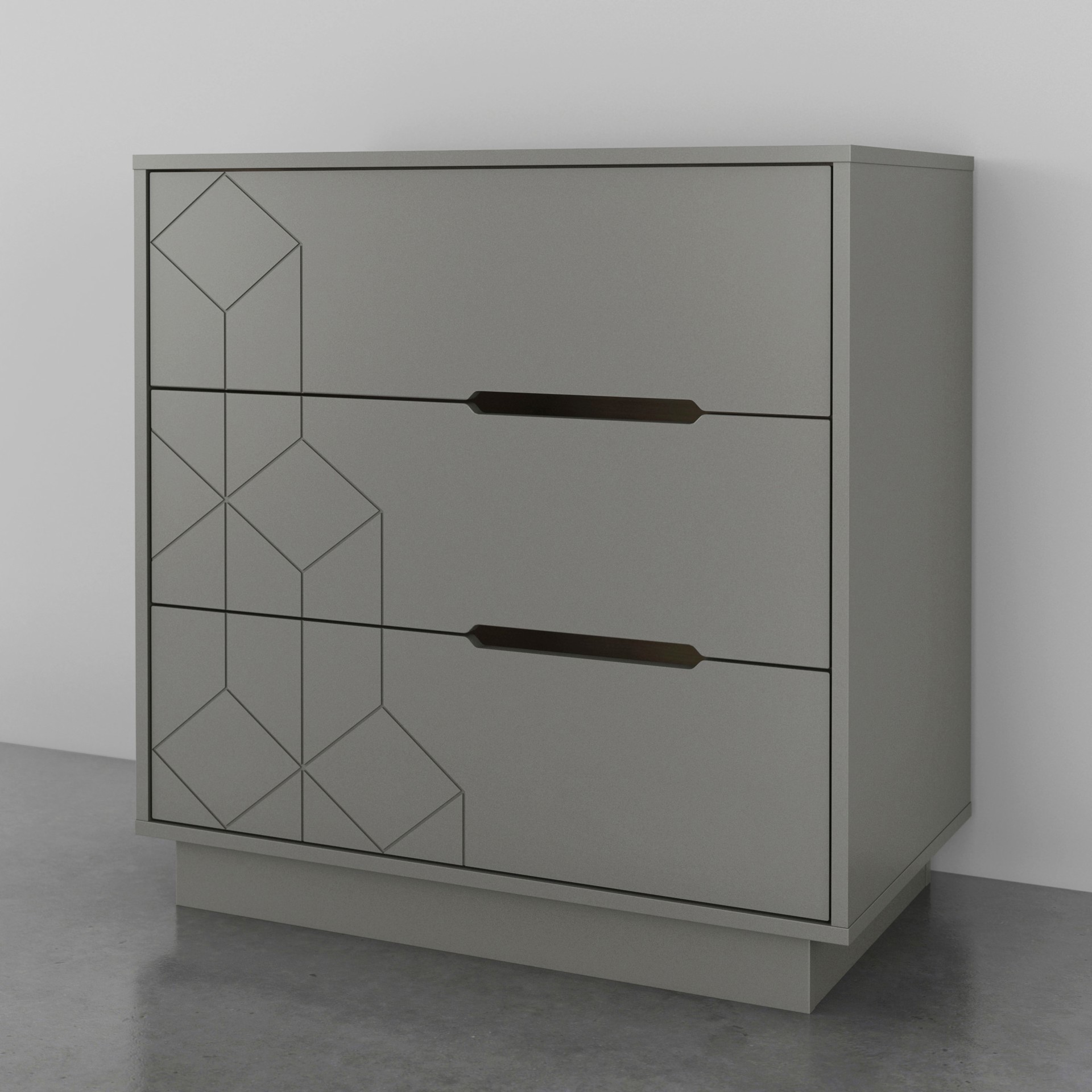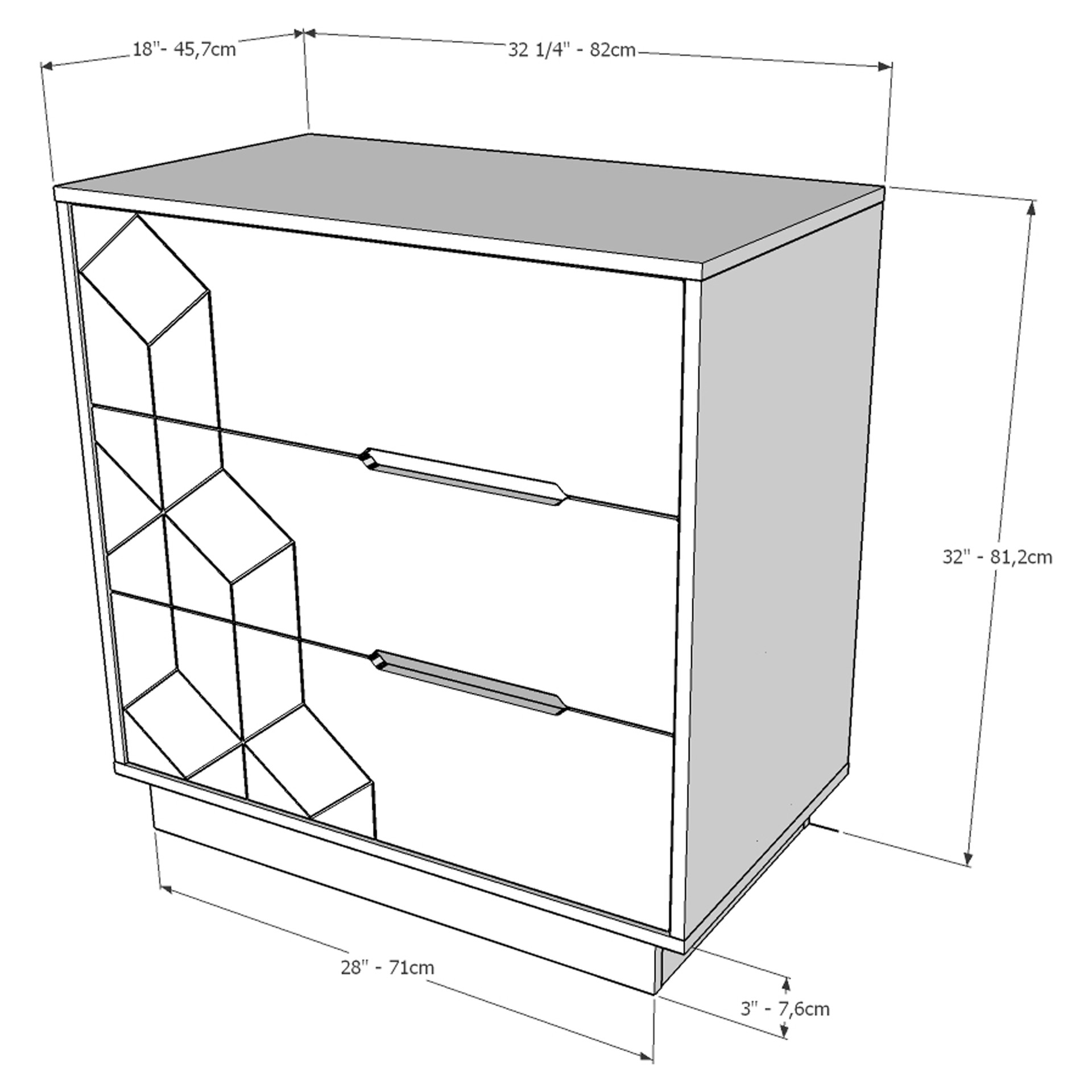 With its textured geometric fronts, our 3-drawer dresser will add texture and a design element to your bedroom.