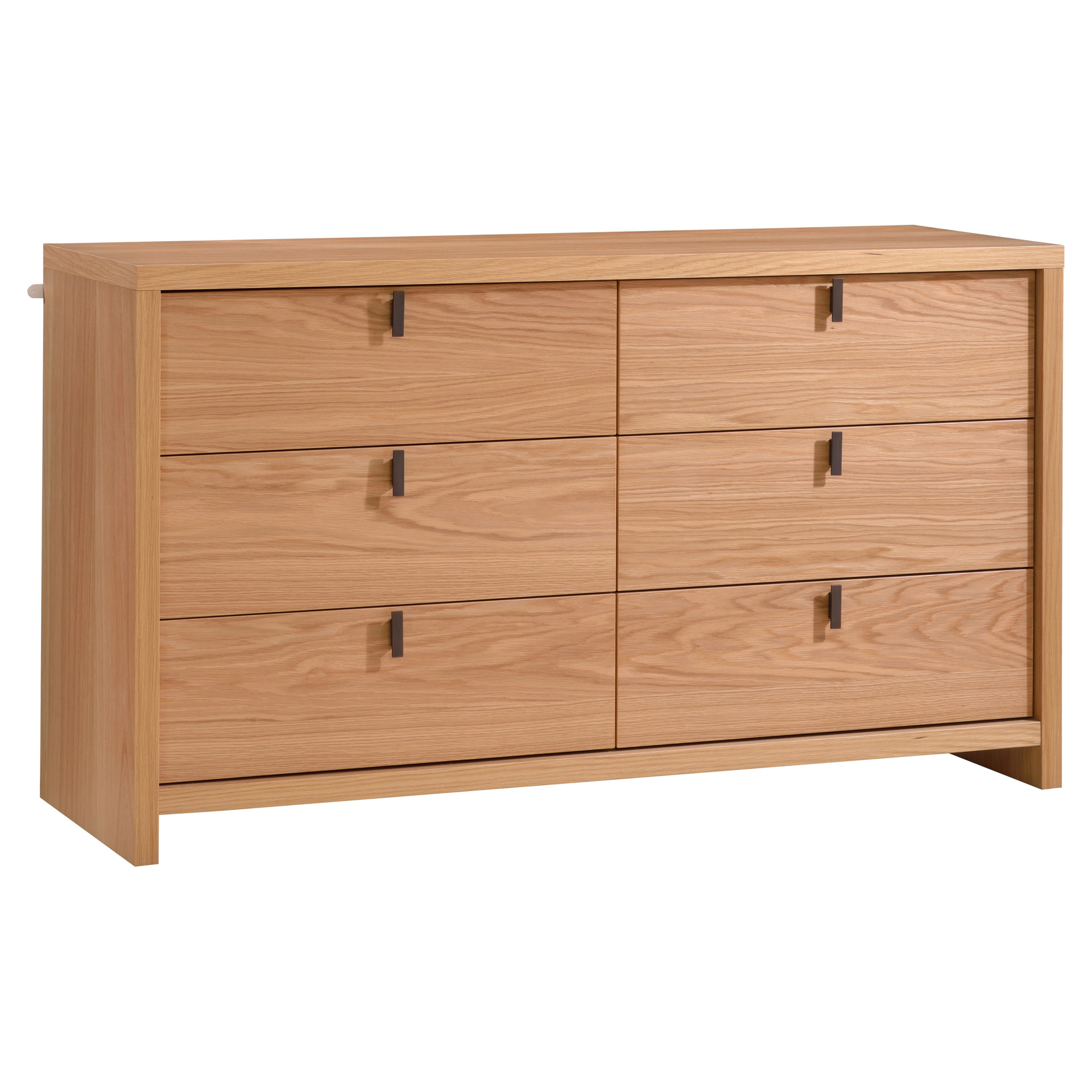 Bring warmth and functionality to the bedroom with this double dresser featuring a clean, streamlined design. Its natural wood finish highlights the material’s grain and blends easily with a variety of décors, from contemporary to Scandinavian.