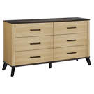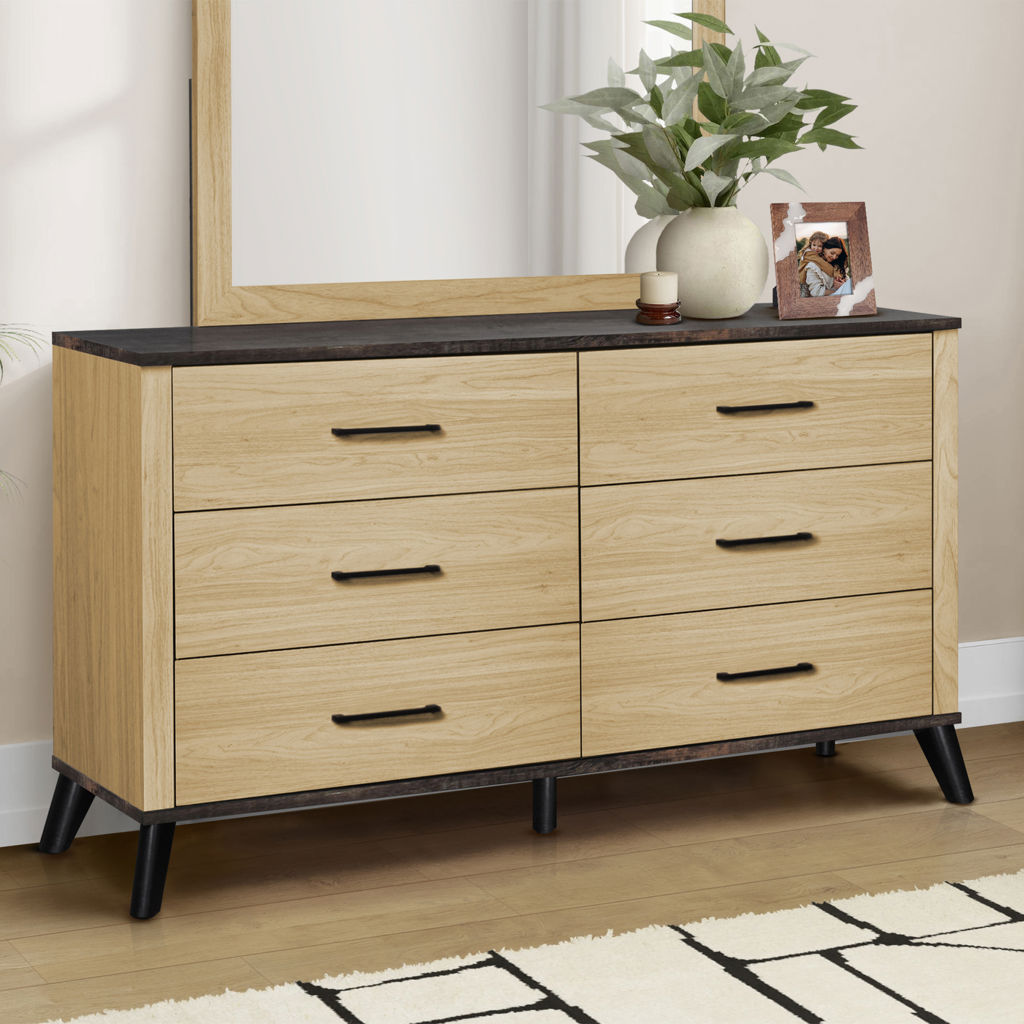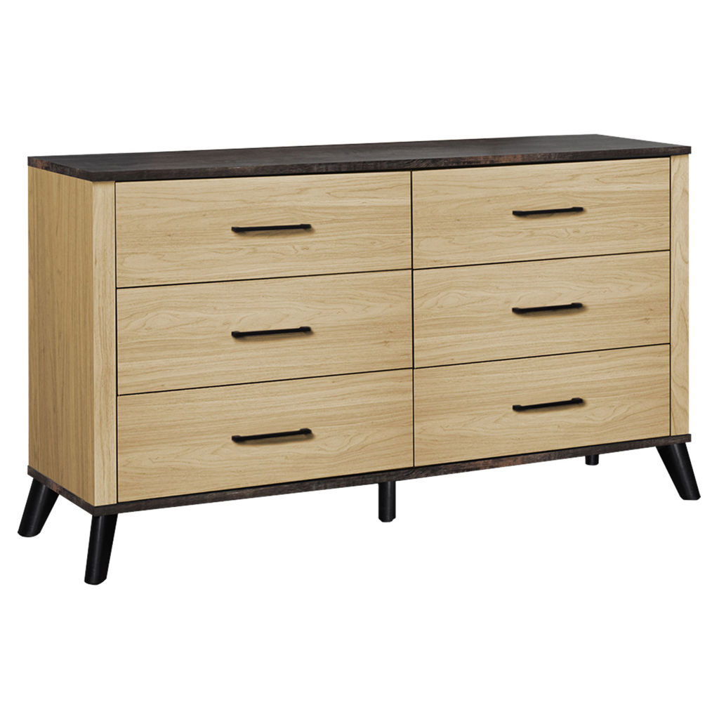 This elegant 6-drawer dresser will transform your bedroom into a refined contemporary space. Featuring a sleek light oak laminate finish accented by a brown oak top, it perfectly blends rustic warmth with modern sophistication.
