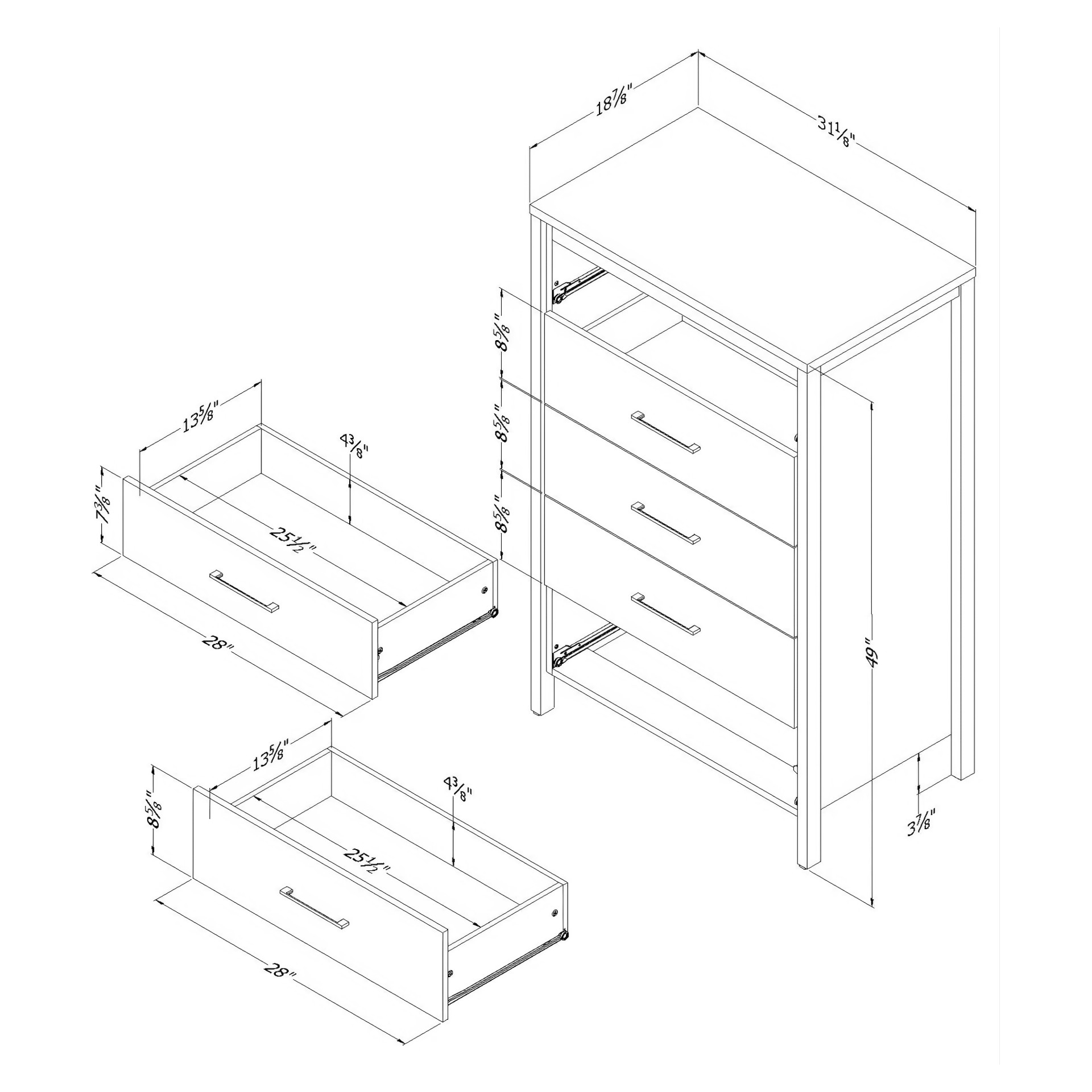 • 5 storage drawers, metal runners for smooth gliding.