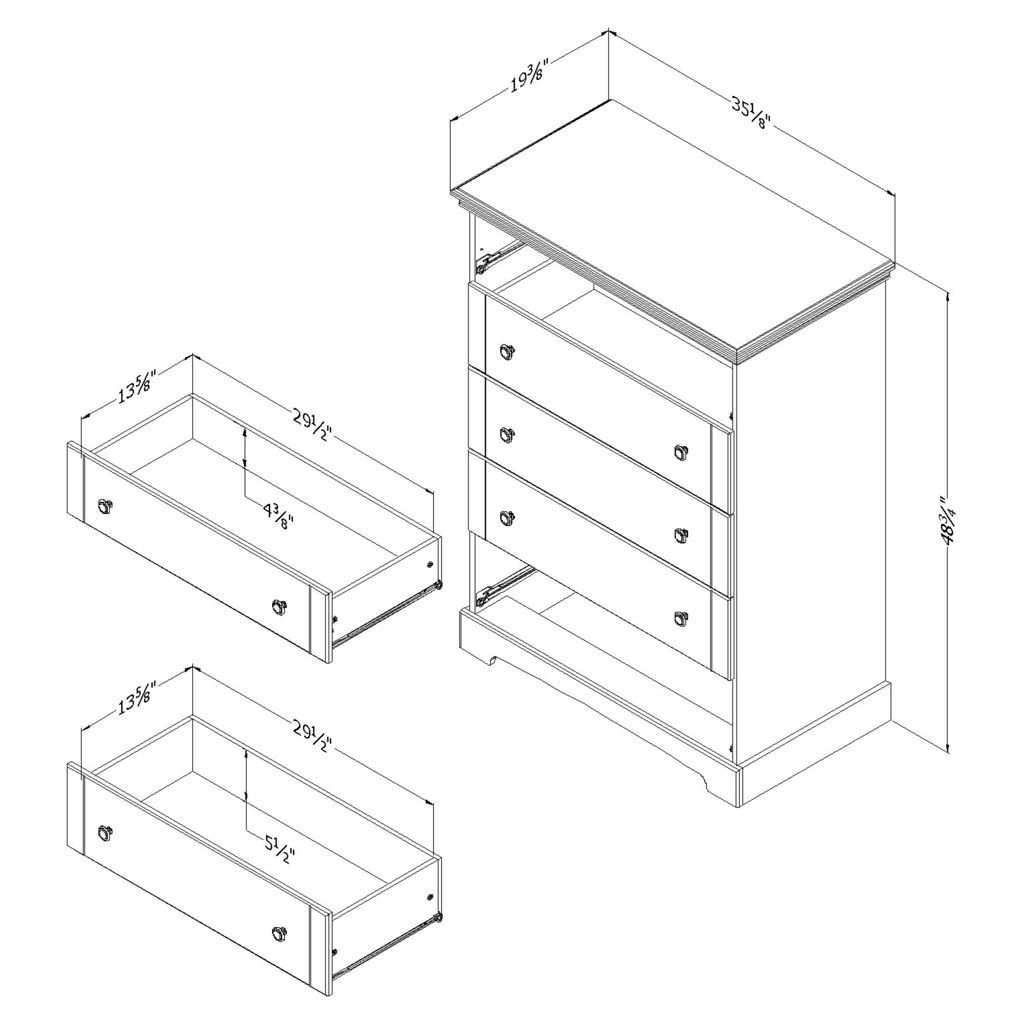 • Decorative grooves on drawer fronts