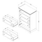 Designed to stand out, this chest features clean lines, a subtle kick plate, and elegant metal knobs. Each drawer includes two handles for easy use. Its compact size makes it the perfect storage solution for anyone with limited space who still wants to add functionality and style.