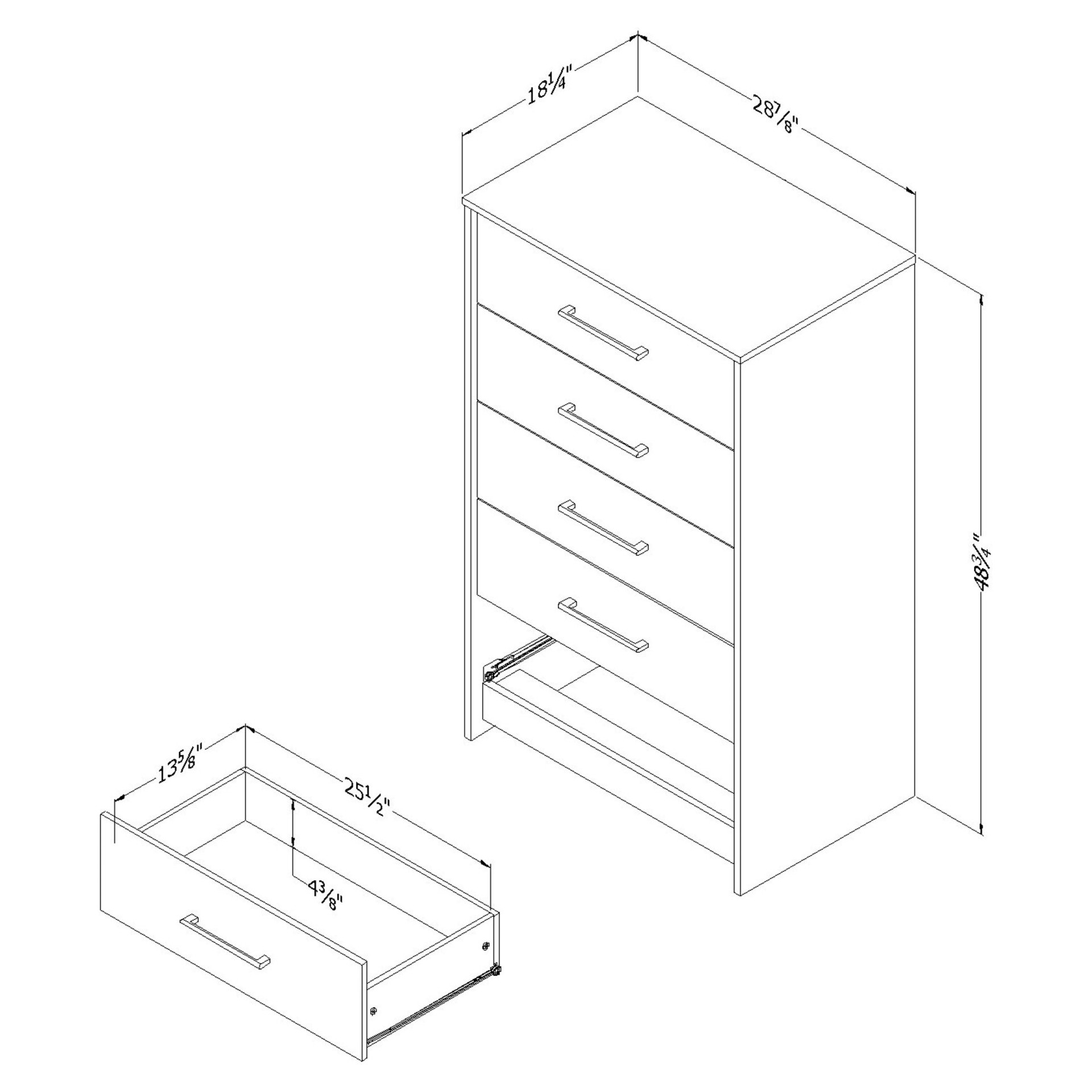 The drawers are made of metal to ensure solidity. This allows you to store up to 25 pounds of clothes in each of the five drawers.