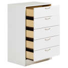 This five-drawer chest of drawers offers the perfect storage solution for your bedroom. Its white finish blends seamlessly with any décor, creating a presence that is both subtle and refined.