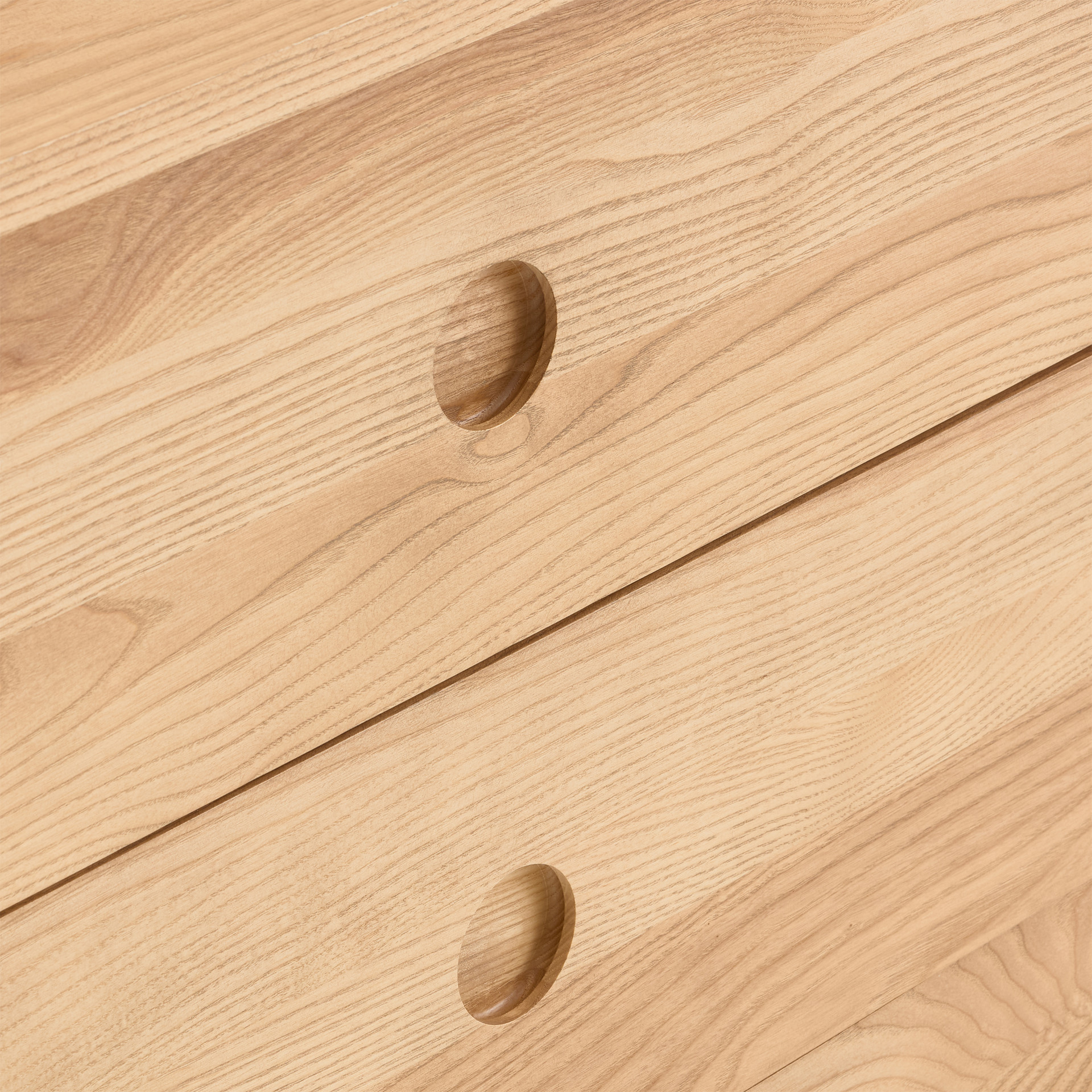 This solid ash dresser combines natural elegance with everyday functionality. Its five spacious drawers provide generous storage for your bedroom, while the recessed handles create a sleek, contemporary silhouette. The ash wood showcases its beautiful grain patterns, adding warmth and character to your interior.