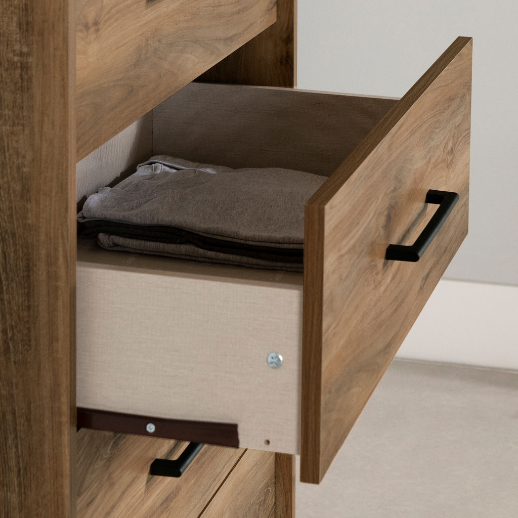 The drawers are made of metal to ensure solidity. This allows you to store up to 25 pounds of clothes in each of the five drawers.