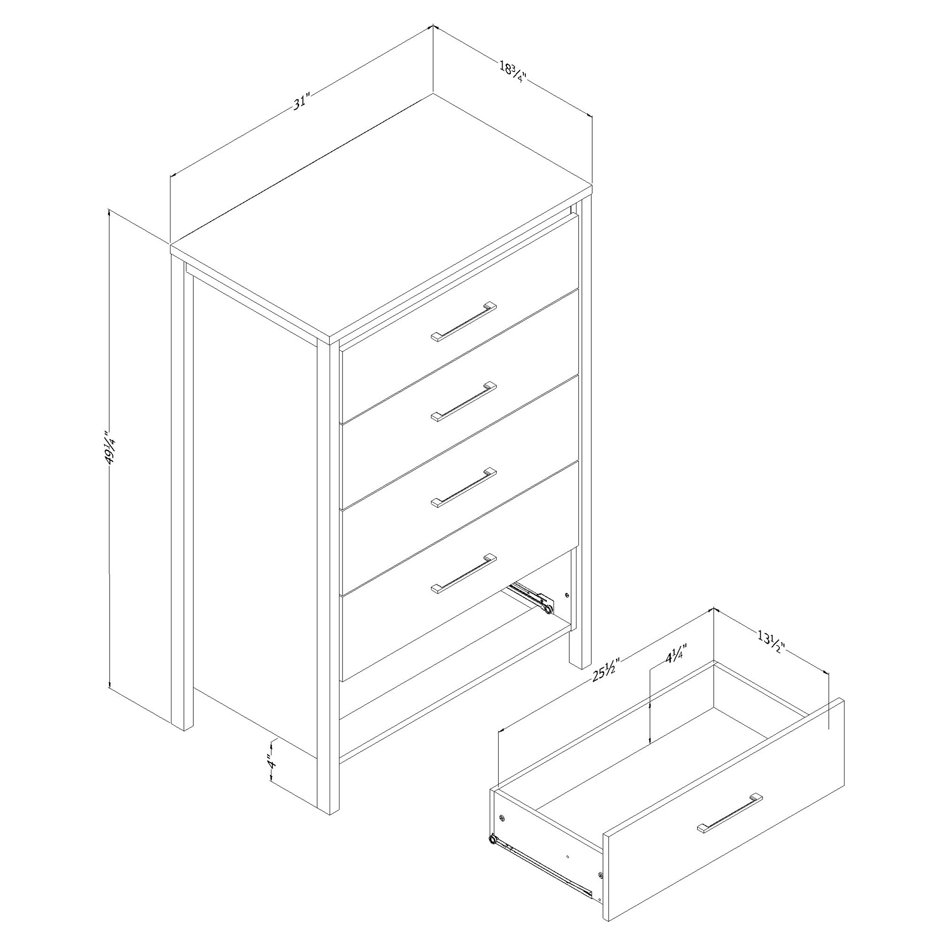 • 5 storage drawers, metal runners for smooth gliding.