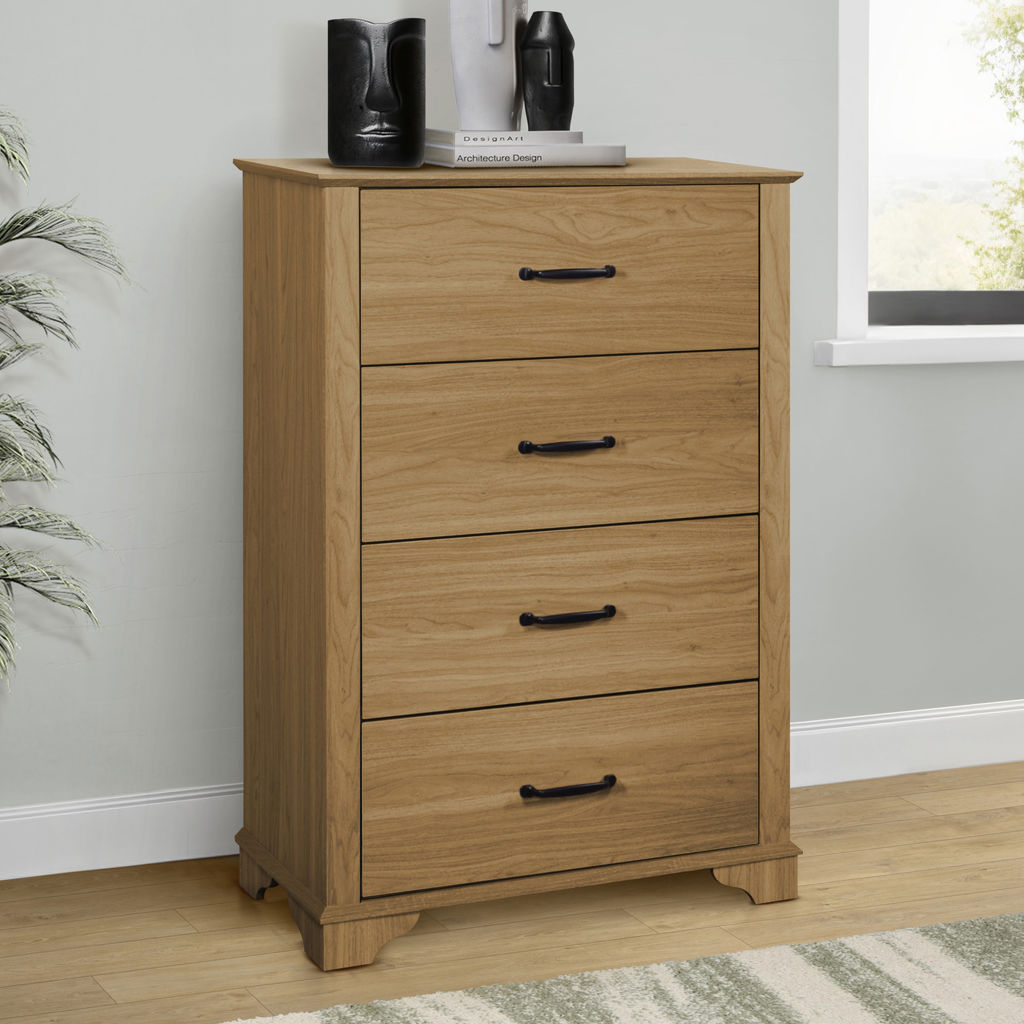 Discover this elegant 4-drawer chest that blends transitional design with outstanding functionality, offering a sophisticated storage solution for your bedroom.