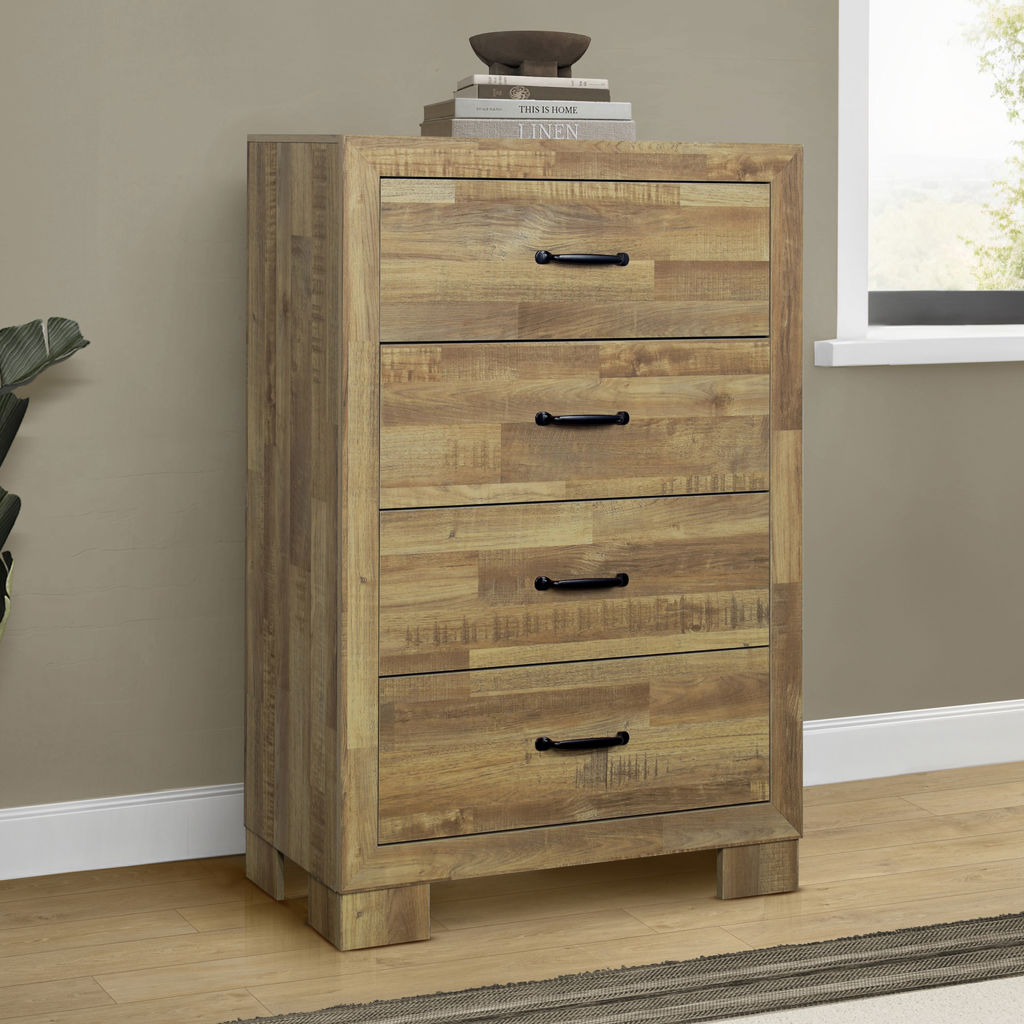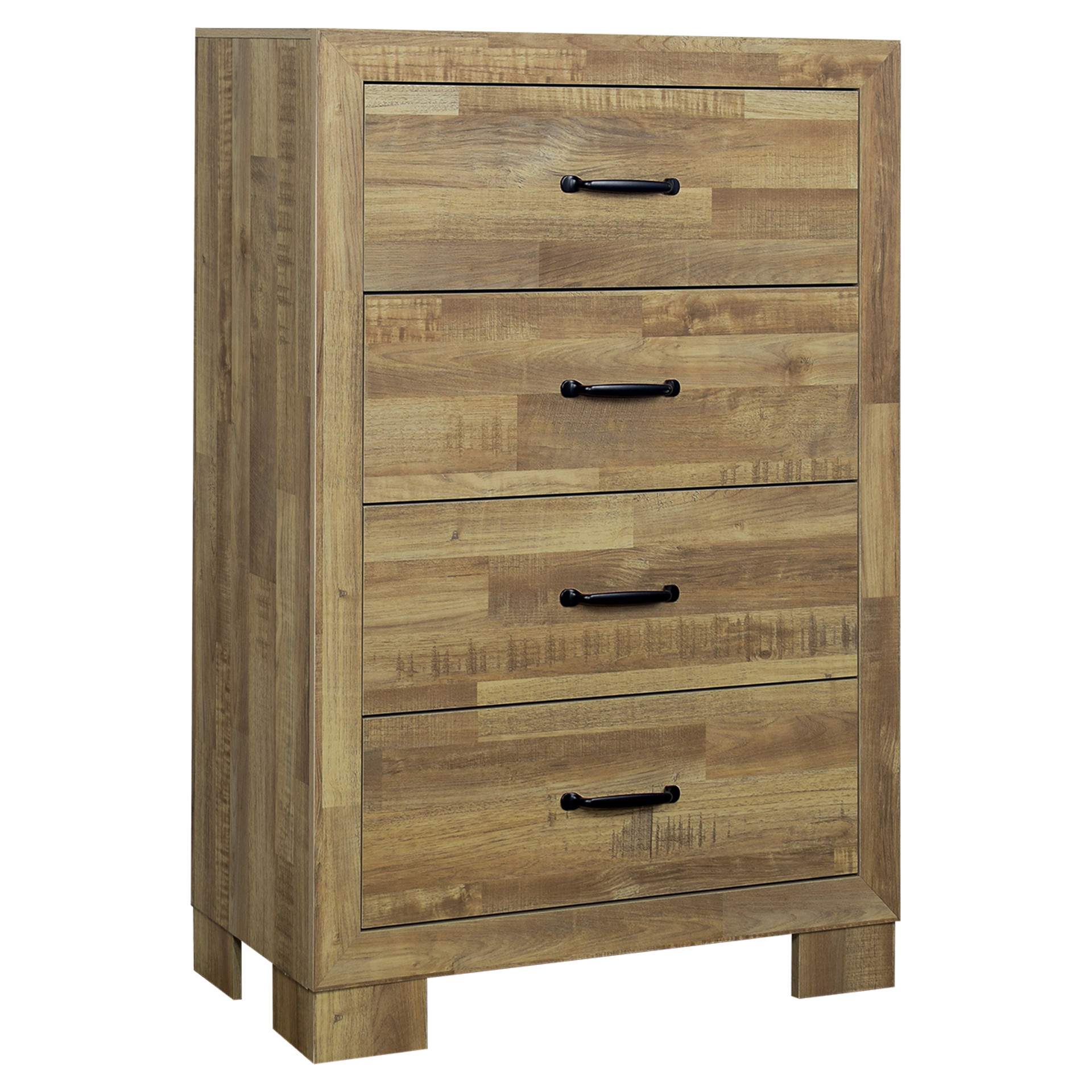 Add practical storage and timeless style to your bedroom with this 4-drawer chest, designed to combine durability with refined elegance. Its warm medium oak laminate finish creates a natural, inviting look that complements a wide range of bedroom décors.