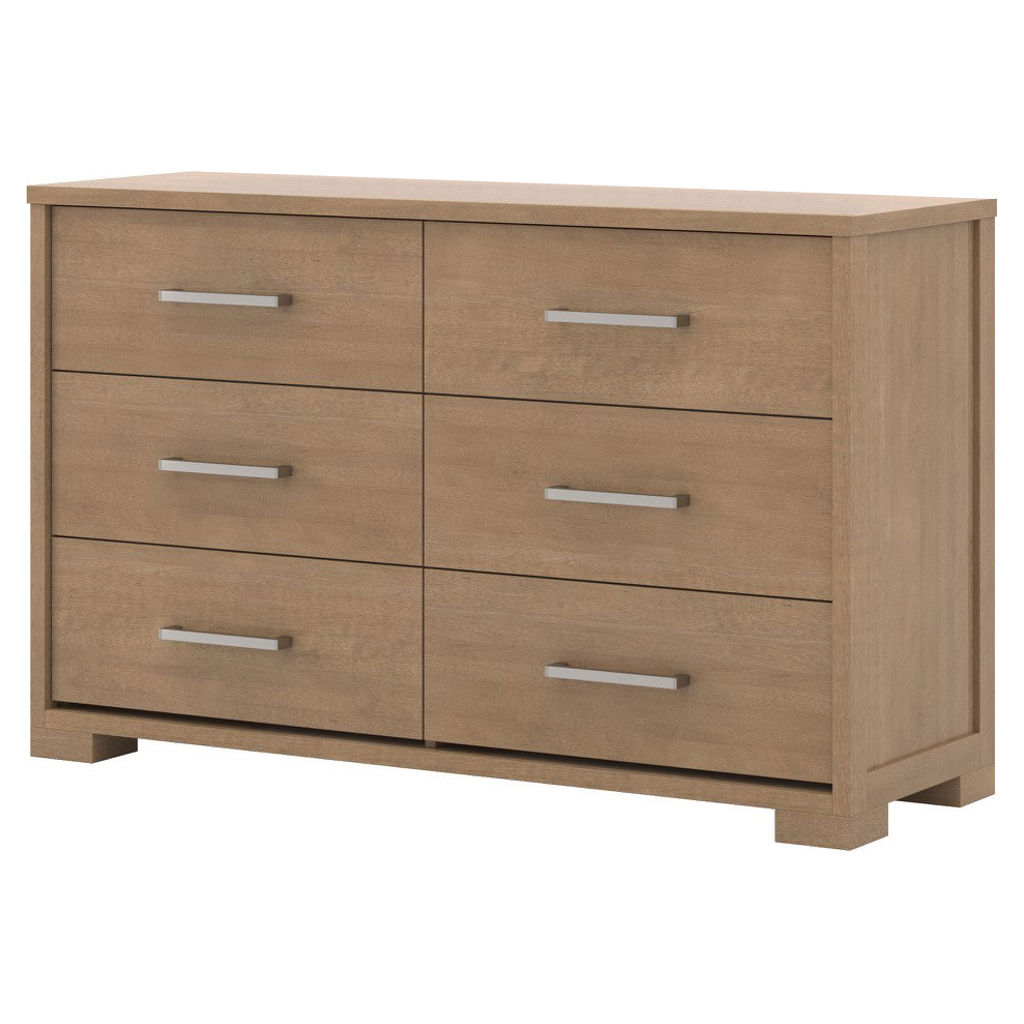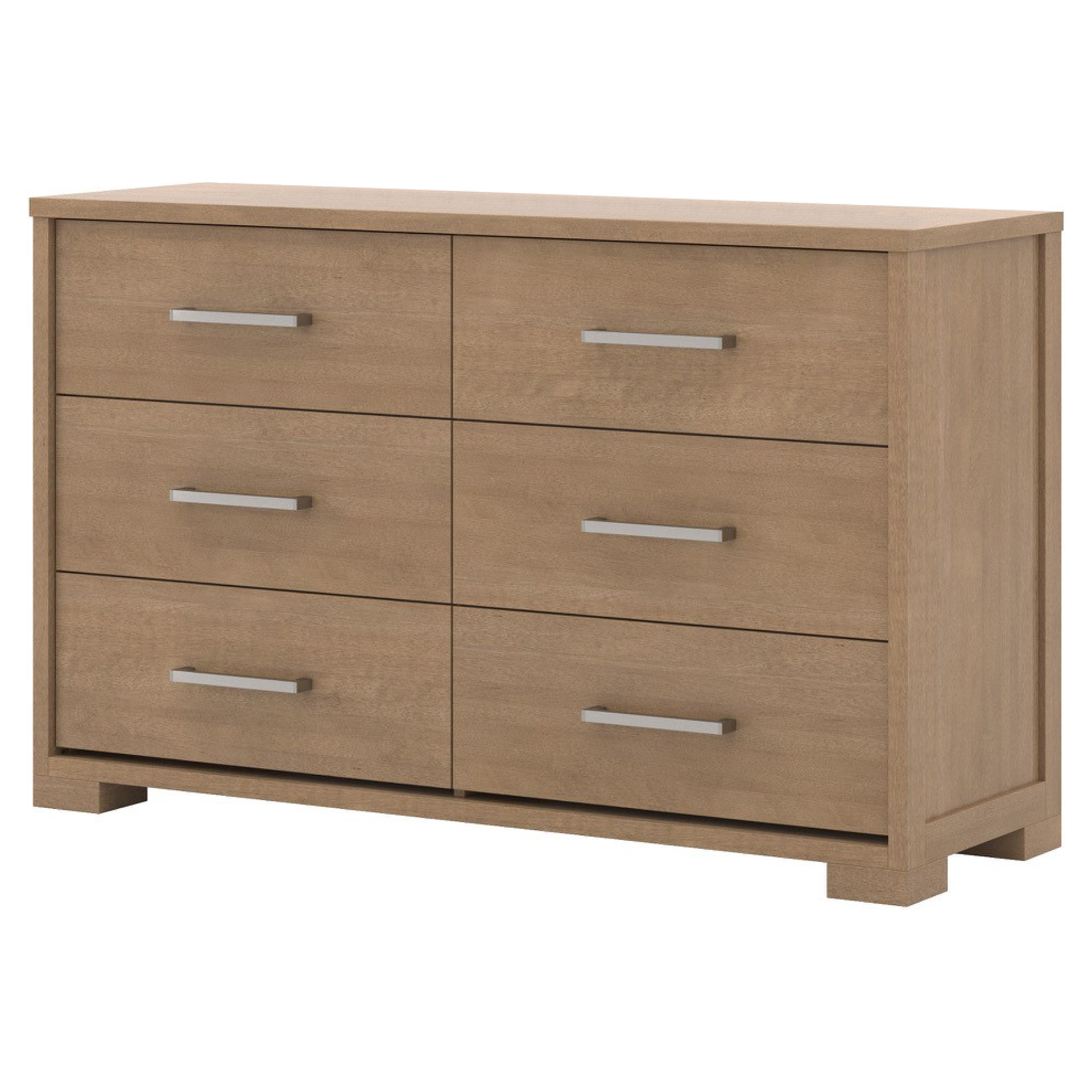 This double dresser, designed for a kid’s bedroom, features a contemporary look and offers six drawers for storing clothes and other items. Large handles make it easy to access the contents, and the drawers glide smoothly on rails.