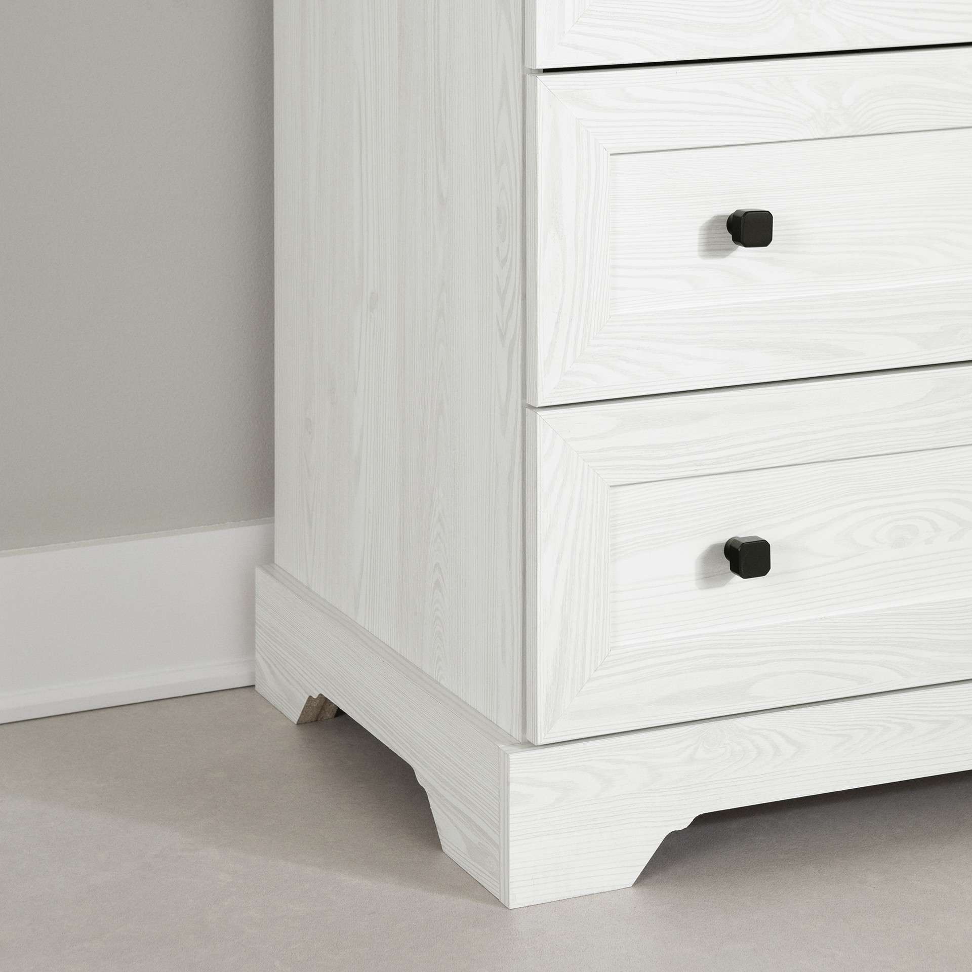 A VERSATILE DRESSER: The Farmhouse-inspired style of this chest of drawers will match the decor in your child's room perfectly – be it a boy or a girl. The refined drawer edges, minimalist handles, and decorative trim at the bottom give this piece a timeless style.