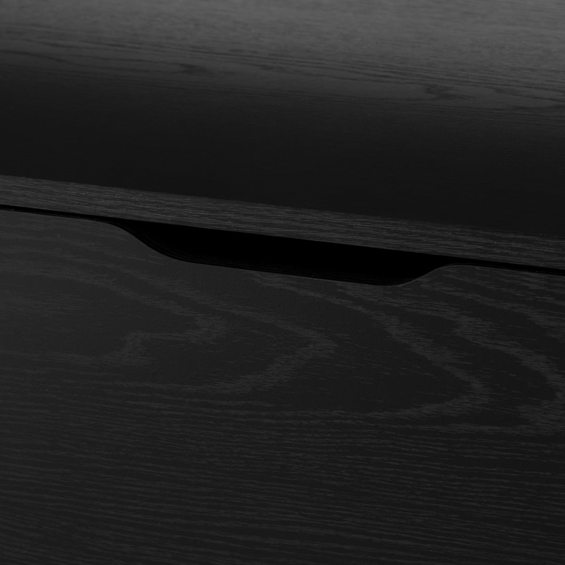 • Handles cut into the top of the drawer fronts.