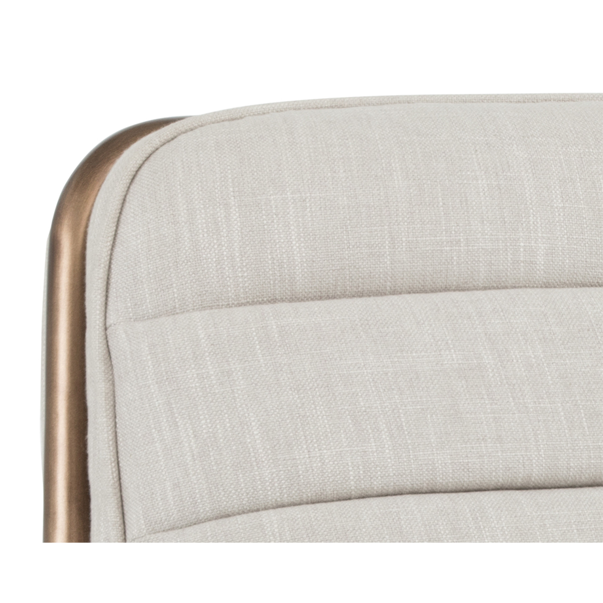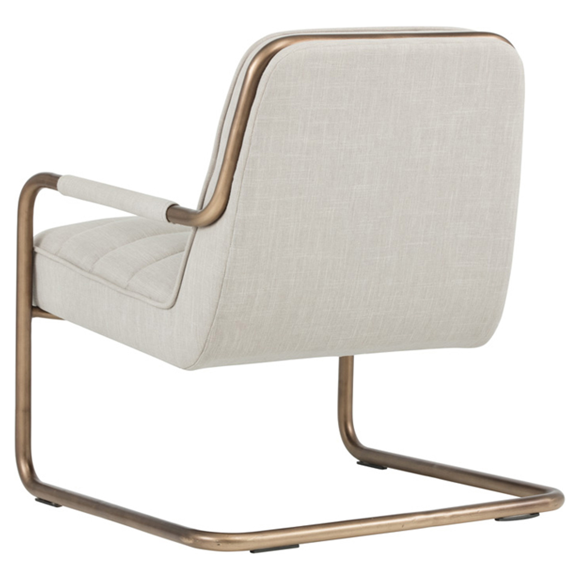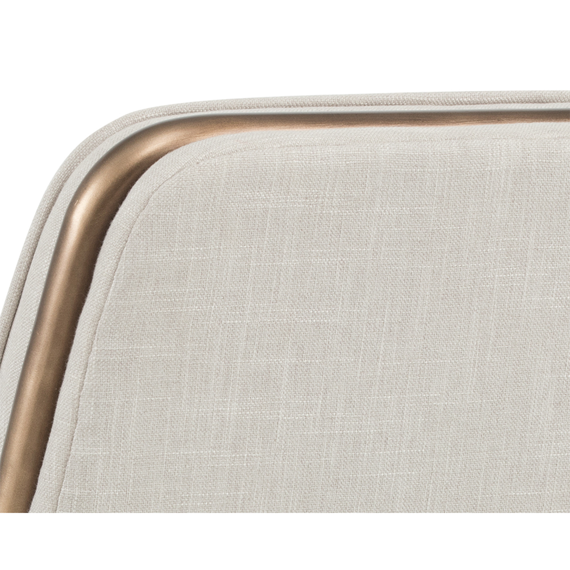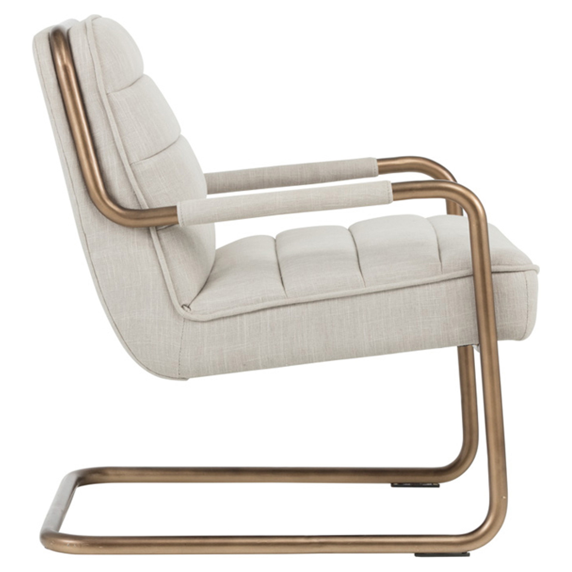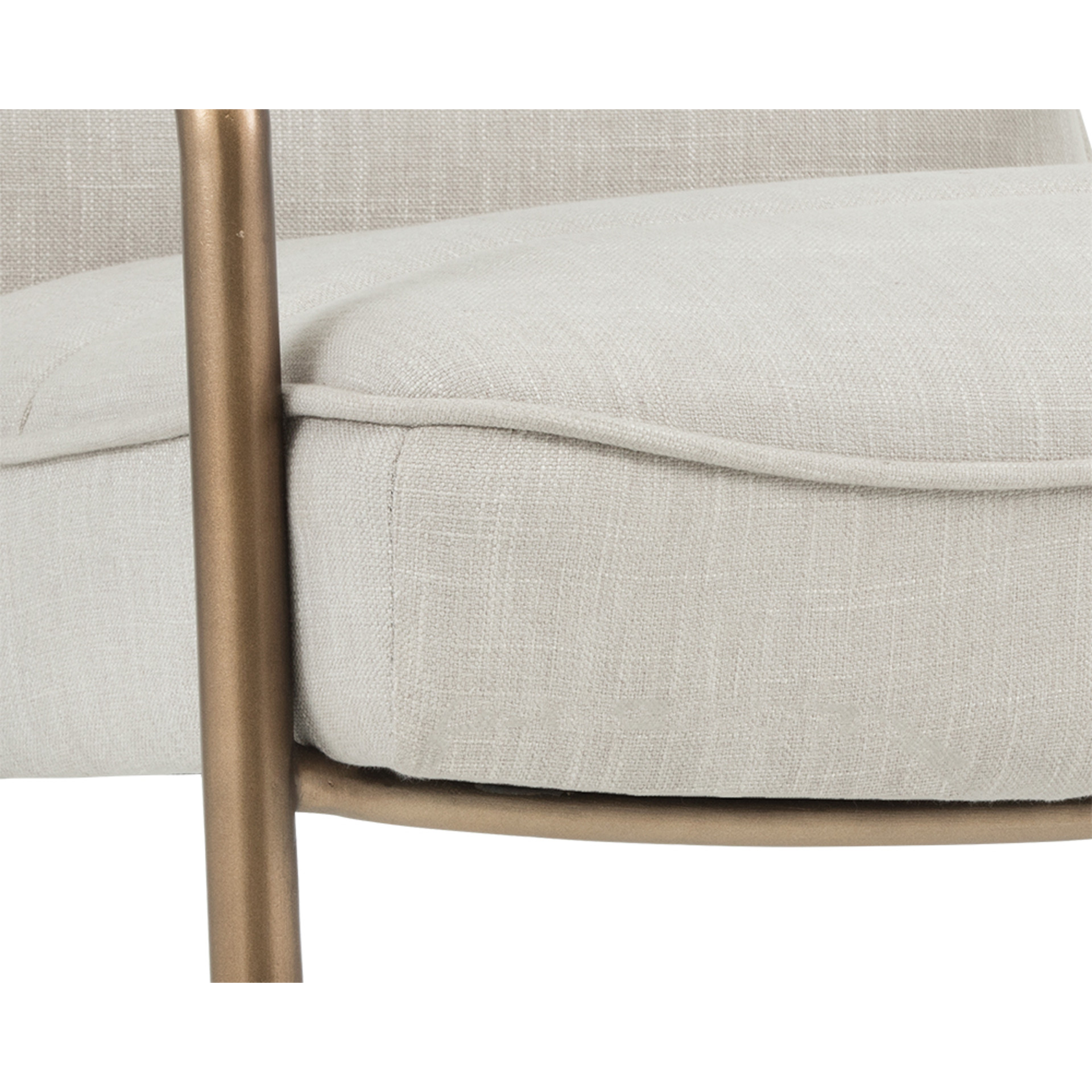 The bronze metal frame adds a refined touch, while the beige fabric upholstery offers a soothing visual softness. Tufted cushions ensure optimal comfort for your moments of relaxation.