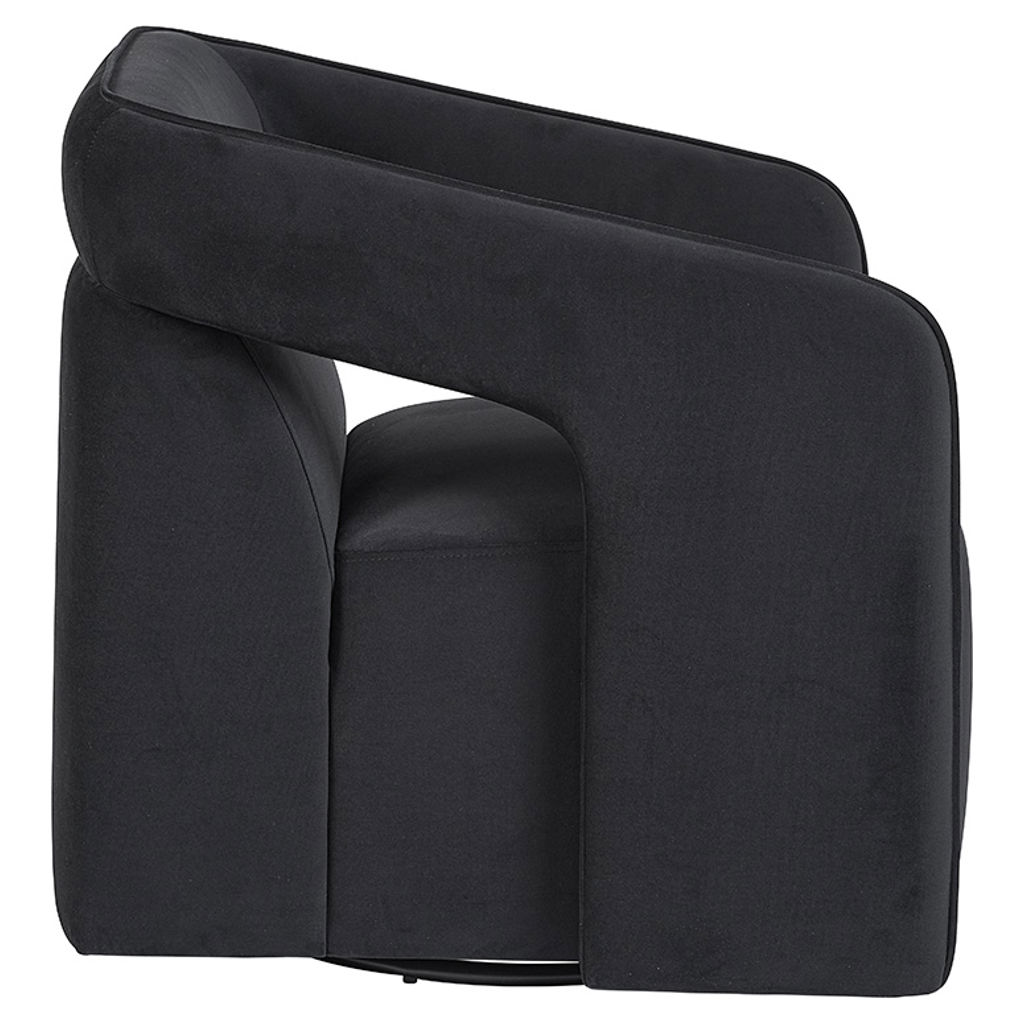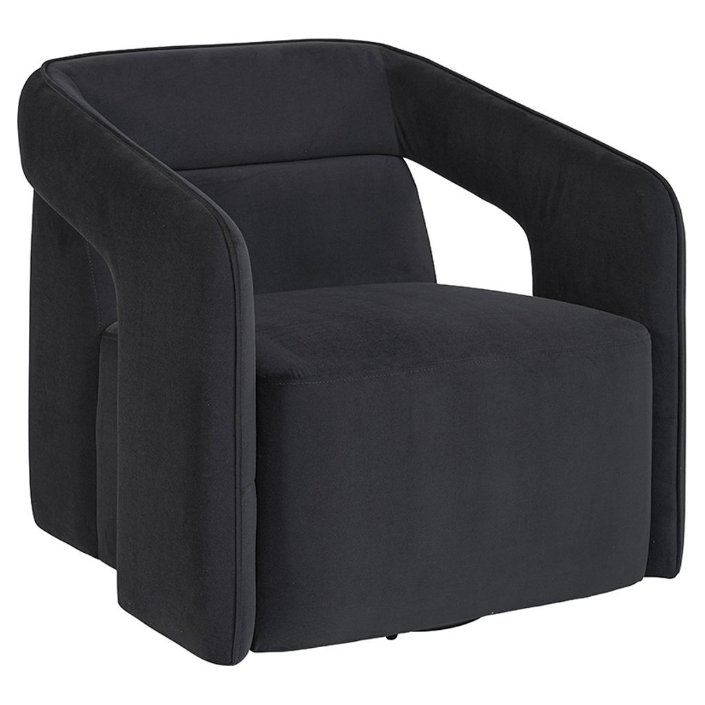 Discover the Kendrick swivel chair, a contemporary design piece that instantly elevates your space. Its rounded lines and enveloping silhouette create a cozy cocoon of comfort, perfect for moments of relaxation.