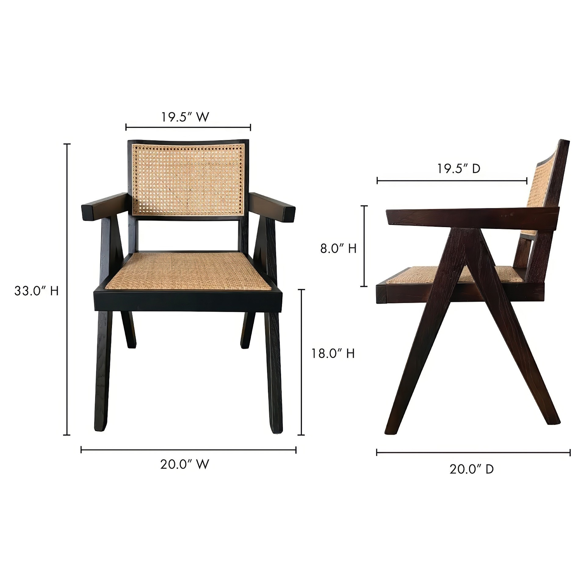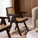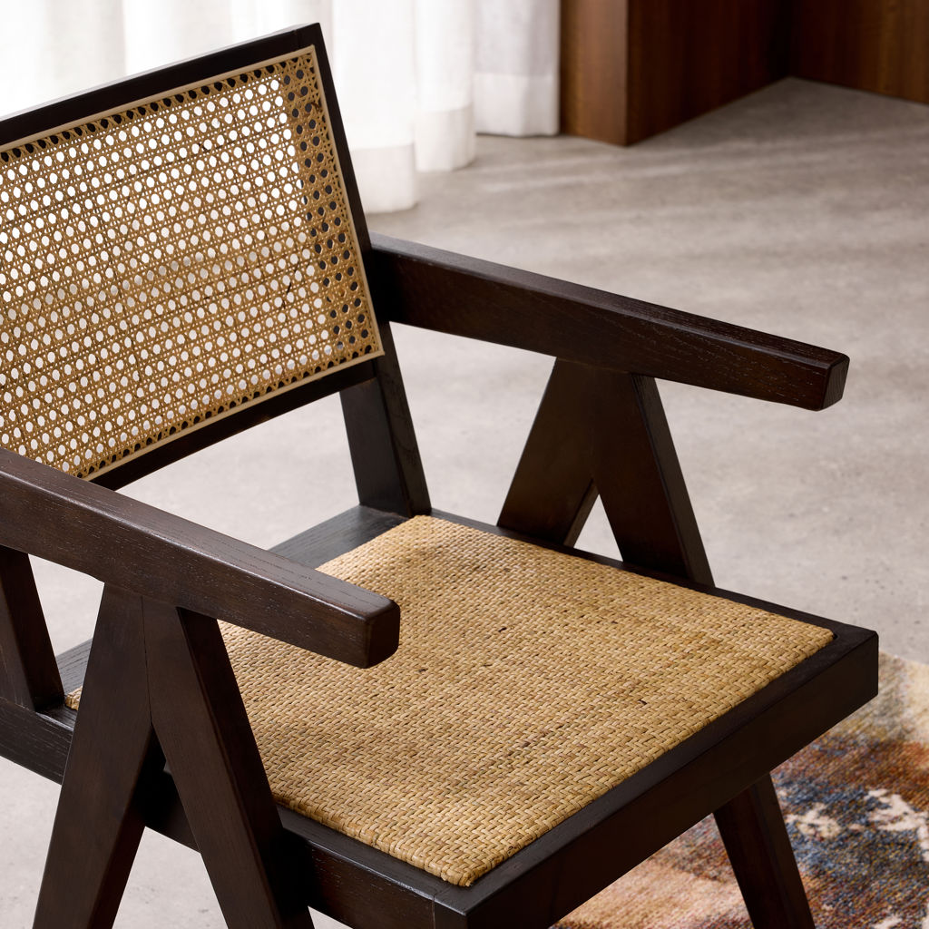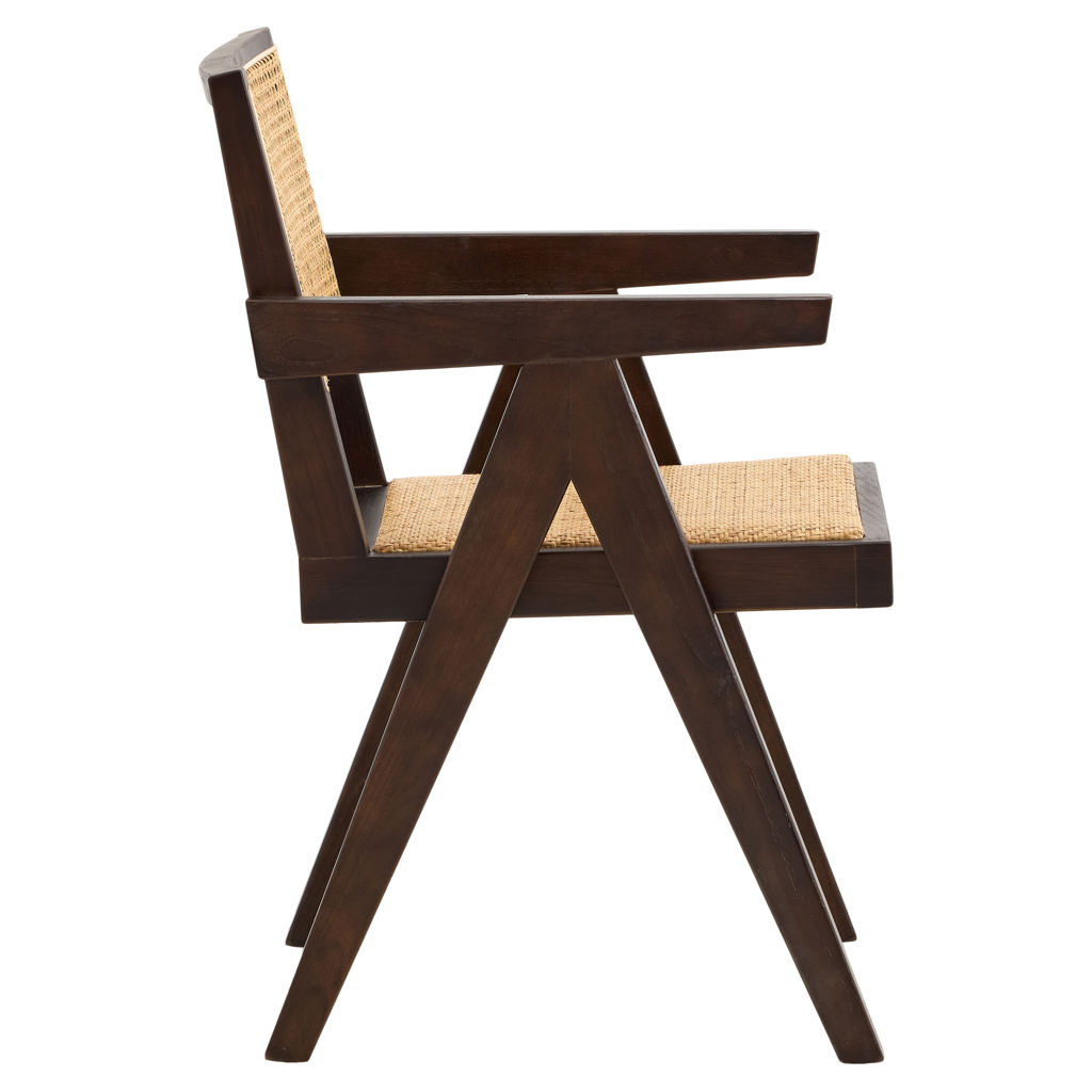 Embrace simplicity and balance with Takashi’s mid-century aesthetic, paired with the richly decadent contrast of dark brown elm and natural rattan.