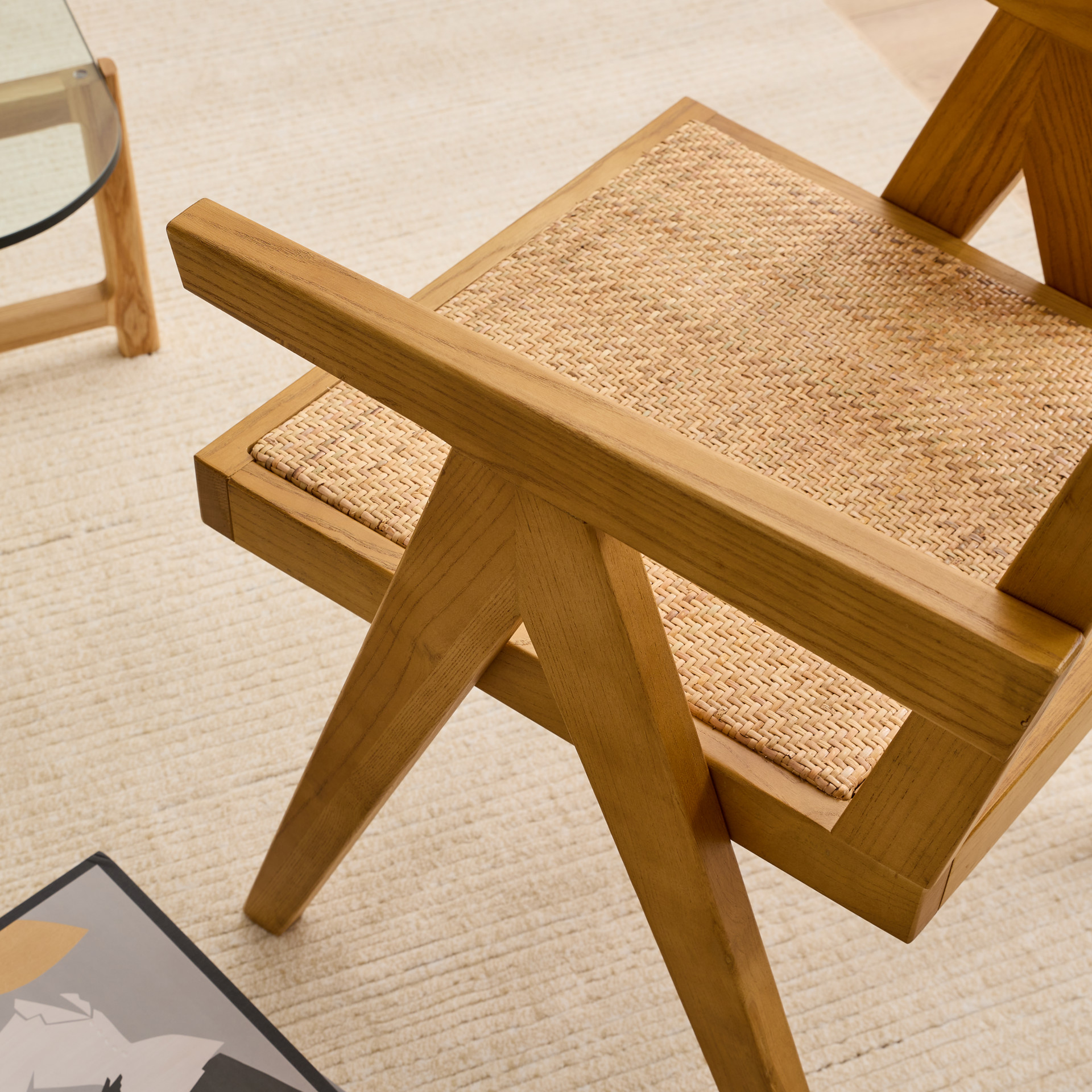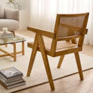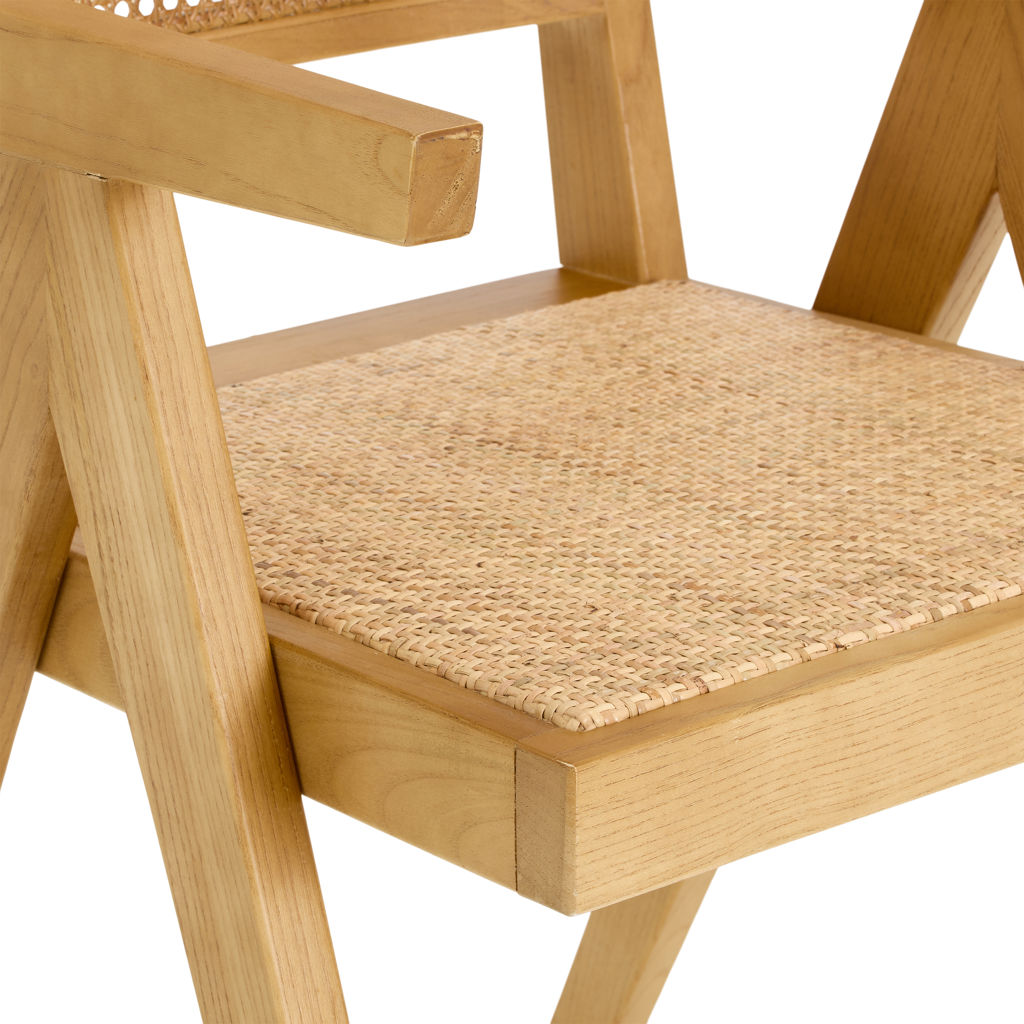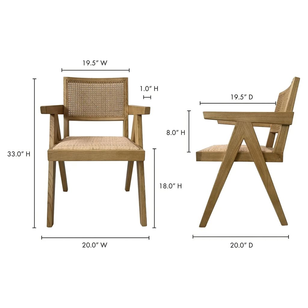 Embrace simplicity and balance with Takashi’s mid-century aesthetic, paired with the richly decadent contrast of dark brown elm and natural rattan.