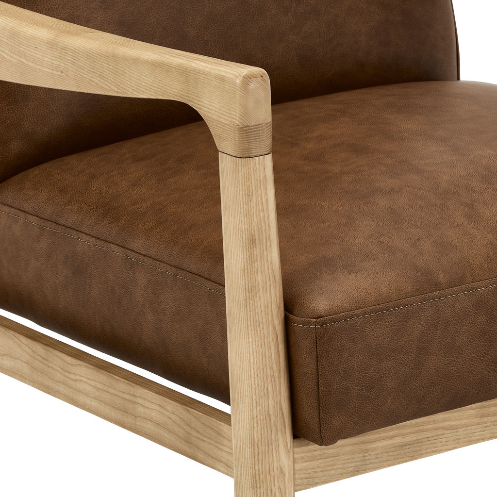 Discover the KF.A1211 chair, where refinement meets ultimate comfort. Its genuine leather in warm chocolate tones pairs beautifully with the natural wood frame, defined by clean, modern lines.