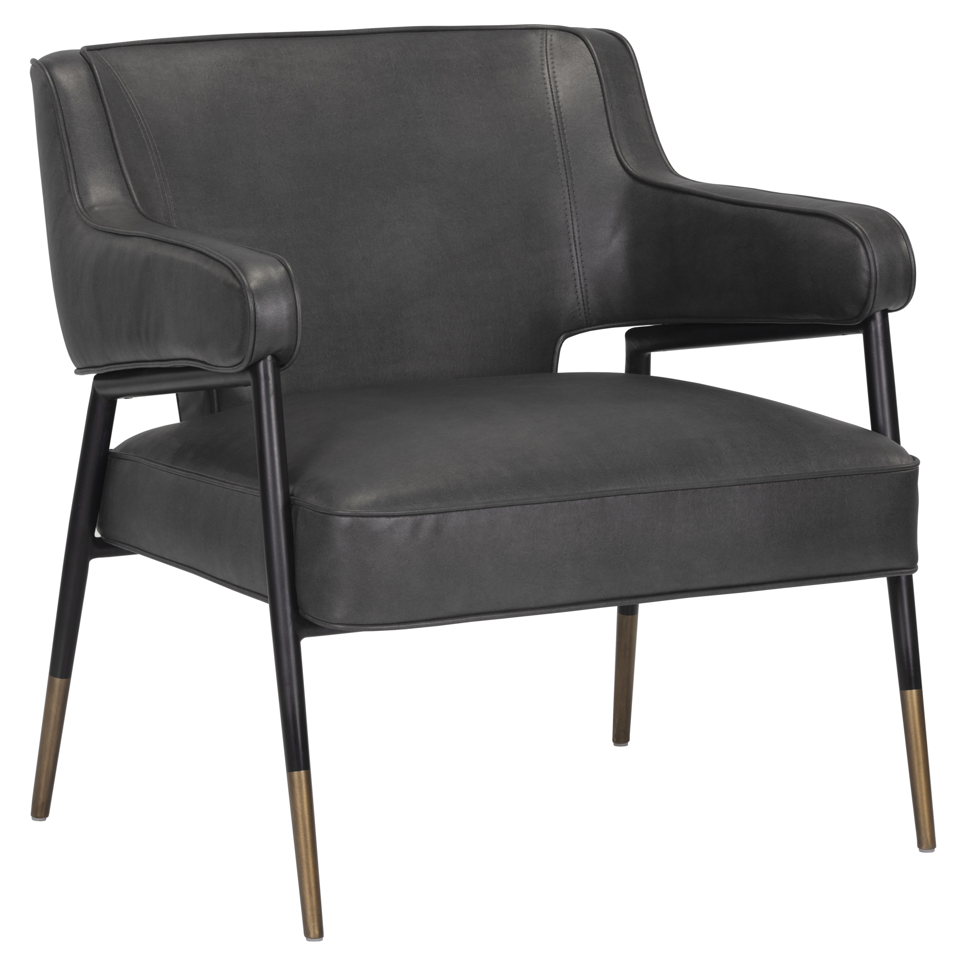 Upholstered in premium anthracite-colored faux leather, this chair features a spacious seat and ergonomic backrest for unmatched comfort. Clean lines and a black metal frame with gold accents add a refined touch of elegance to your décor.