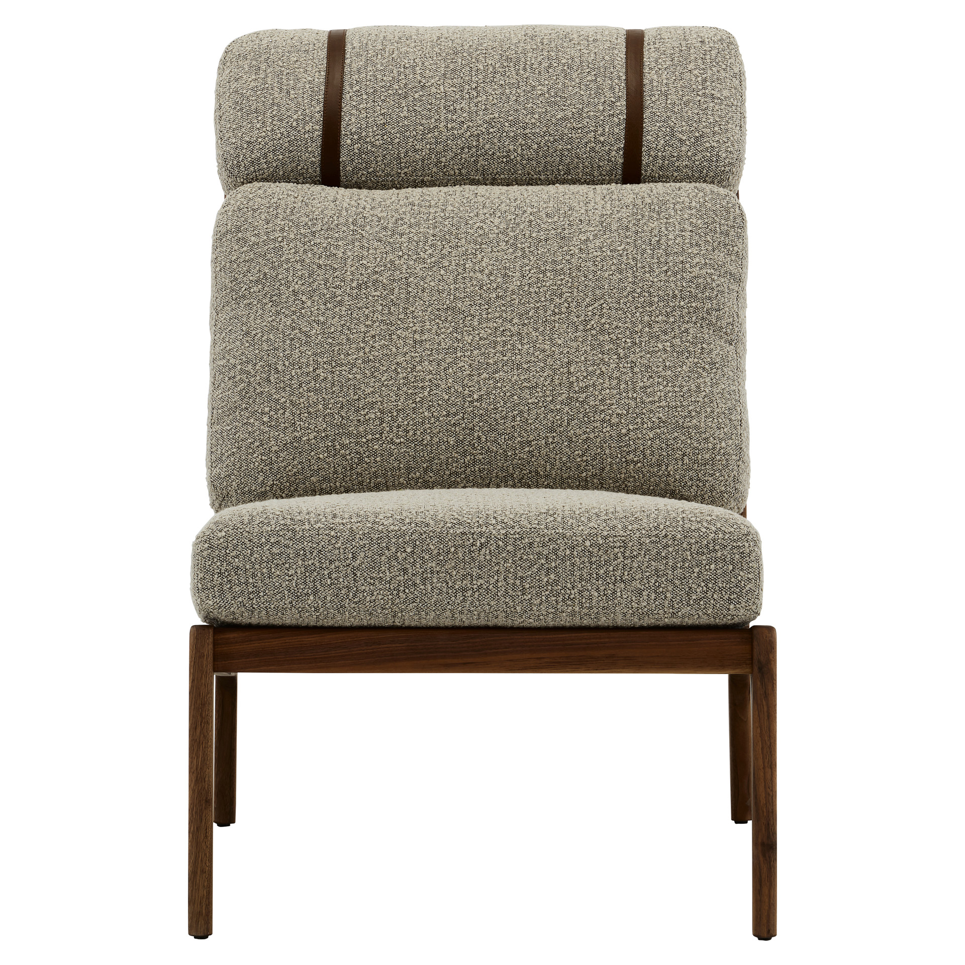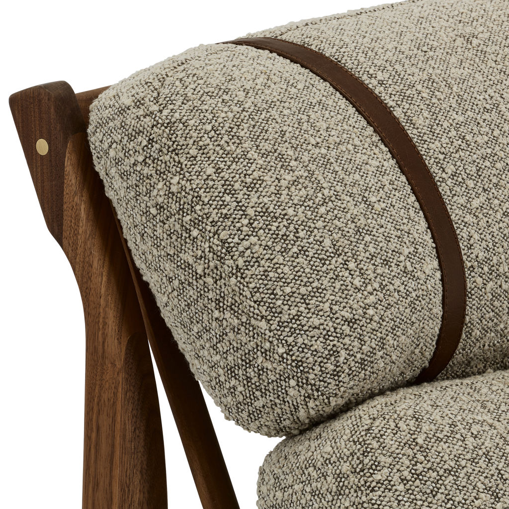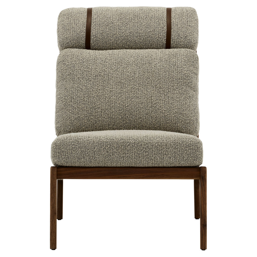 Generous cushions, secured with slender leather straps, provide enveloping support while adding a refined touch.
