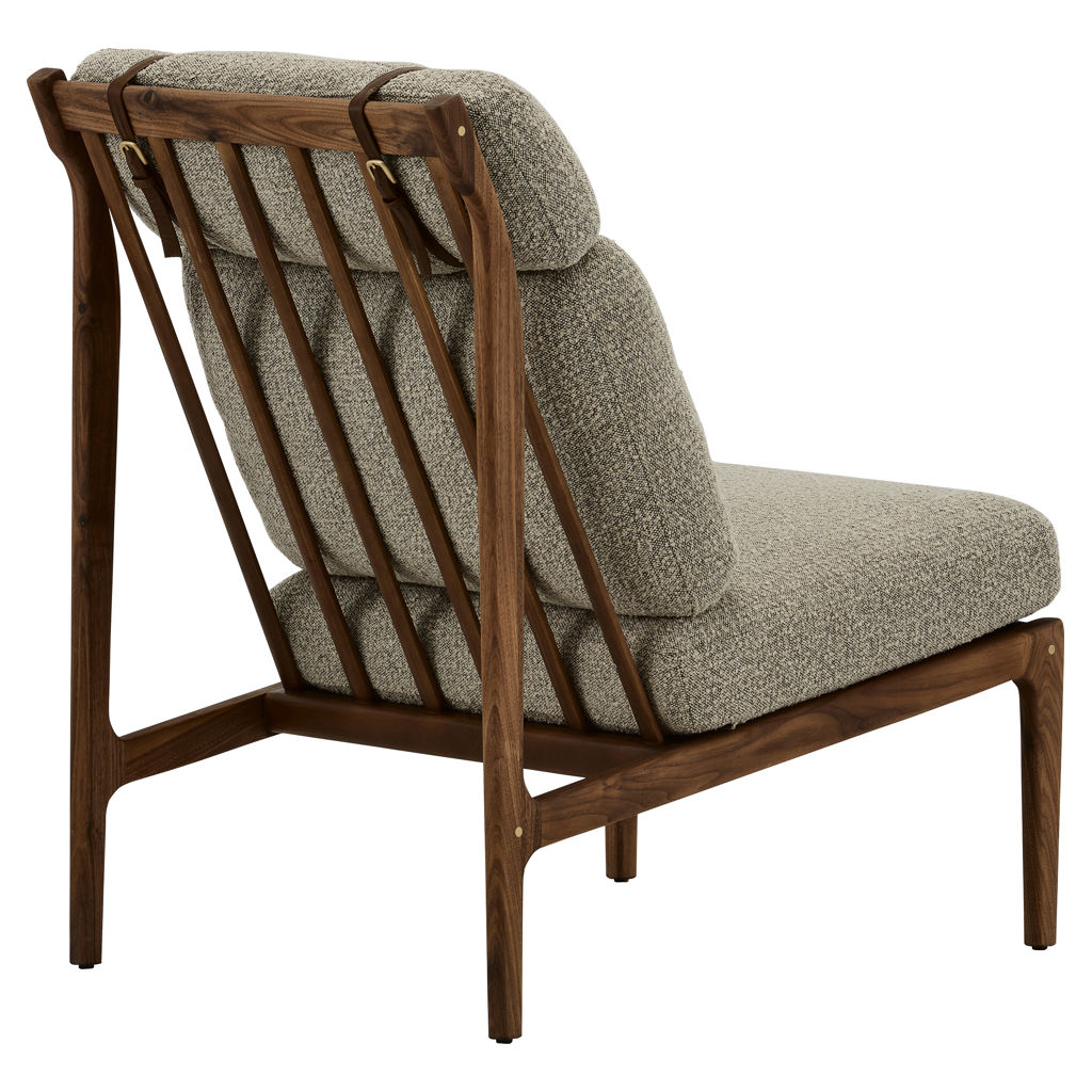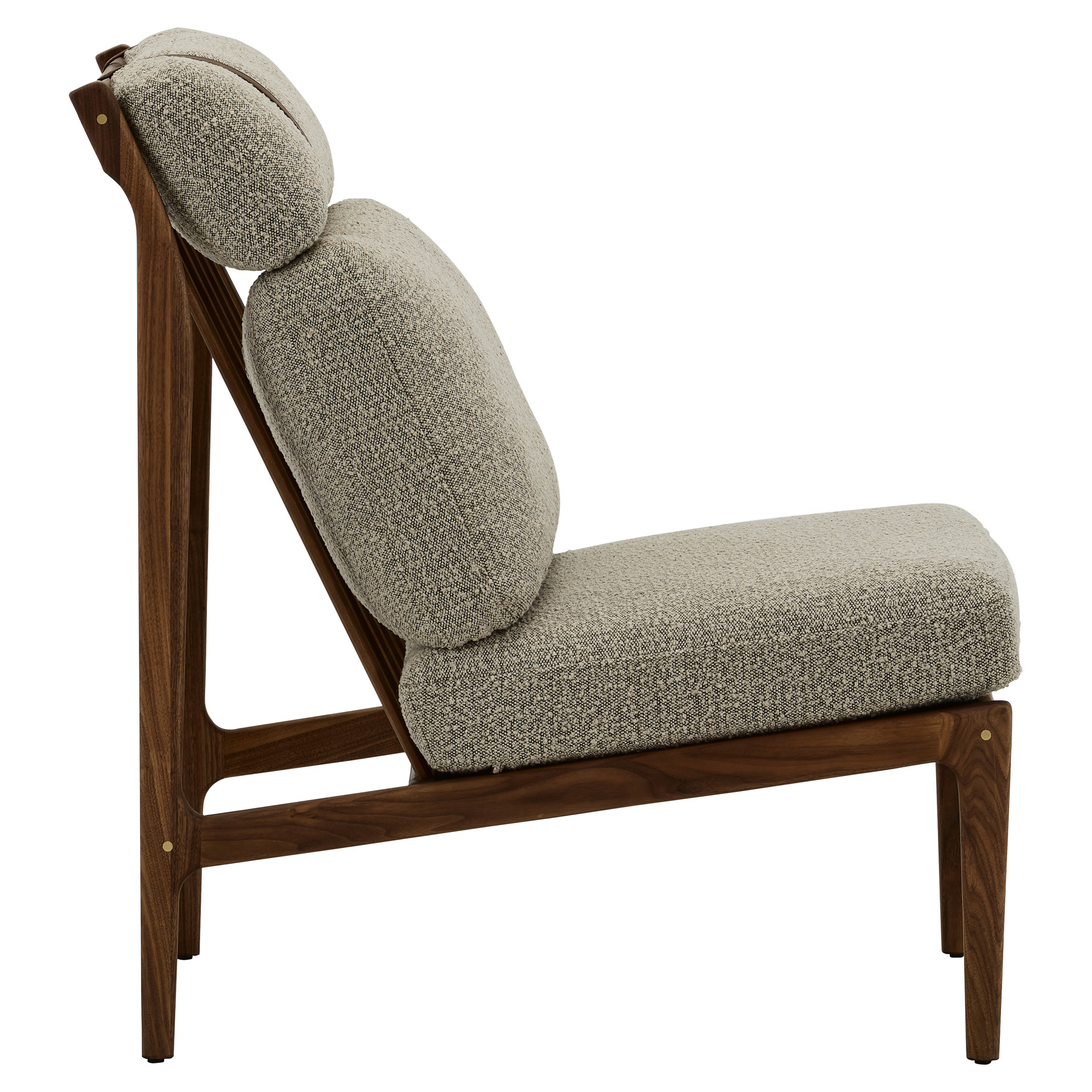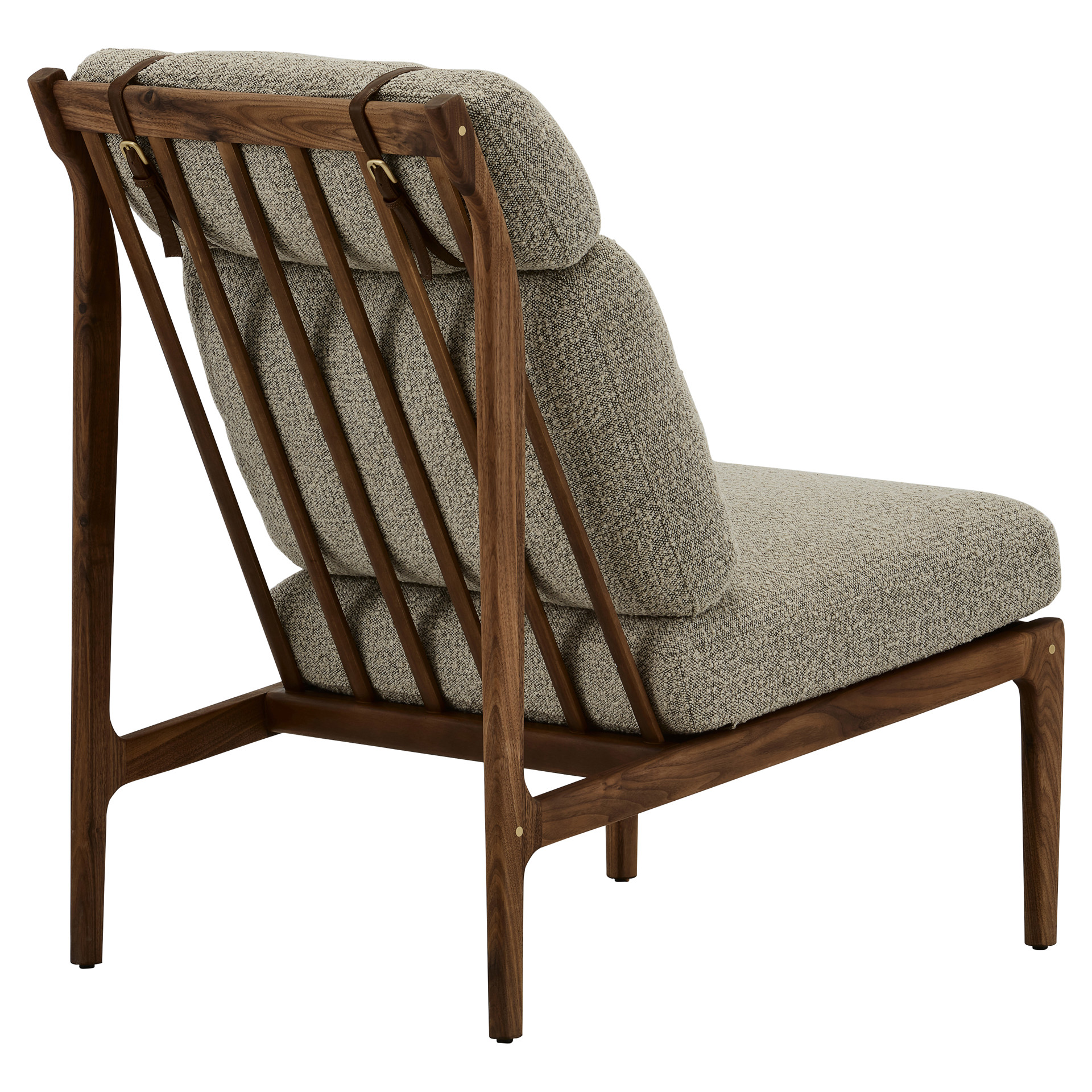 Generous cushions, secured with slender leather straps, provide enveloping support while adding a refined touch.