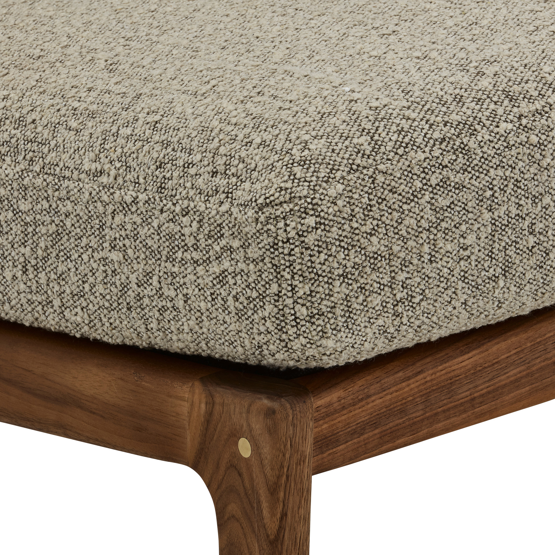 Its textured fabric upholstery pairs beautifully with the richly toned wooden frame, bringing warmth and character to any space.