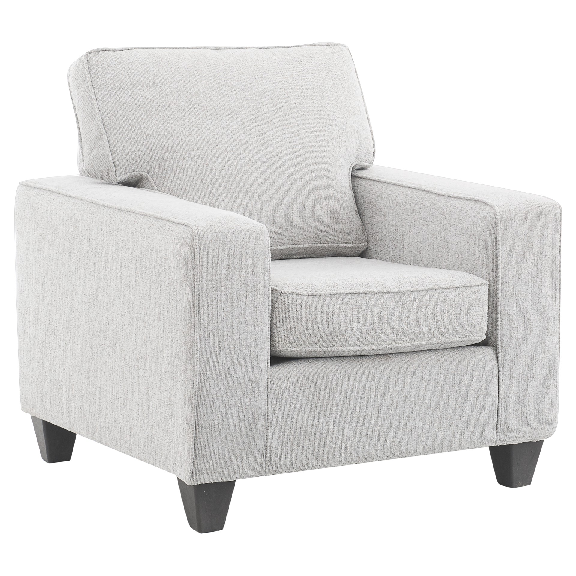 Striking the perfect balance between style and functionality, this chair features generous cushions that invite you to relax, whether you’re reading a good book, watching TV, or unwinding after a long day. The dark wood legs add warmth and create an elegant contrast with the soft fabric.