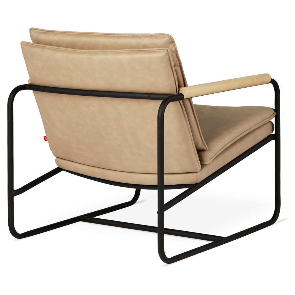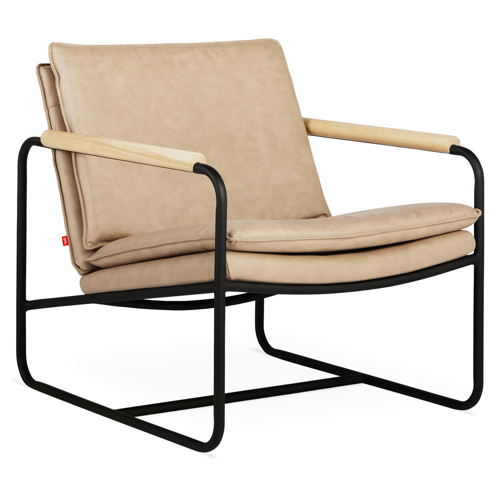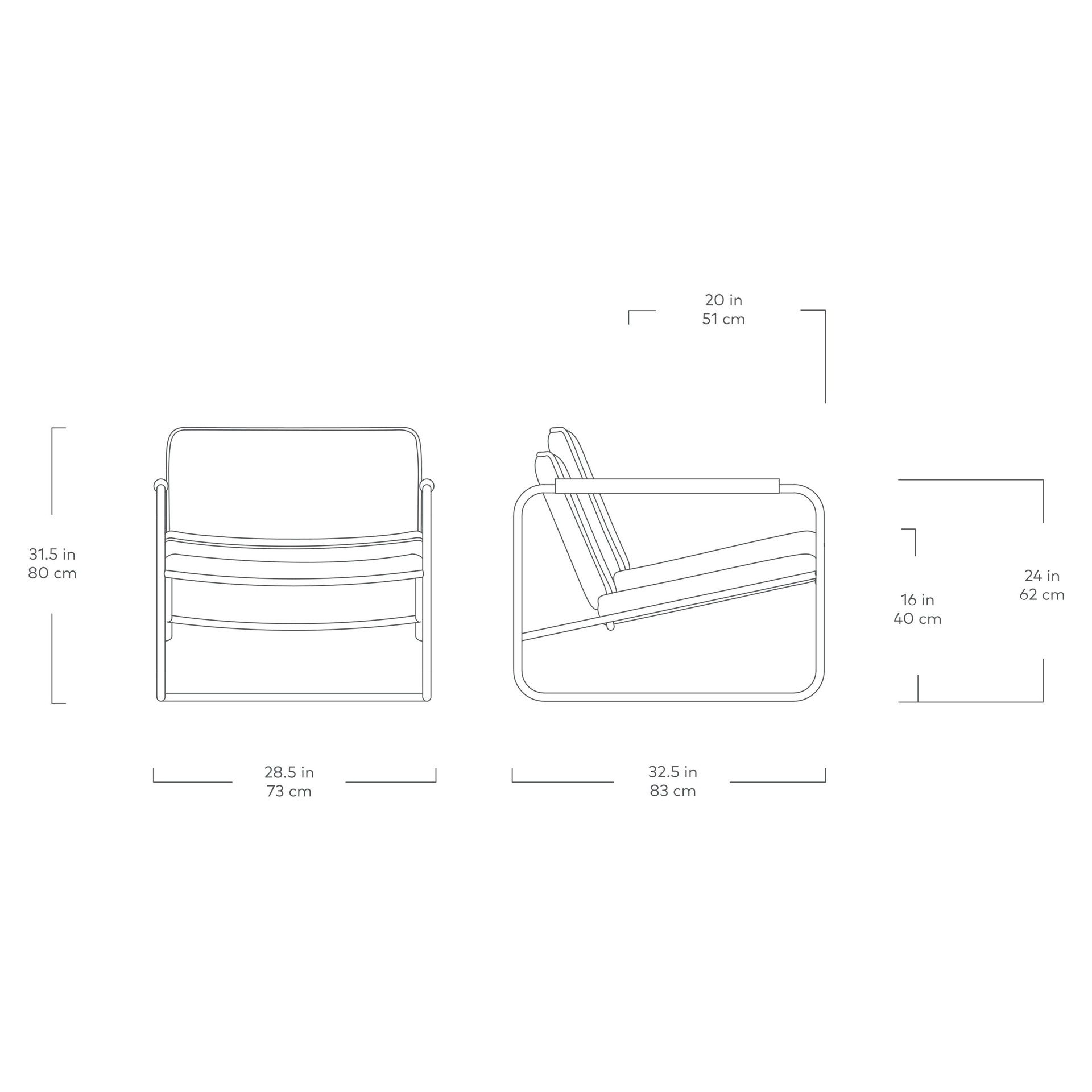 Details like a tubular steel frame and integrated wood dowel armrests give Kelso a confident, industrial-modern aesthetic which is juxtaposed against delicate, knife-edge seat and back cushions that offer a surprisingly comfy place to relax.