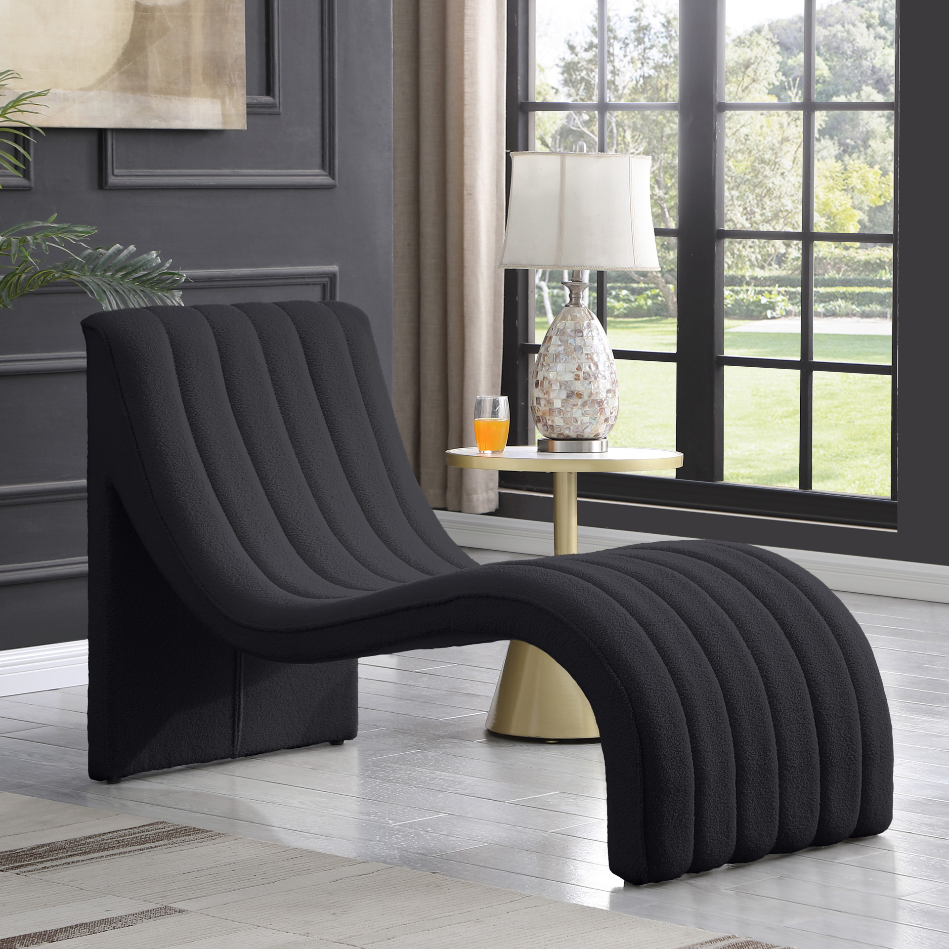 Orian Plush Chaise Lounge Meridian Furniture 156BLACK
