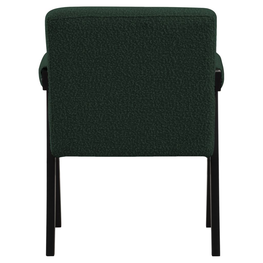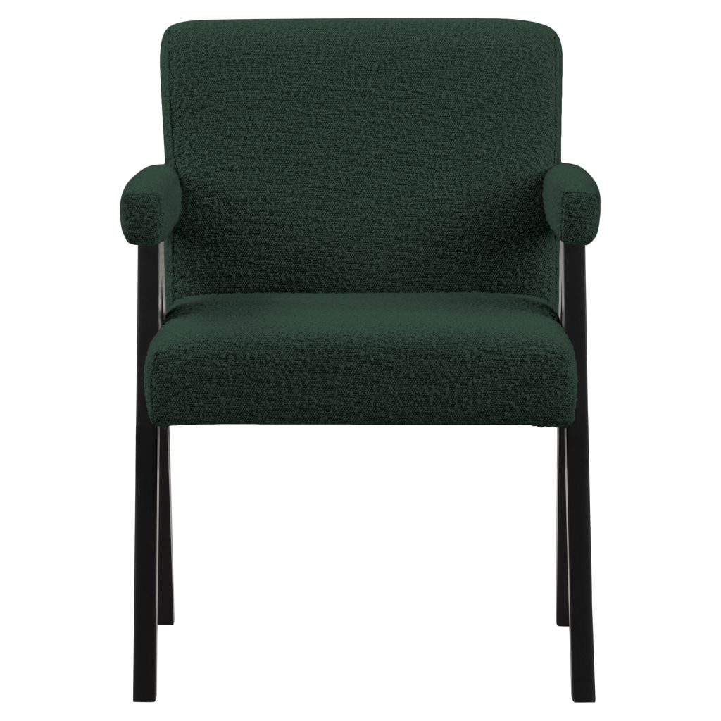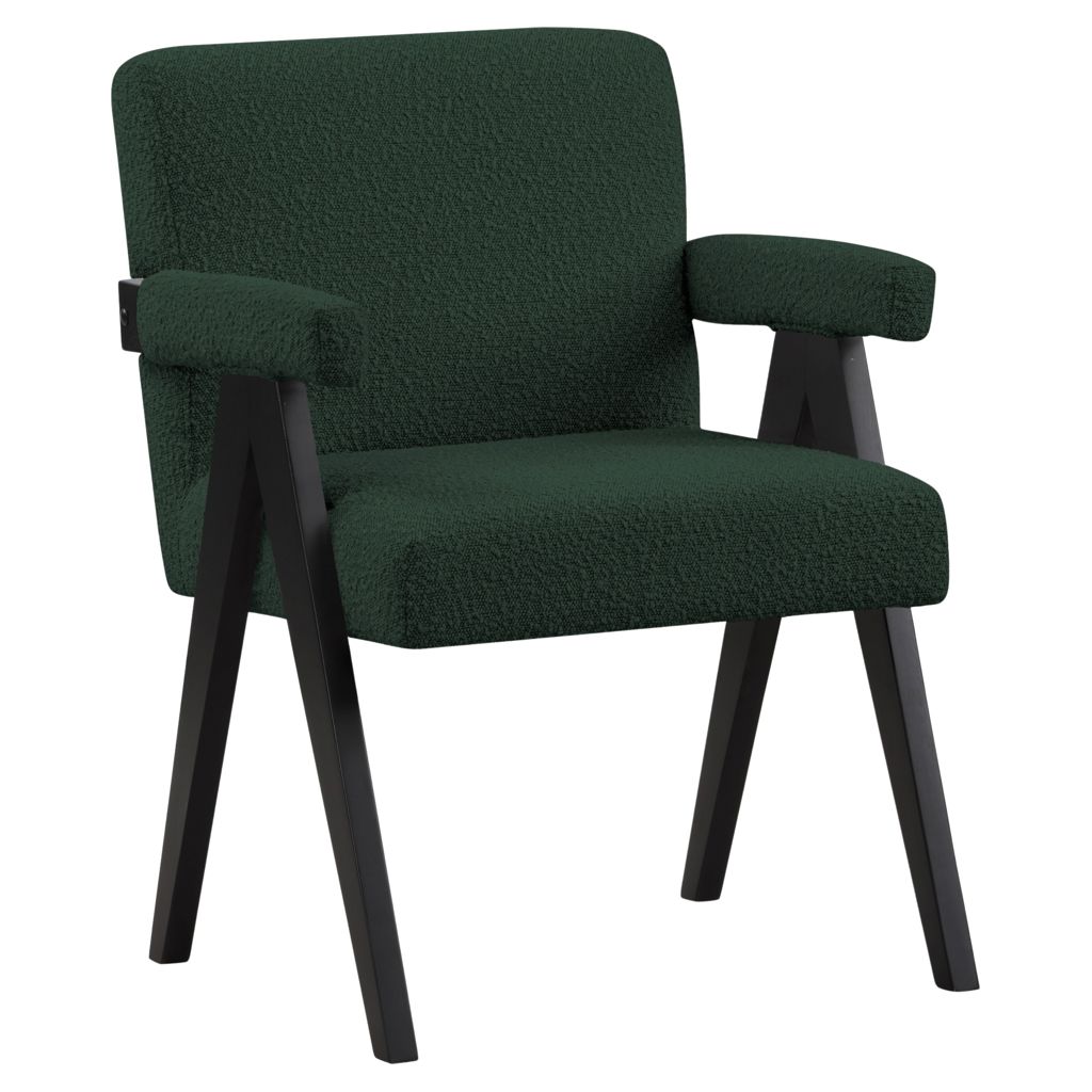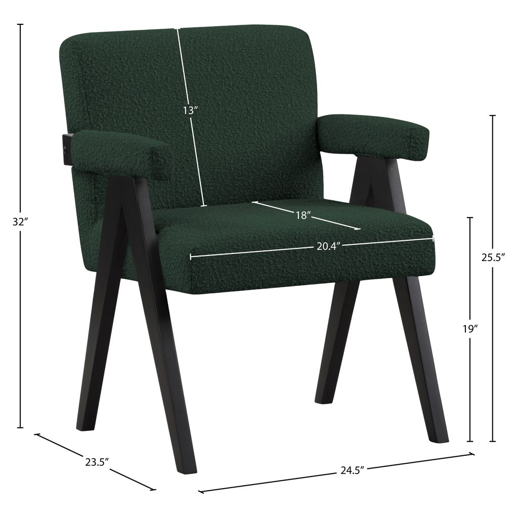 Add a touch of modern comfort to your space with this Woodloch boucle fabric accent chair. Upholstered in rich green boucle fabric on the seat, back, and arms, this chair features a black finish solid wood frame for a beautiful contrast that draws the eye in an instant.