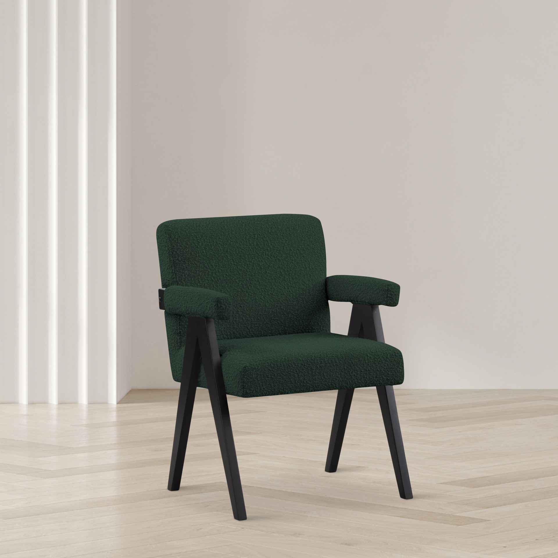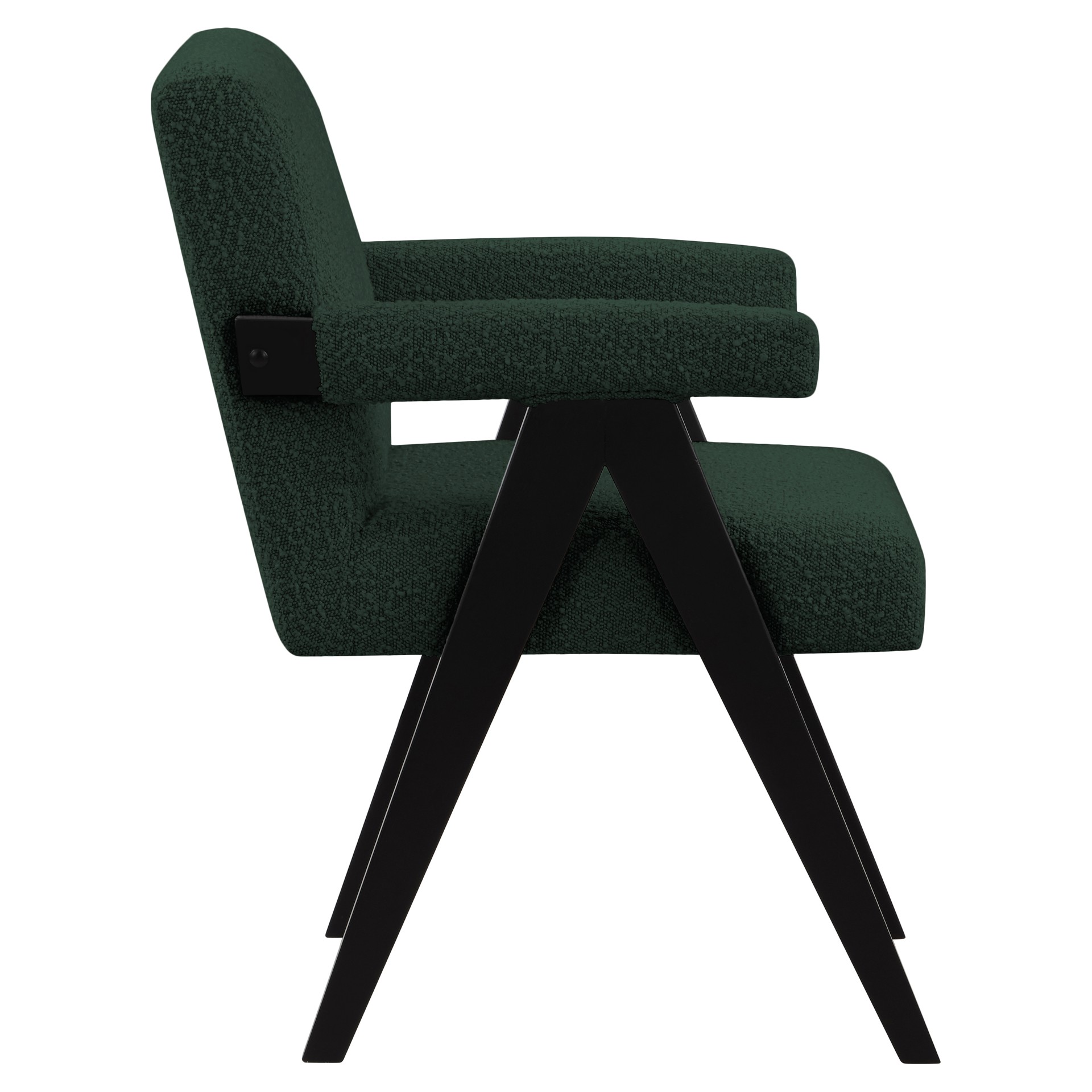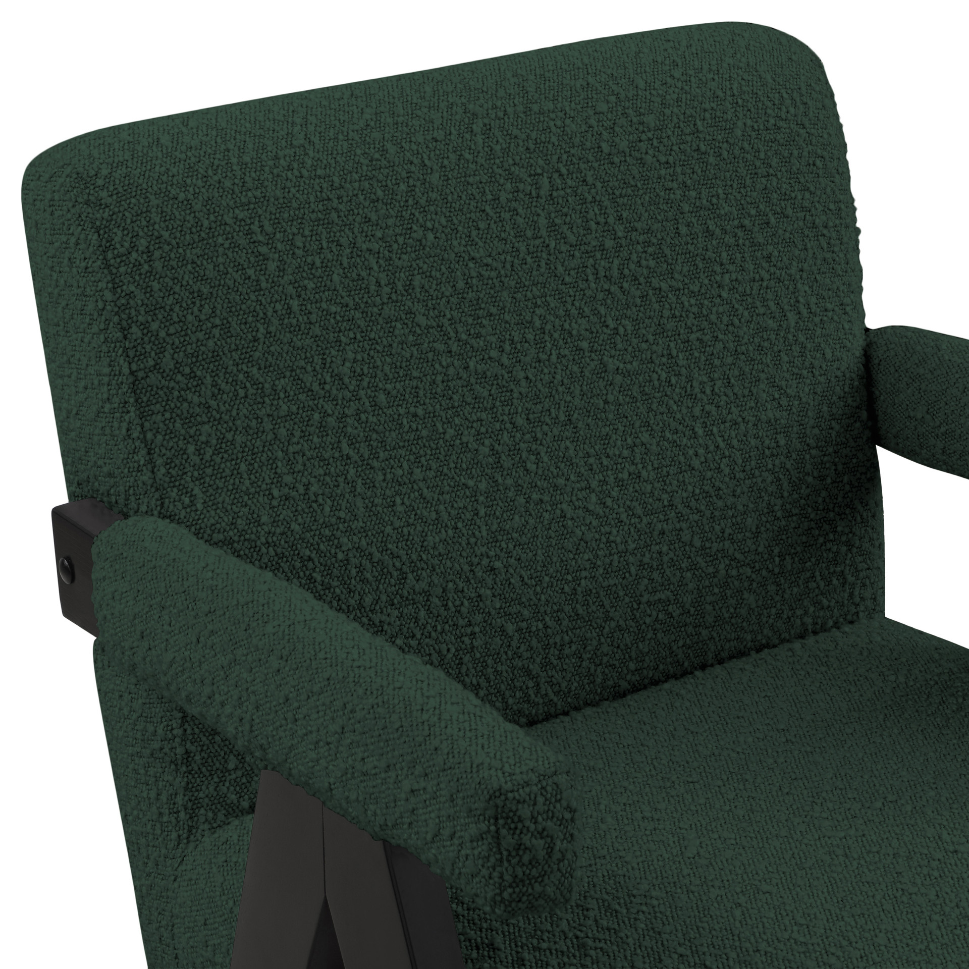 Add a touch of modern comfort to your space with this Woodloch boucle fabric accent chair. Upholstered in rich green boucle fabric on the seat, back, and arms, this chair features a black finish solid wood frame for a beautiful contrast that draws the eye in an instant.