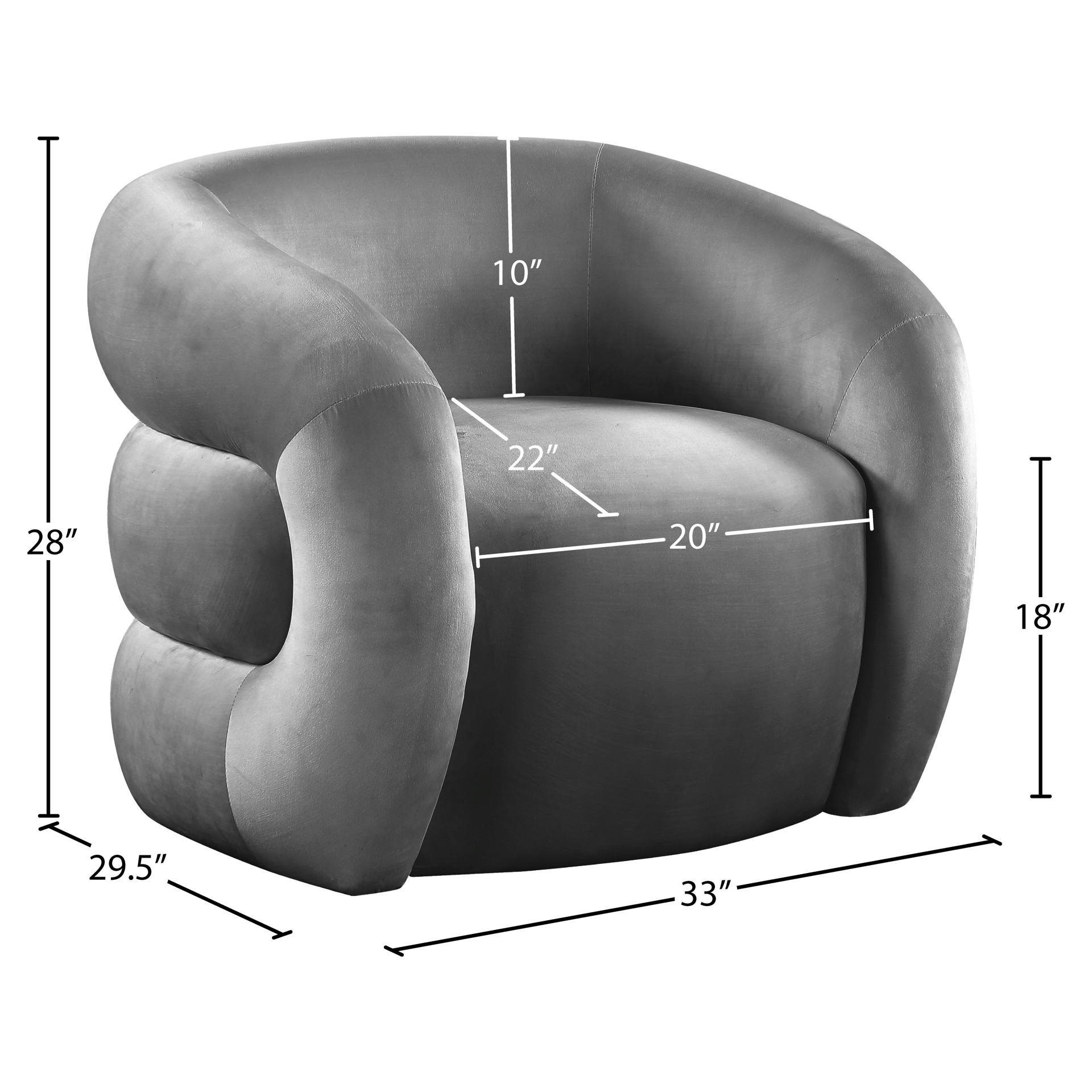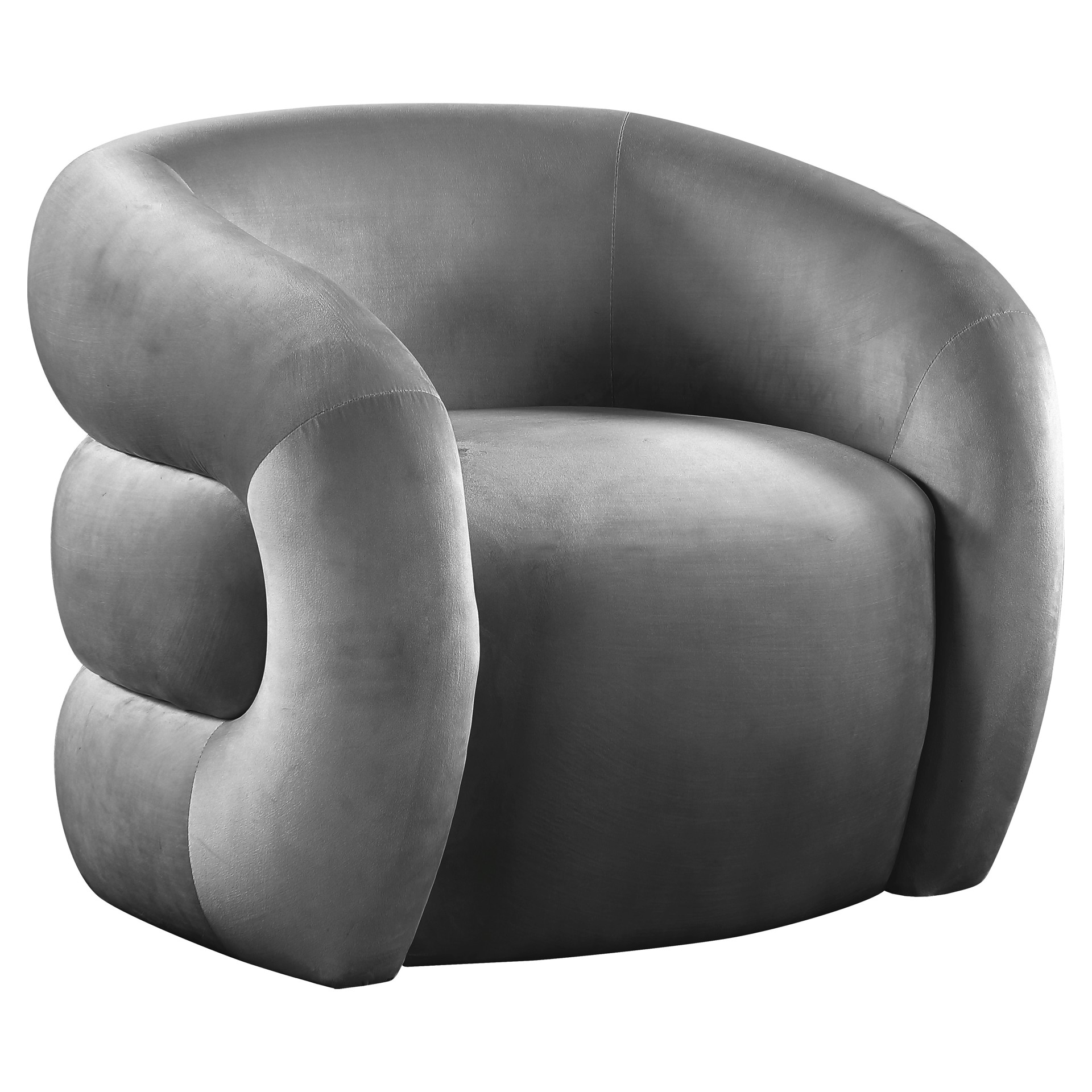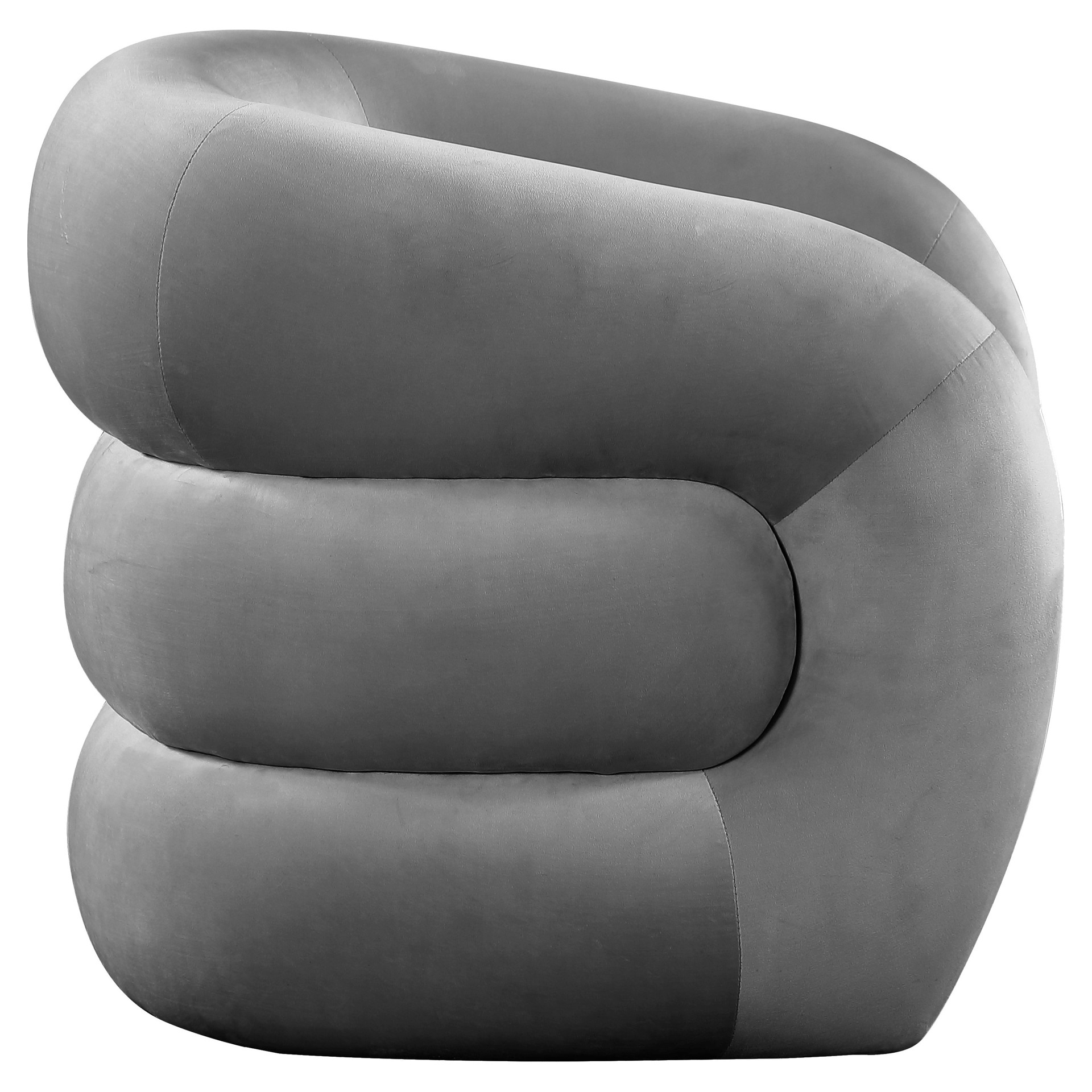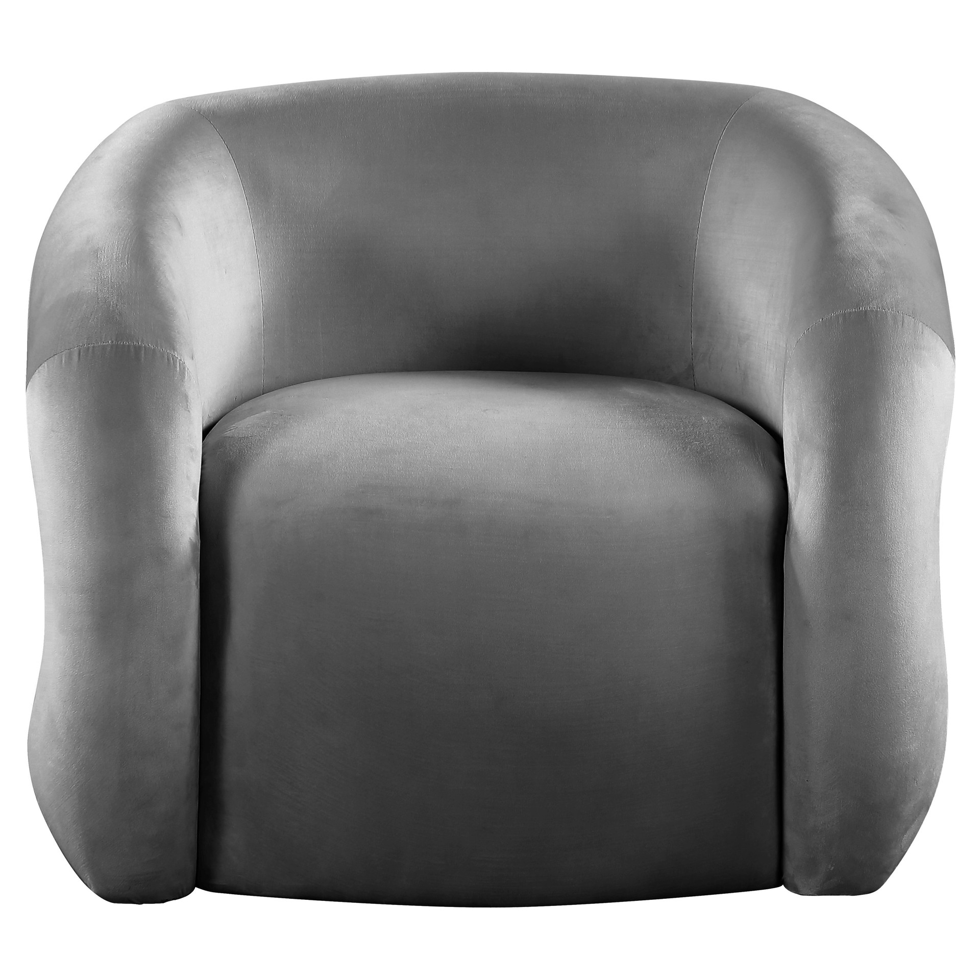 Its grey velvet upholstery is both chic and soft, enabling you to bliss out while kicking back and reading or watching TV. Its contemporary design makes a stunning addition to any living space, whether you position this accent chair in your living room or bedroom.