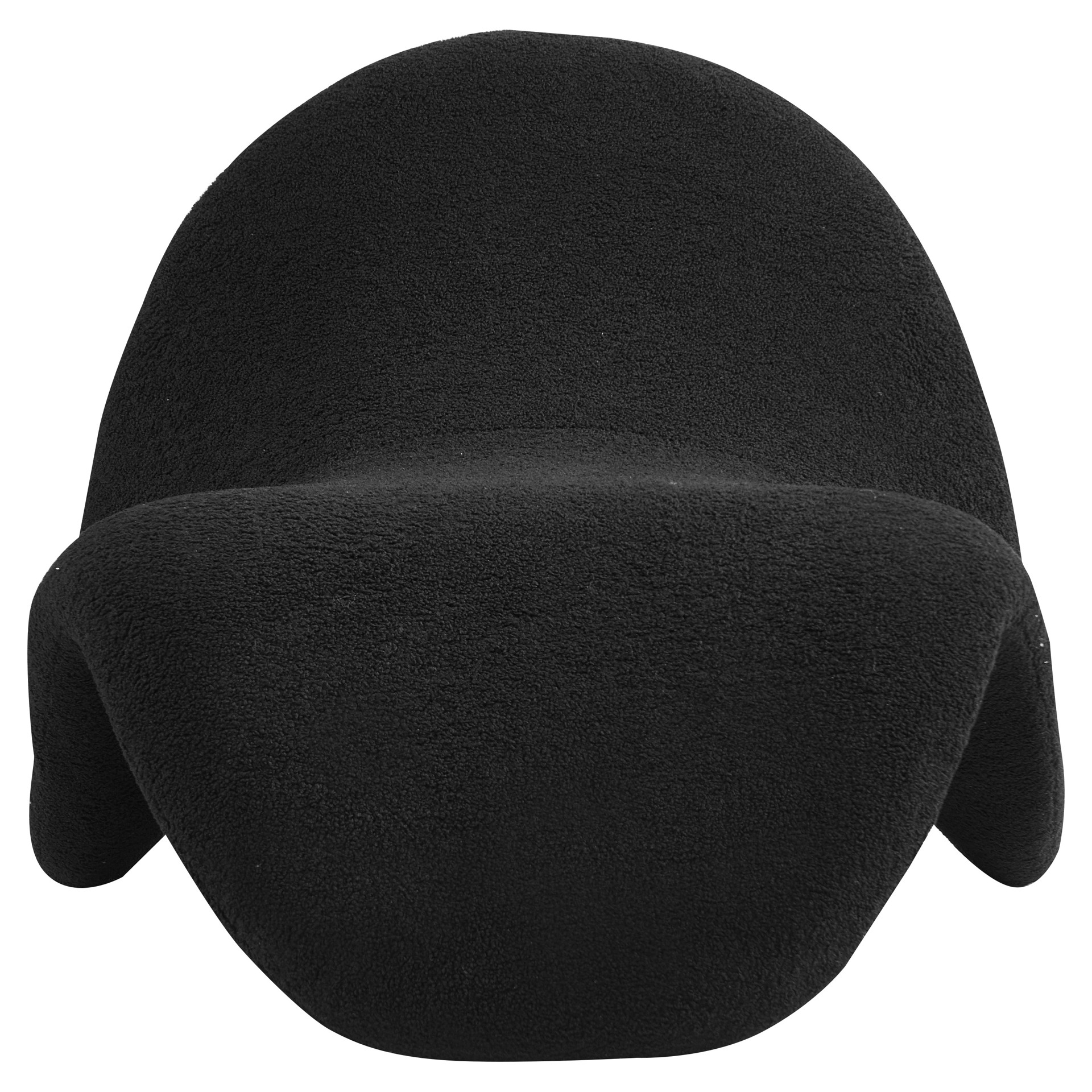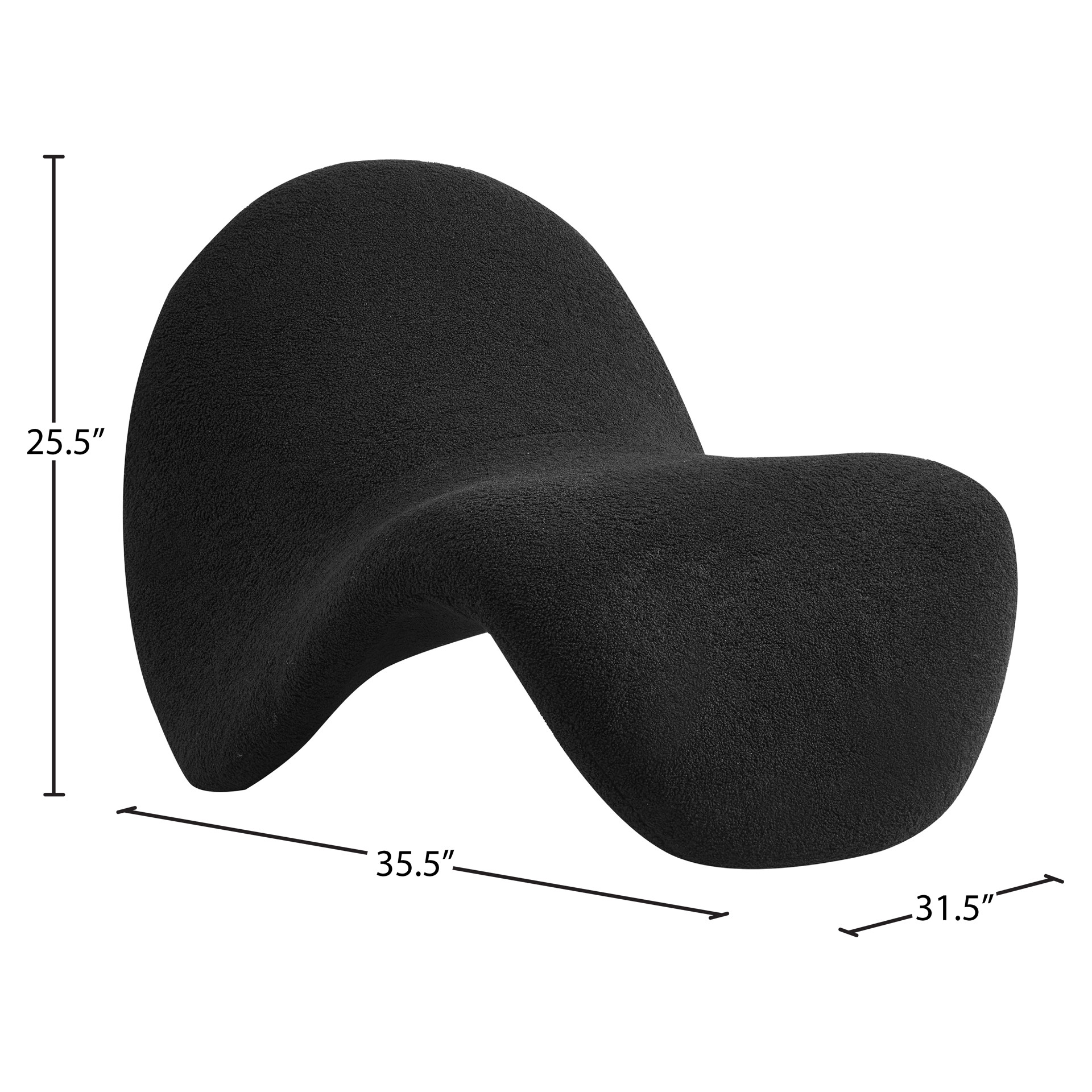 Upholstered in soft black faux shearling material, the chair's covering feels as soft as cashmere without the high price tag or maintenance requirements. Use this chair wherever you want to add an instant touch of drama and excitement.