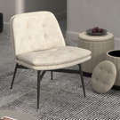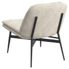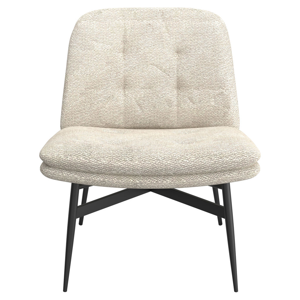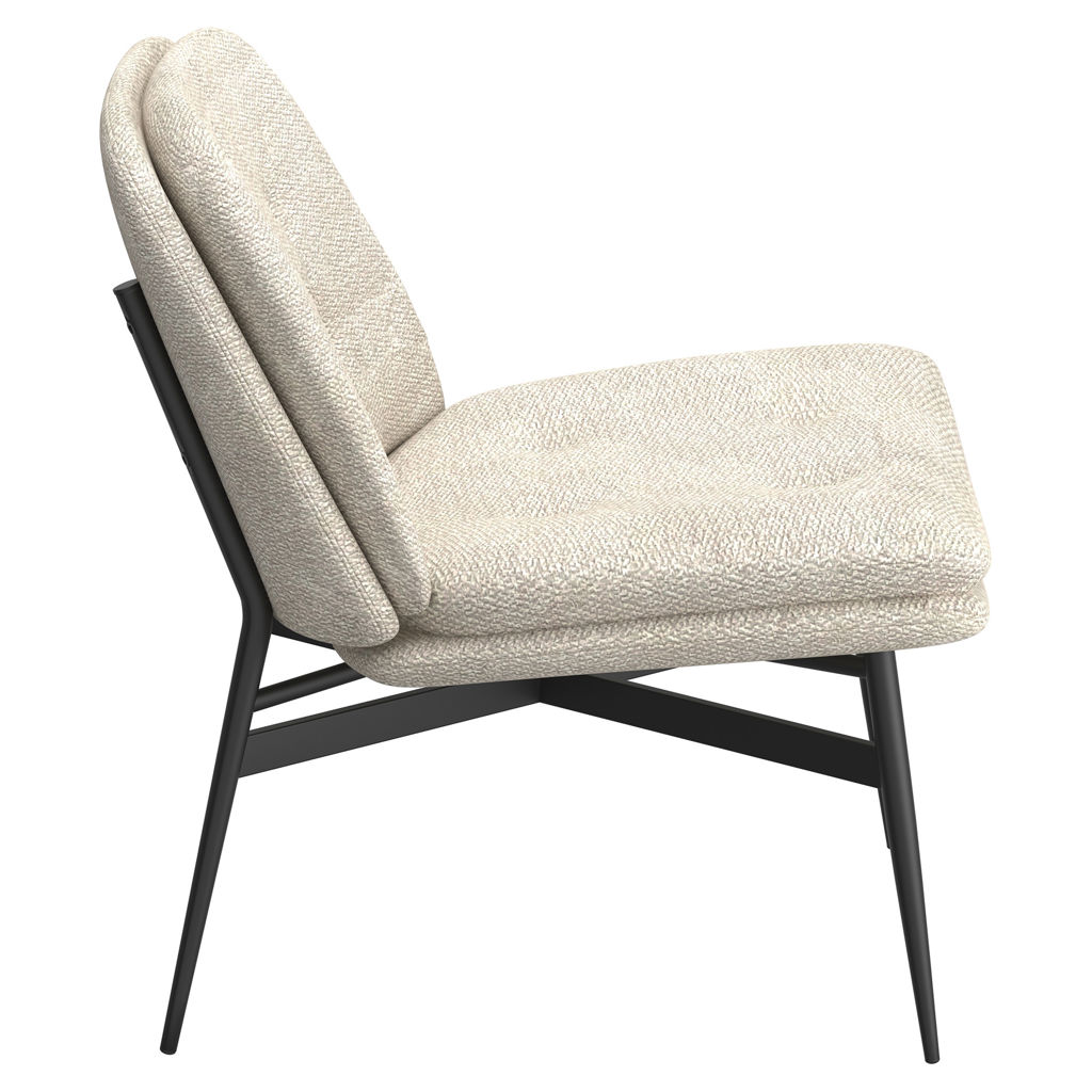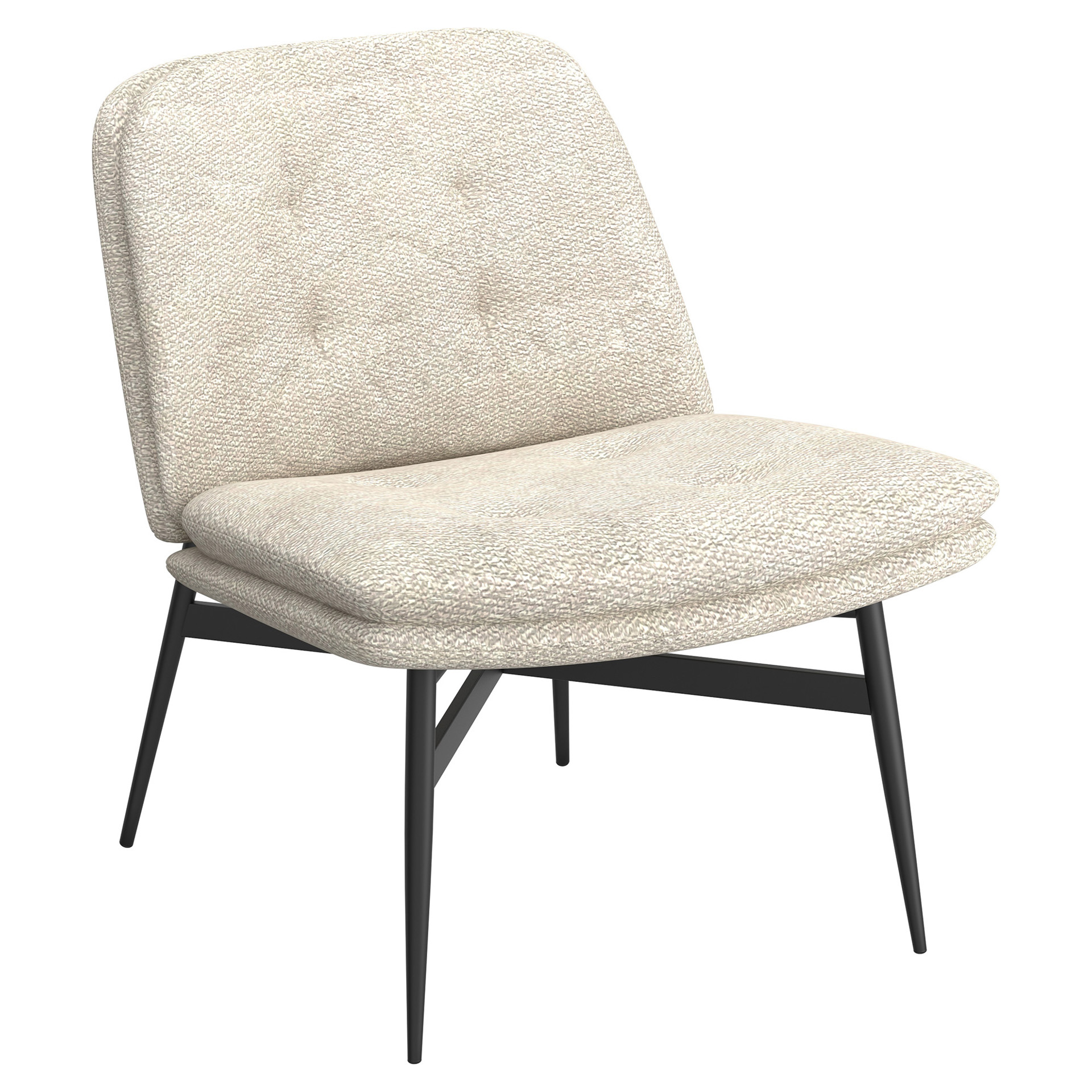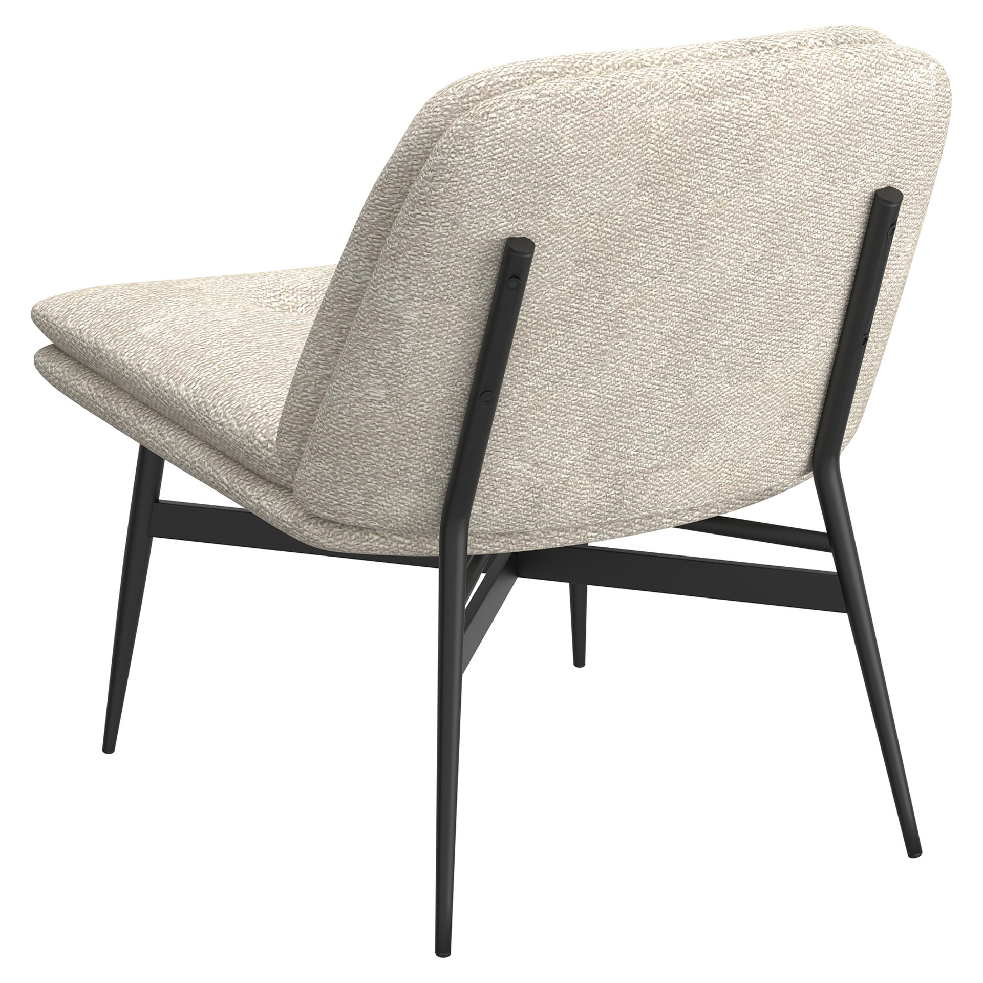 Discover the relaxed elegance of the 403 accent chair, where modern comfort meets timeless design. Its textured fabric upholstery in neutral tones blends effortlessly with any décor style, while the black metal frame adds a refined contemporary touch.